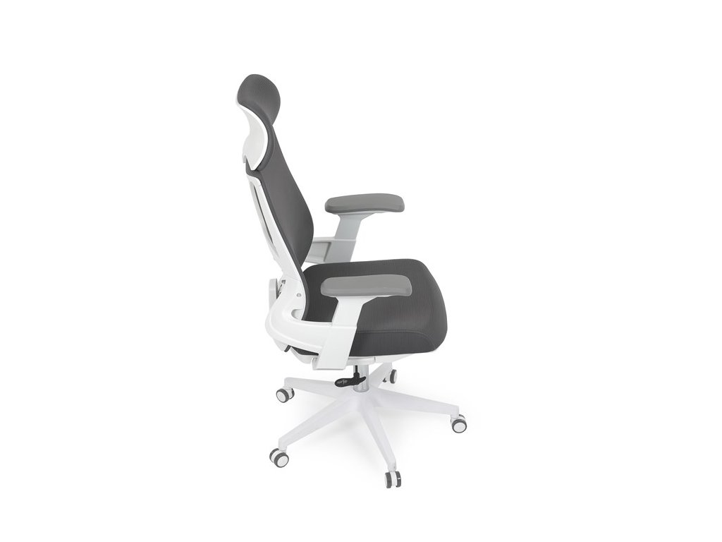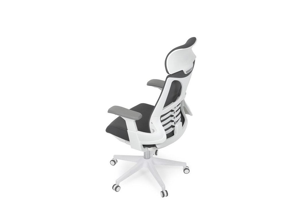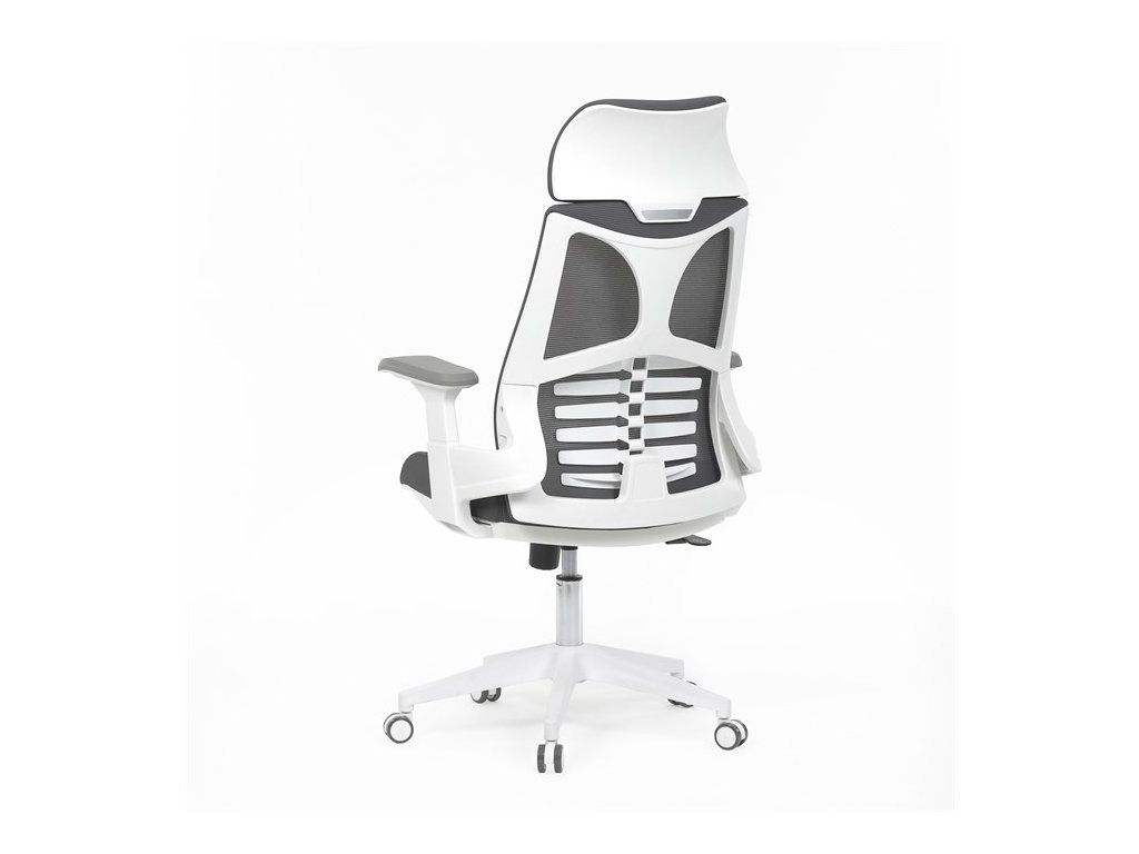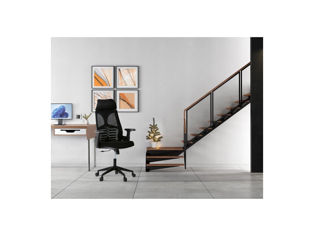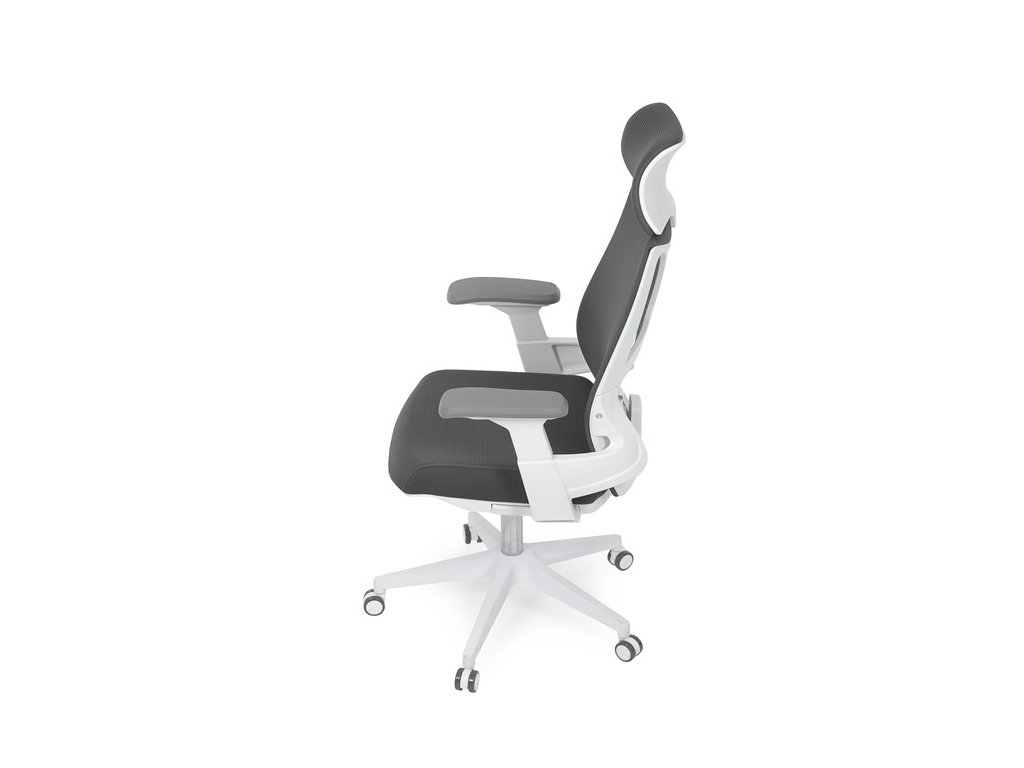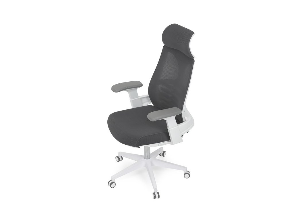 Ergonomická kancelárska stolička je vytvorená pre používateľov, ktorí vyžadujú zdravé sedenie, moderný vzhľad a možnosť prispôsobenia pracovným návykom. Operadlo zo sieťoviny poskytuje ideálnu cirkuláciu vzduchu a podporuje správne držanie tela vďaka pasívnej bedrovej opierke s futuristickým tvarovaním, ktoré prirodzene kopíruje krivku chrbtice.Sedadlo je čalúnené odolným materiálom so stabilnou tvarovou výplňou, takže ponúka pohodlie aj pri dlhých pracovných intervaloch. Nadštandardná opierka hlavy ešte viac odľahčuje krčnú oblasť a zvyšuje celkový komfort pri sedení. Podrúčky sú navrhnuté tak, aby prispievali k ergonómii a uvoľneniu ramien počas práce.