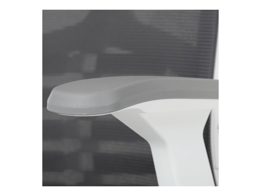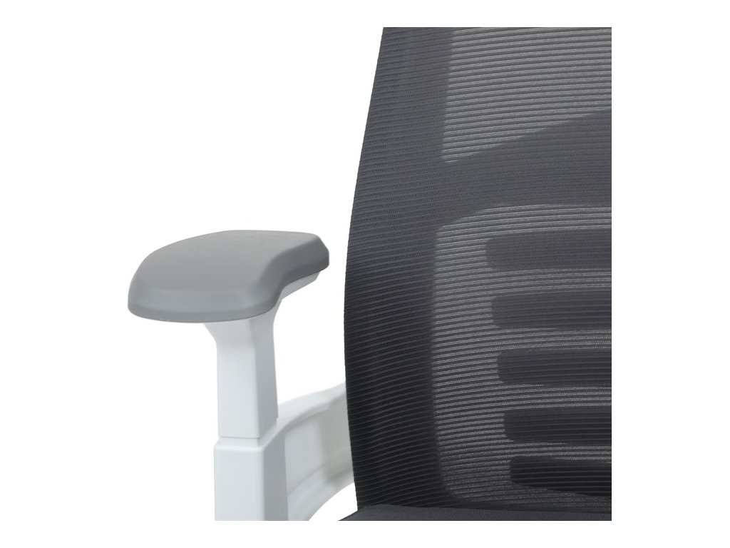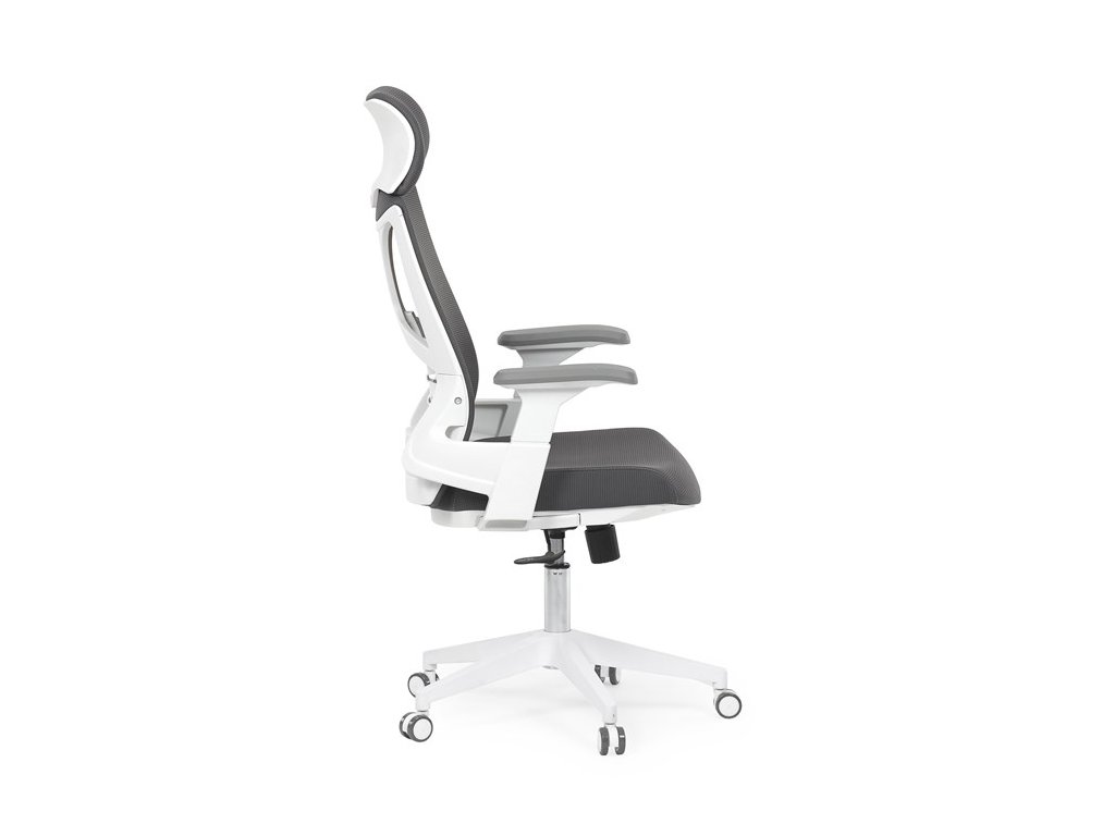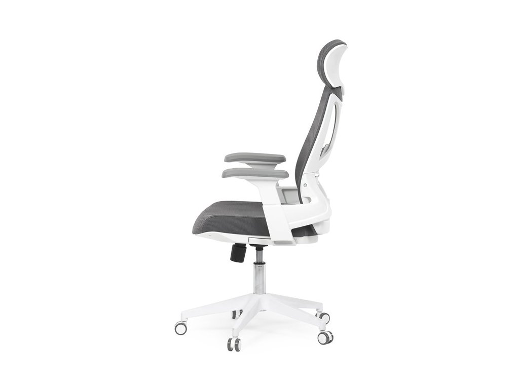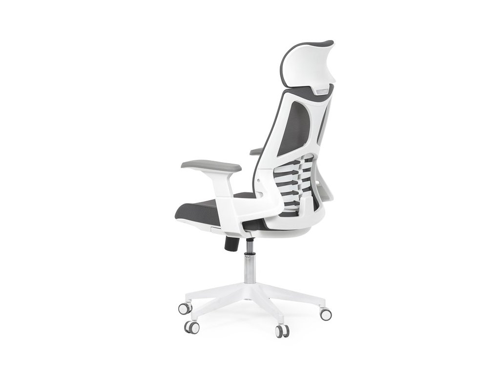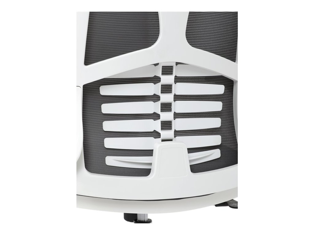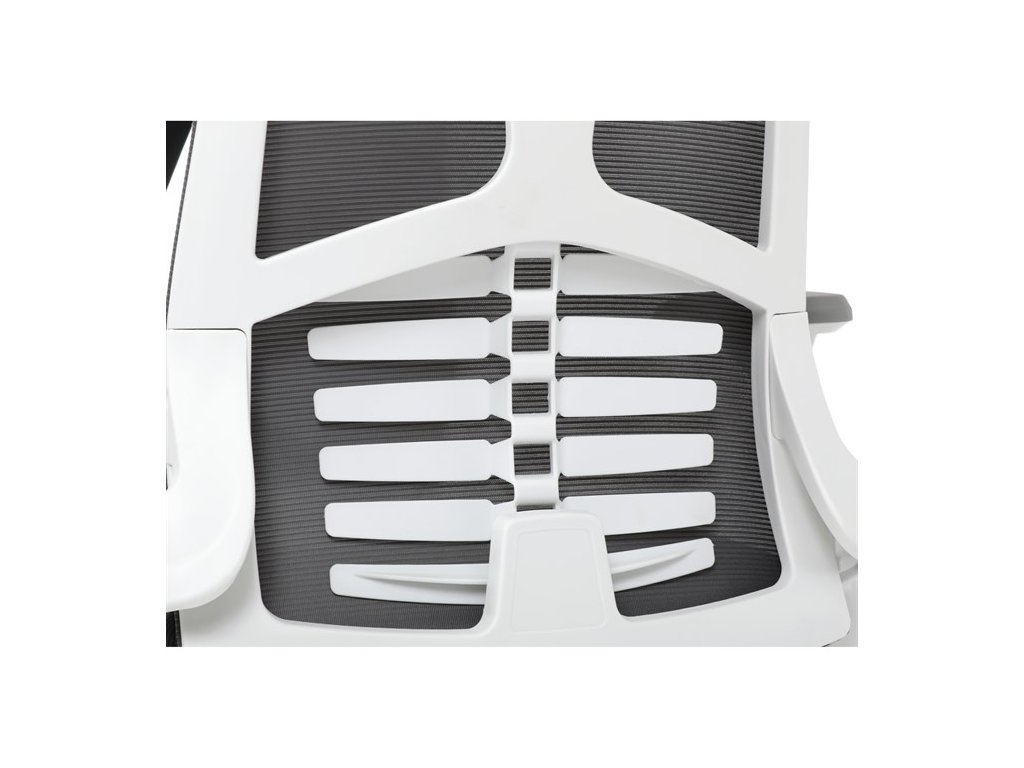 Ergonomická kancelárska stolička je vytvorená pre používateľov, ktorí vyžadujú zdravé sedenie, moderný vzhľad a možnosť prispôsobenia pracovným návykom. Operadlo zo sieťoviny poskytuje ideálnu cirkuláciu vzduchu a podporuje správne držanie tela vďaka pasívnej bedrovej opierke s futuristickým tvarovaním, ktoré prirodzene kopíruje krivku chrbtice.Sedadlo je čalúnené odolným materiálom so stabilnou tvarovou výplňou, takže ponúka pohodlie aj pri dlhých pracovných intervaloch. Nadštandardná opierka hlavy ešte viac odľahčuje krčnú oblasť a zvyšuje celkový komfort pri sedení. Podrúčky sú navrhnuté tak, aby prispievali k ergonómii a uvoľneniu ramien počas práce.
