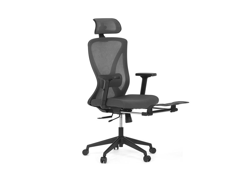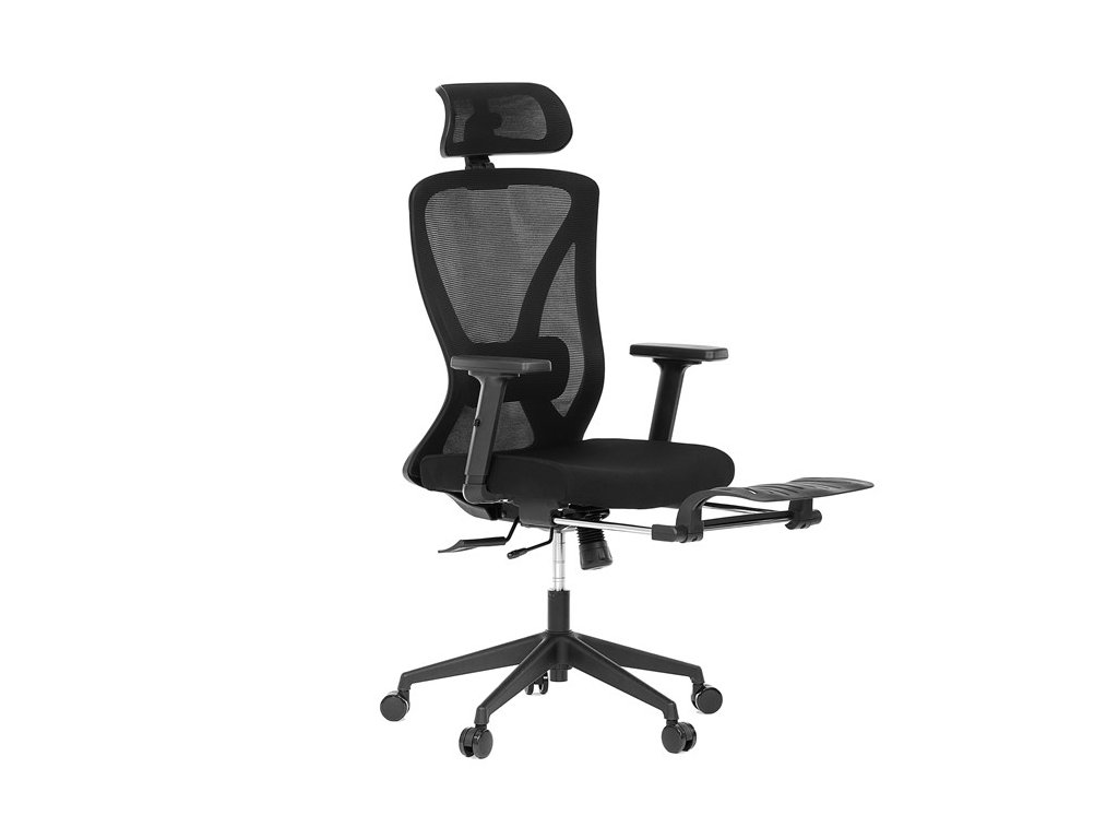 Kancelárska stolička, ktorá je ideálnym riešením pre váš pracovný priestor, kombinujúca moderný design s proporciami pre optimálne pohodlie. Vďaka možnosti nastaviť výšku sedu sa ľahko prispôsobíte svojmu pracovnému stolu, výsuvná podnož zas ponúkne možnosť extra oddychu pre vaše nohy.. Čalúnenie je v kombinácii odolnej MESH látky na sedacej časti a príjemne vzdušnej sieťoviny na operadle. Komfort sedenia je umocnený nadštandardnou opierkou hlavy v dizajne čalúnenia kresla. Plastový kríž zaisťuje stabilitu počas používania a čierna farba vytvára elegantný a profesionálny vzhľad. Táto kancelárska stolička je vyrobená z kvalitného tvrdeného plastu s molitanovým polstrovaním, čo zaručuje pohodlie aj pri dlhšom sedení. Hojdací mechanizmus stoličky prináša dynamiku a umožňuje relaxáciu počas pracovného dňa.Dodatočné parametre