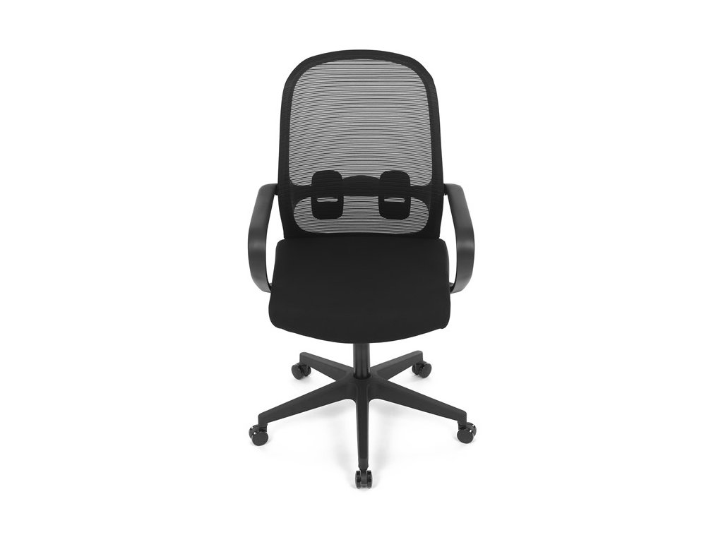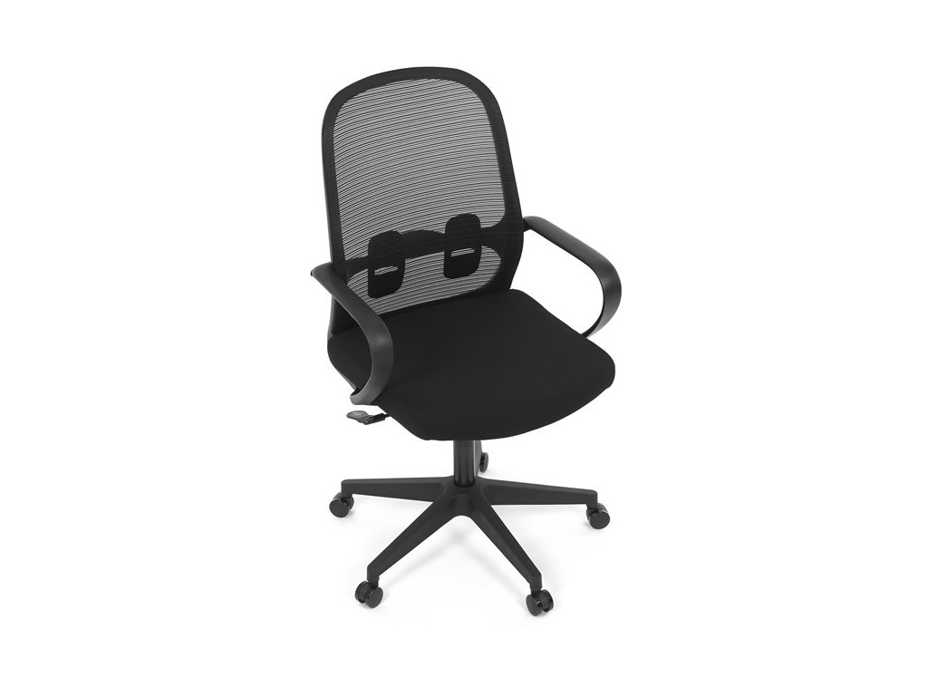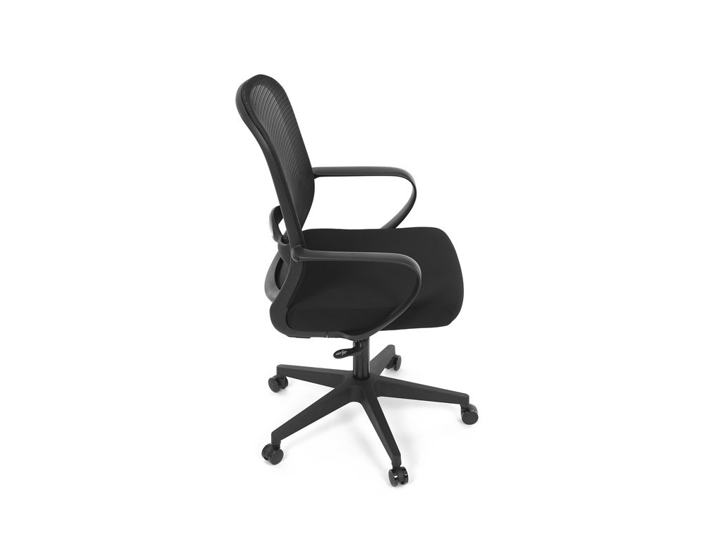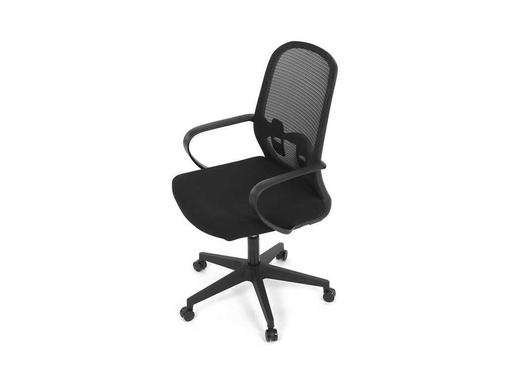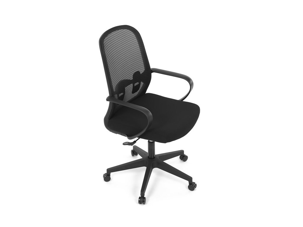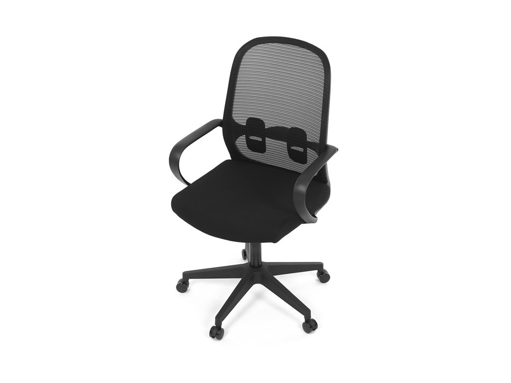 Moderná kancelárska stolička, ktorá kombinuje elegantný a zároveň jednoduchý dizajn s maximálnym komfortom. Ergonomicky tvarované a vďaka použitej pevnej sieťovine priedušné operadlo s bedrovou opierkou poskytuje podporu chrbta, zatiaľ čo pevné plastové podrúčky zaisťujú pohodlné sedenie počas celého pracovného dňa. Sedák s výplňou z PU peny je pohodlný, výškovo nastaviteľný, čo umožňuje individuálne prispôsobenie. Stolička je vybavená hojdacím mechanizmom s možnosťou nastavenia tuhosti pohupu, plynuté otáčanie a jednoduché výškové nastavenie je samozrejmosťou. Čierny rám a kríž v kombinácii s moderným štýlom robia z tejto stoličky ideálnu voľbu pre každú kanceláriu ale aj prostredie domova.Dodatočné parametre