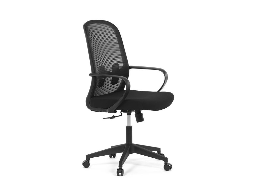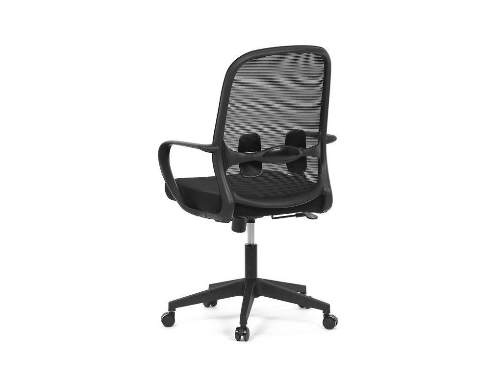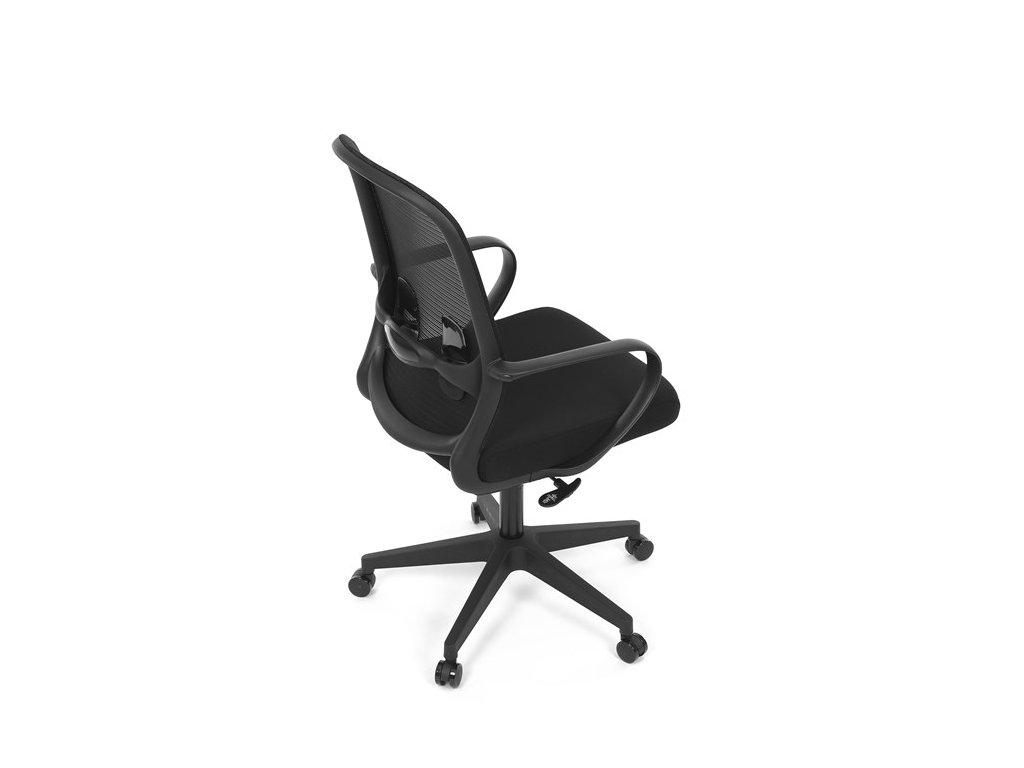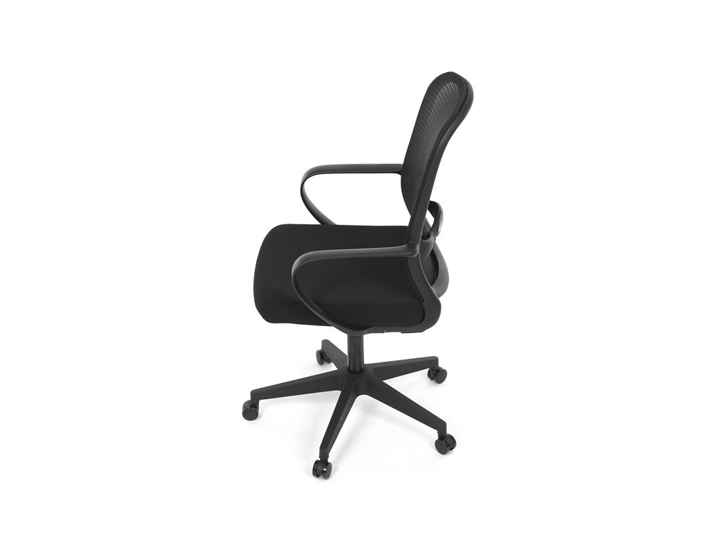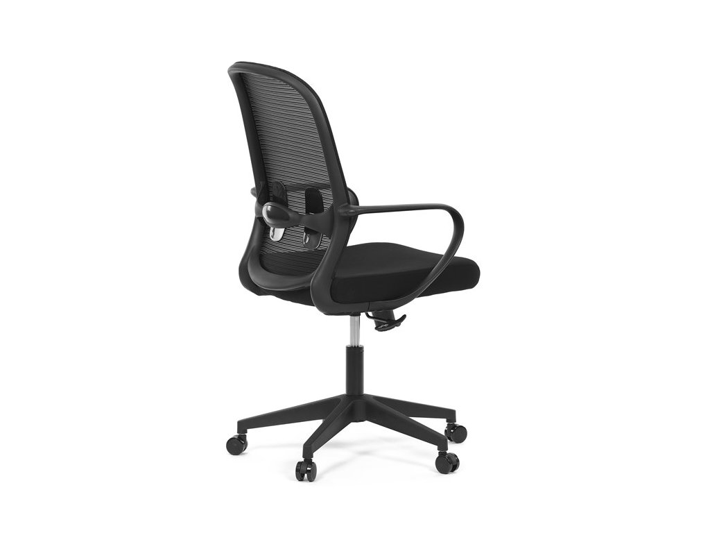 Moderná kancelárska stolička, ktorá kombinuje elegantný a zároveň jednoduchý dizajn s maximálnym komfortom. Ergonomicky tvarované a vďaka použitej pevnej sieťovine priedušné operadlo s bedrovou opierkou poskytuje podporu chrbta, zatiaľ čo pevné plastové podrúčky zaisťujú pohodlné sedenie počas celého pracovného dňa. Sedák s výplňou z PU peny je pohodlný, výškovo nastaviteľný, čo umožňuje individuálne prispôsobenie. Stolička je vybavená hojdacím mechanizmom s možnosťou nastavenia tuhosti pohupu, plynuté otáčanie a jednoduché výškové nastavenie je samozrejmosťou. Čierny rám a kríž v kombinácii s moderným štýlom robia z tejto stoličky ideálnu voľbu pre každú kanceláriu ale aj prostredie domova.Dodatočné parametre