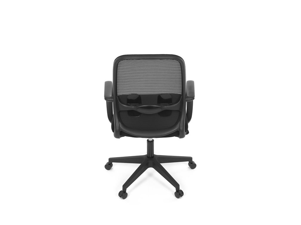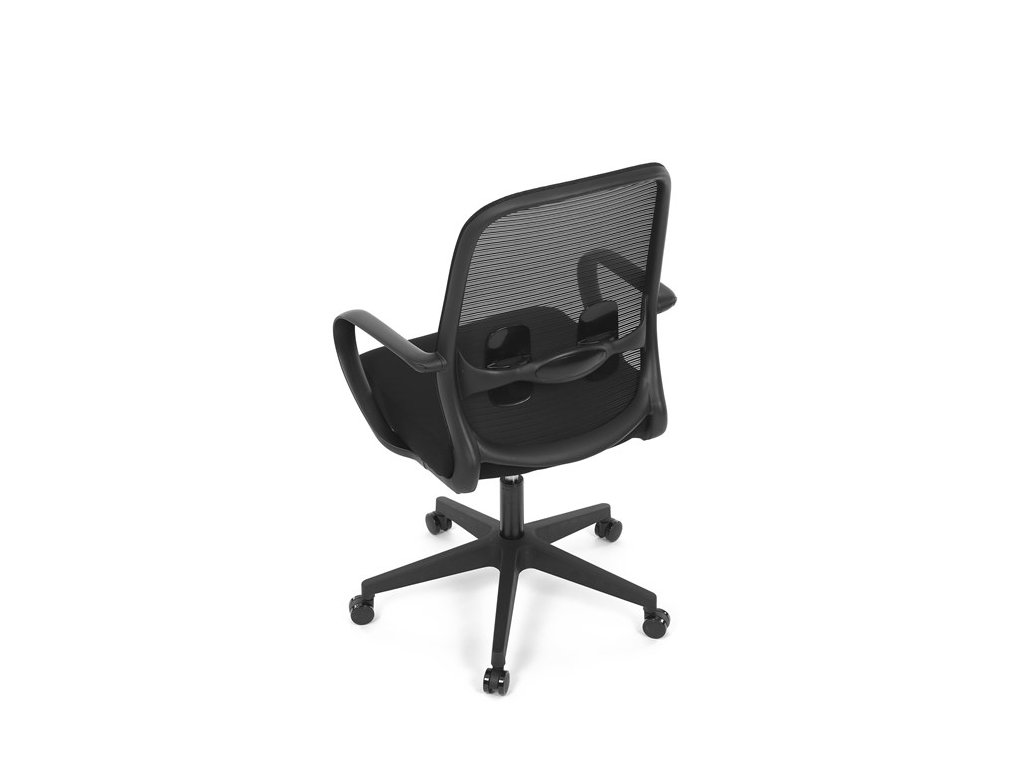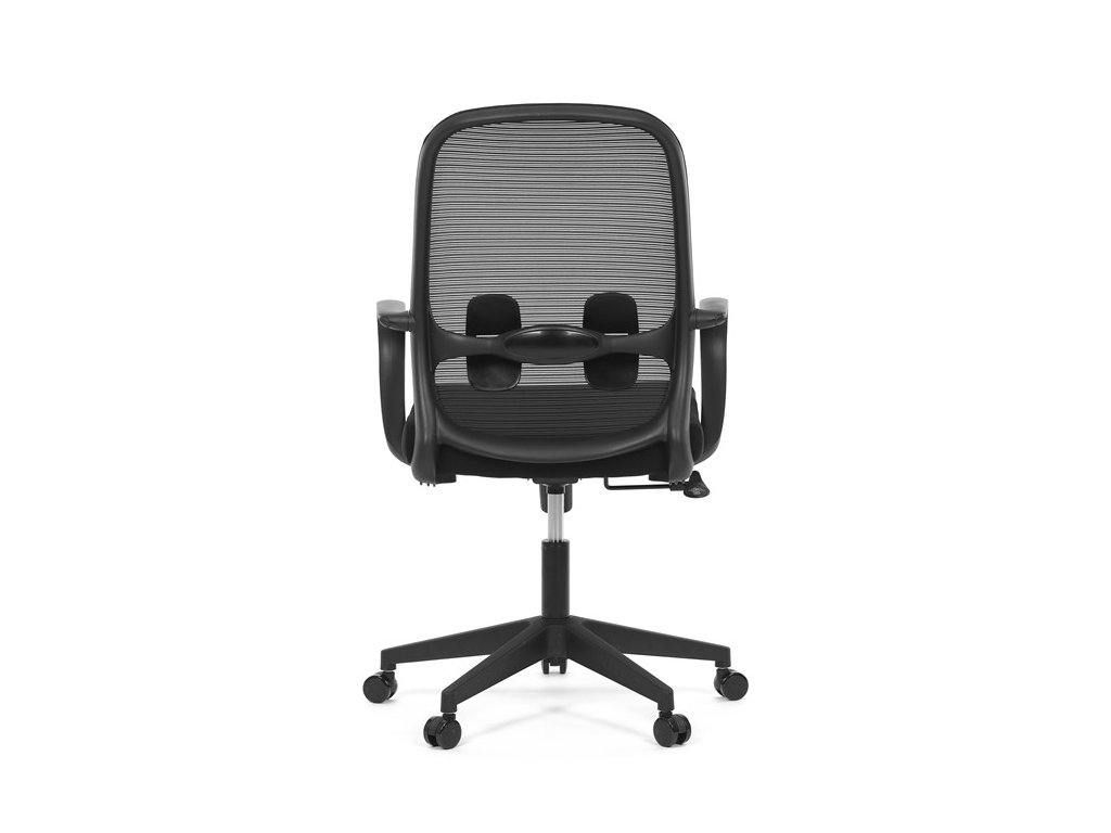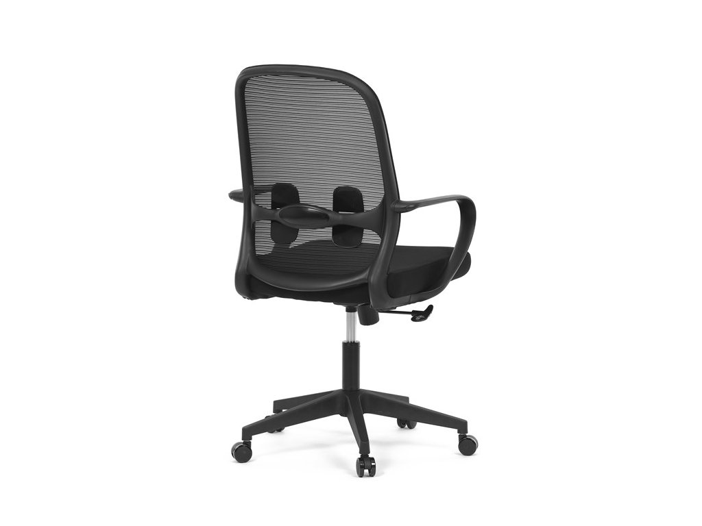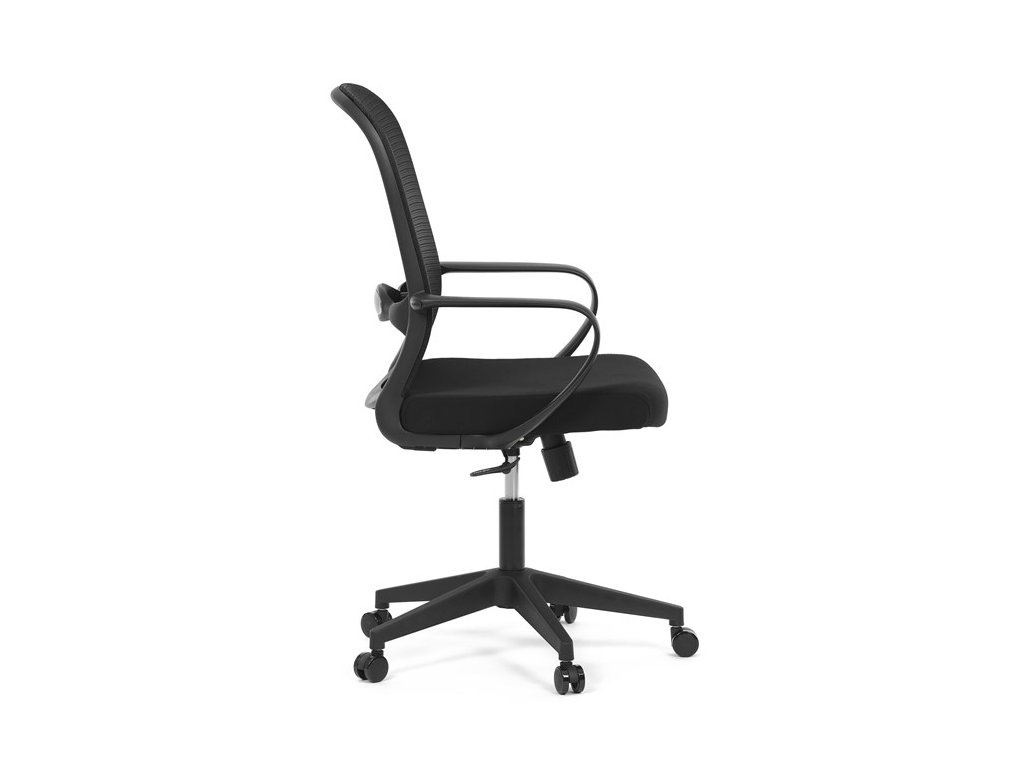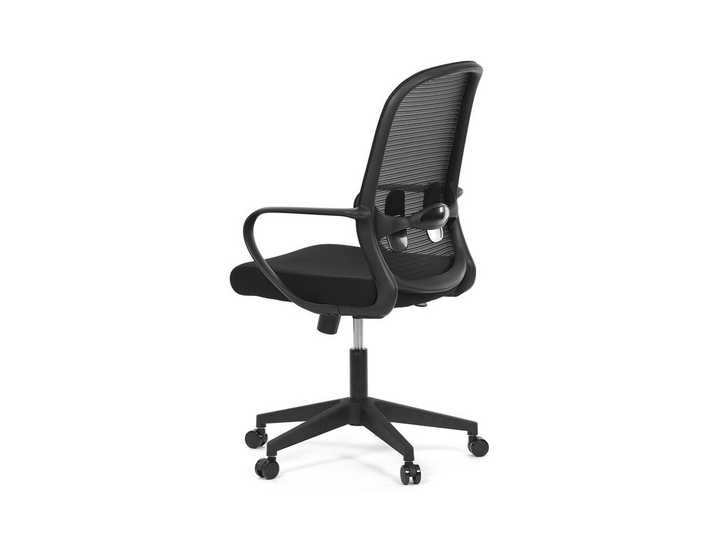 Moderná kancelárska stolička, ktorá kombinuje elegantný a zároveň jednoduchý dizajn s maximálnym komfortom. Ergonomicky tvarované a vďaka použitej pevnej sieťovine priedušné operadlo s bedrovou opierkou poskytuje podporu chrbta, zatiaľ čo pevné plastové podrúčky zaisťujú pohodlné sedenie počas celého pracovného dňa. Sedák s výplňou z PU peny je pohodlný, výškovo nastaviteľný, čo umožňuje individuálne prispôsobenie. Stolička je vybavená hojdacím mechanizmom s možnosťou nastavenia tuhosti pohupu, plynuté otáčanie a jednoduché výškové nastavenie je samozrejmosťou. Čierny rám a kríž v kombinácii s moderným štýlom robia z tejto stoličky ideálnu voľbu pre každú kanceláriu ale aj prostredie domova.Dodatočné parametre