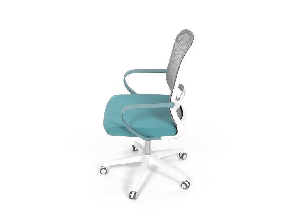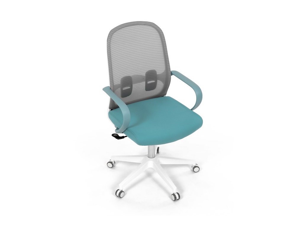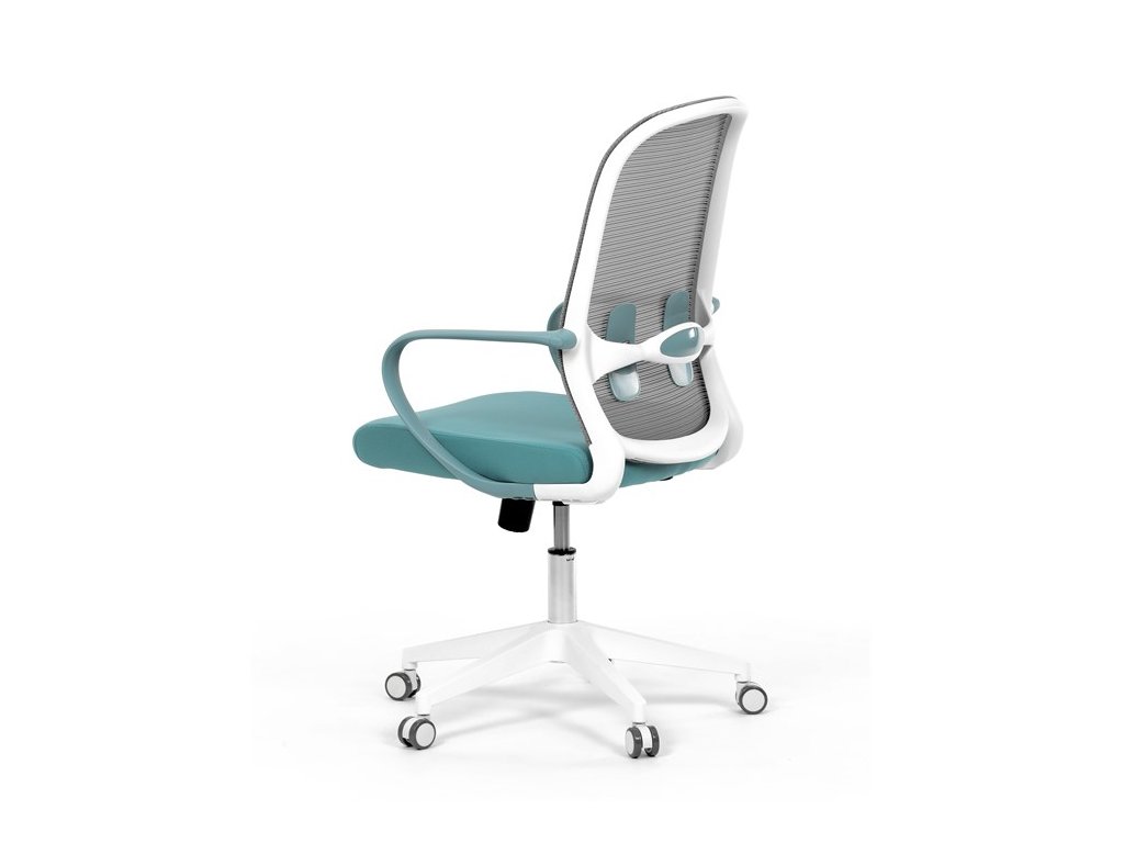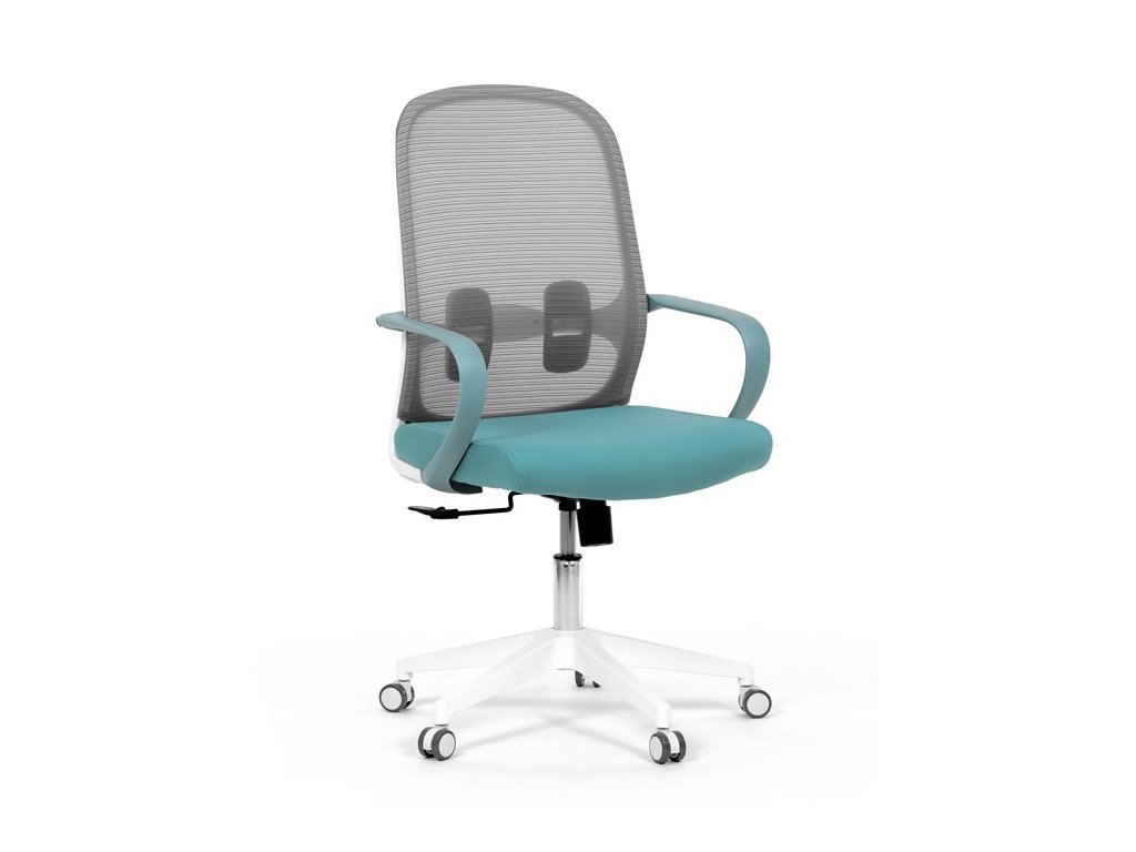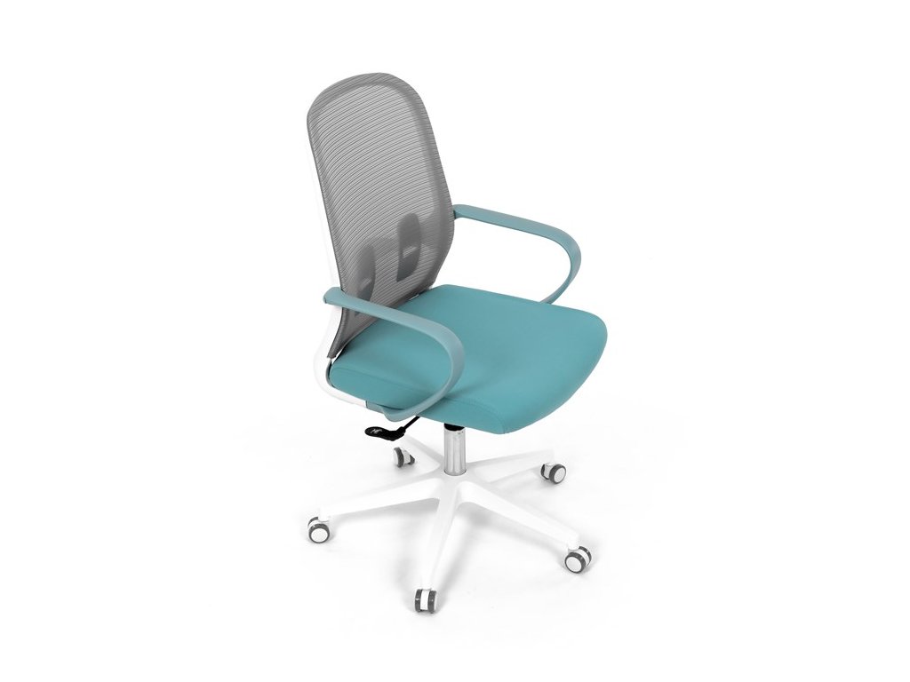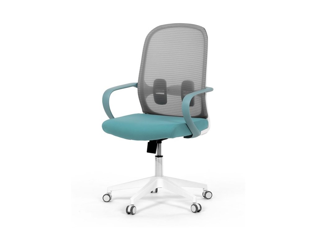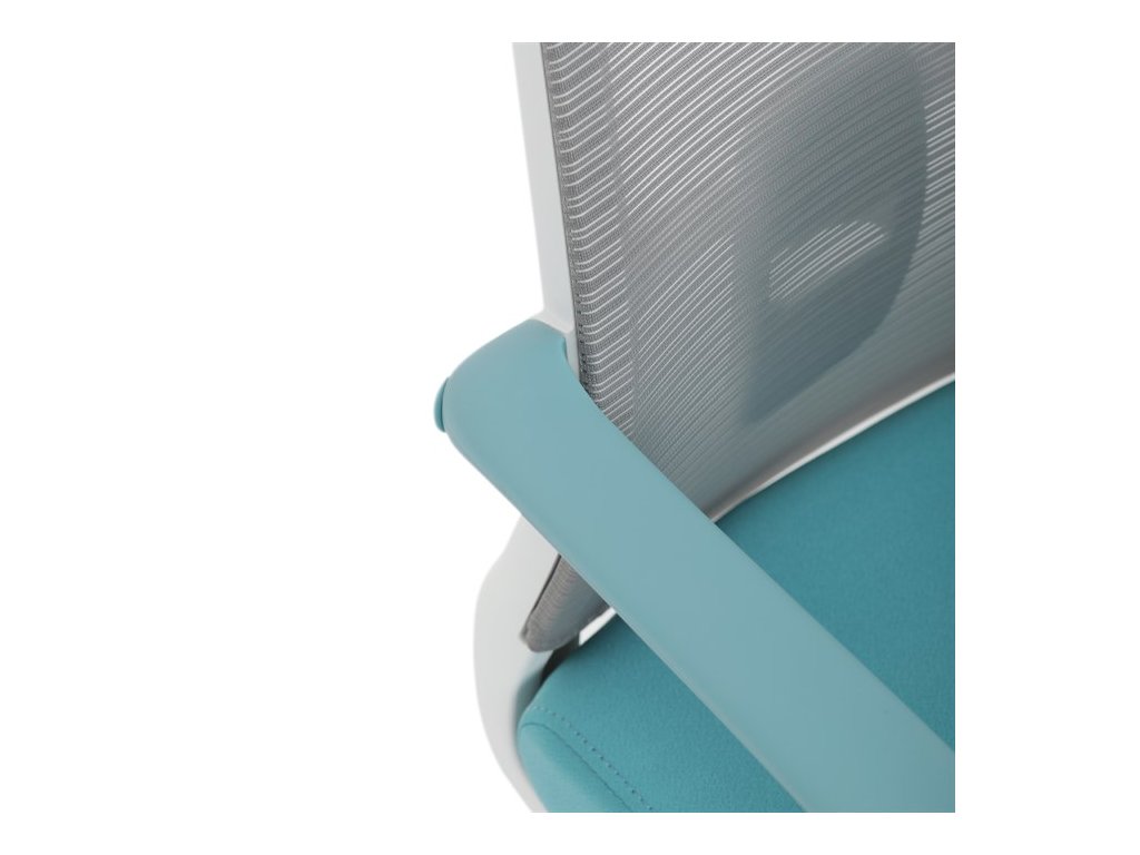 Moderná kancelárska stolička, ktorá kombinuje elegantný a zároveň jednoduchý dizajn s maximálnym komfortom. Ergonomicky tvarované a vďaka použitej pevnej sieťovine priedušné operadlo s bedrovou opierkou poskytuje potrebnú podporu chrbta, zatiaľ čo pevné plastové podrúčky zaisťujú pohodlné sedenie počas celého pracovného dňa. Sedák s výplňou z PU peny je pohodlný, výškovo nastaviteľný, čo umožňuje individuálne prispôsobenie. Stolička je vybavená hojdacím mechanizmom s možnosťou nastavenia tuhosti pohupu, plynuté otáčanie a jednoduché výškové nastavenie je samozrejmosťou. Biely rám a podrúčky vo farbe čalúnenia sú zárukou zaujímavej farebnej kombinácie s čalúnením, ruka v ruke s moderným štýlom robia z tejto stoličky ideálnu voľbu pre každú kanceláriu ale aj prostredie domova.Dodatočné parametre