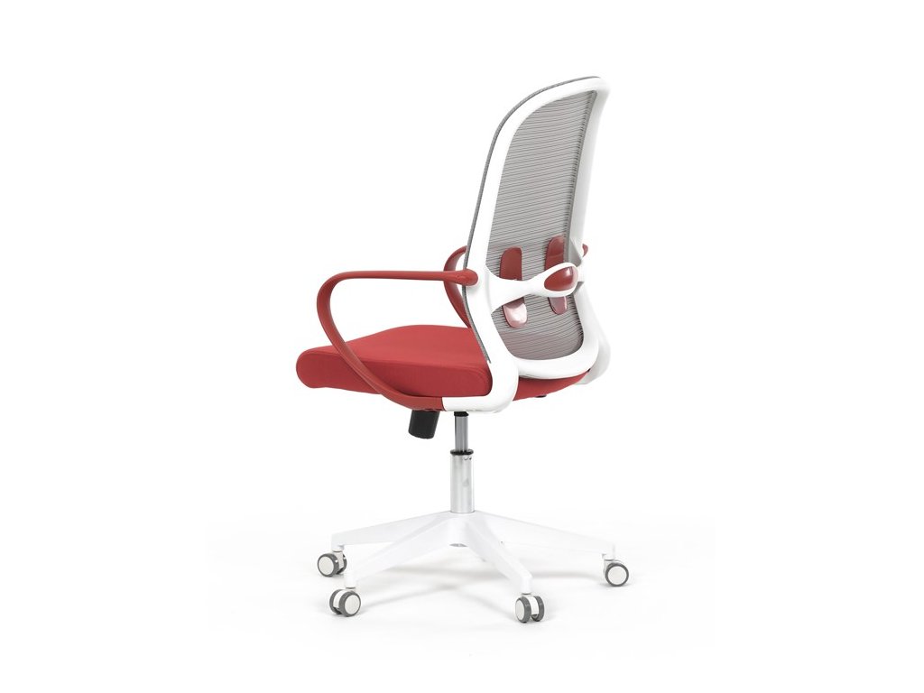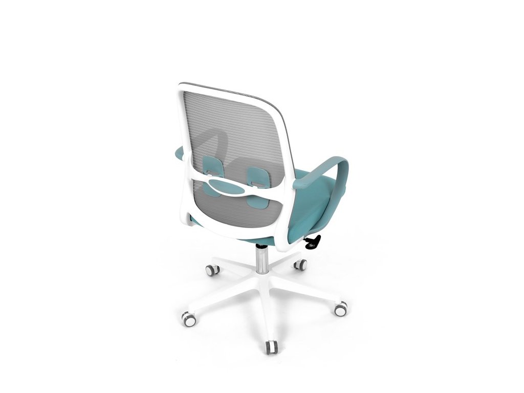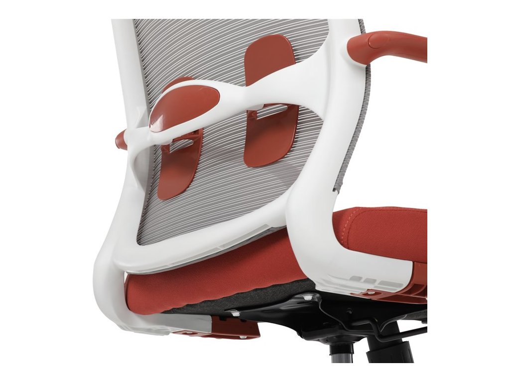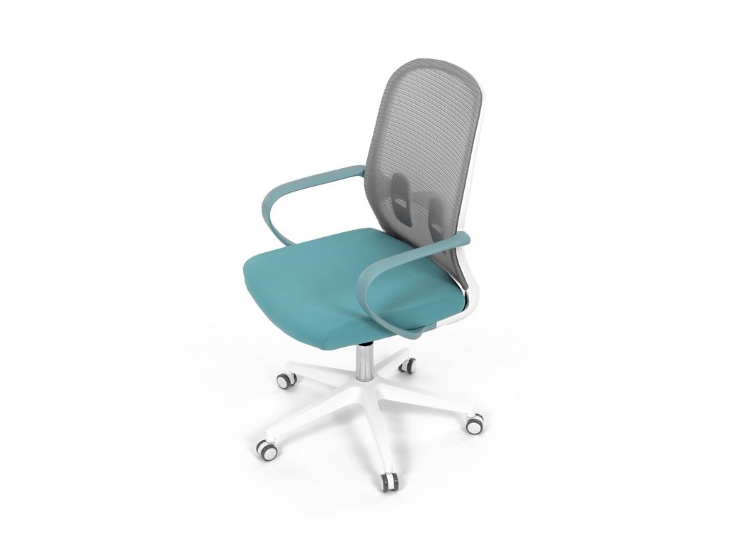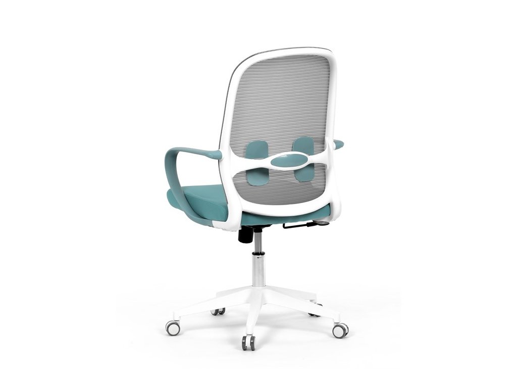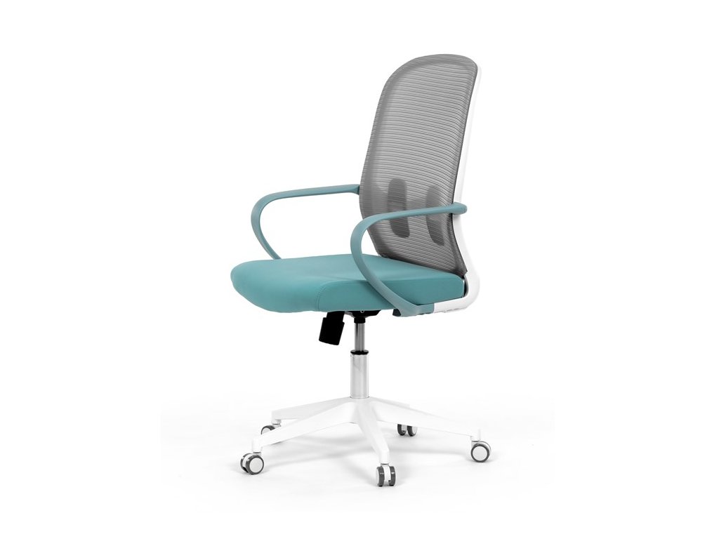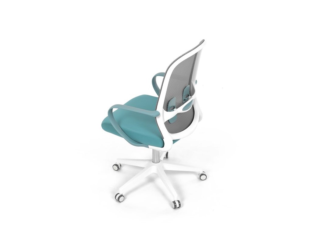 Moderná kancelárska stolička, ktorá kombinuje elegantný a zároveň jednoduchý dizajn s maximálnym komfortom. Ergonomicky tvarované a vďaka použitej pevnej sieťovine priedušné operadlo s bedrovou opierkou poskytuje potrebnú podporu chrbta, zatiaľ čo pevné plastové podrúčky zaisťujú pohodlné sedenie počas celého pracovného dňa. Sedák s výplňou z PU peny je pohodlný, výškovo nastaviteľný, čo umožňuje individuálne prispôsobenie. Stolička je vybavená hojdacím mechanizmom s možnosťou nastavenia tuhosti pohupu, plynuté otáčanie a jednoduché výškové nastavenie je samozrejmosťou. Biely rám a podrúčky vo farbe čalúnenia sú zárukou zaujímavej farebnej kombinácie s čalúnením, ruka v ruke s moderným štýlom robia z tejto stoličky ideálnu voľbu pre každú kanceláriu ale aj prostredie domova.Dodatočné parametre