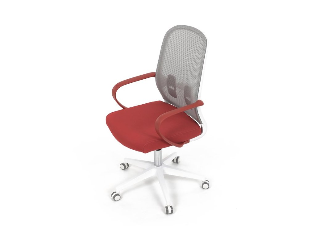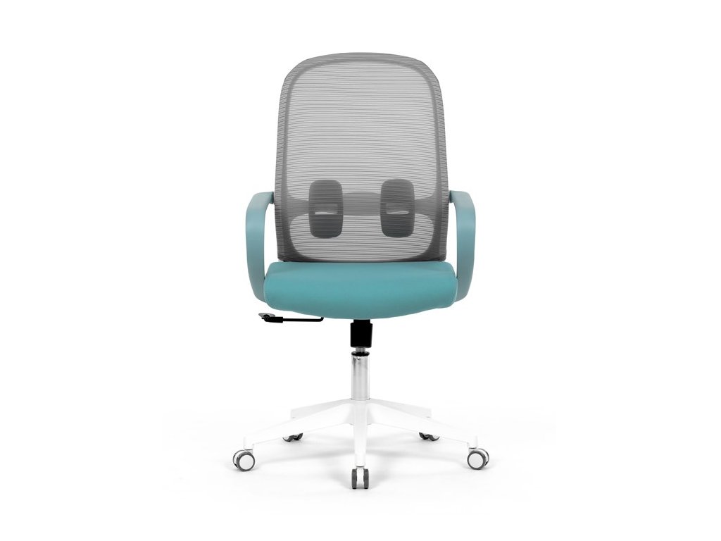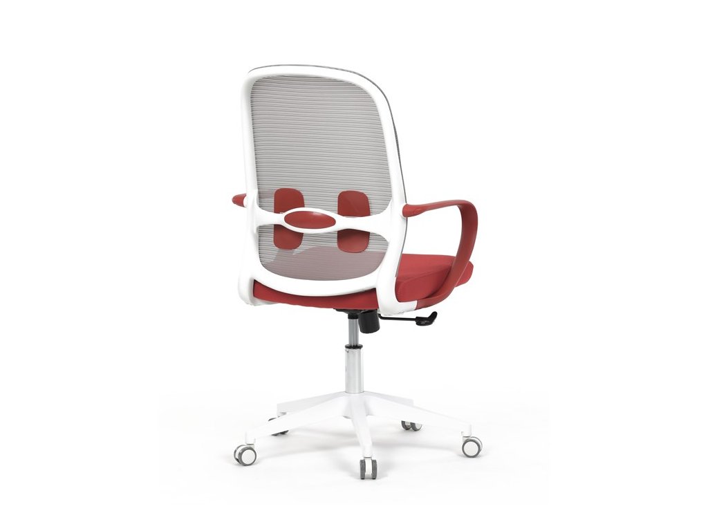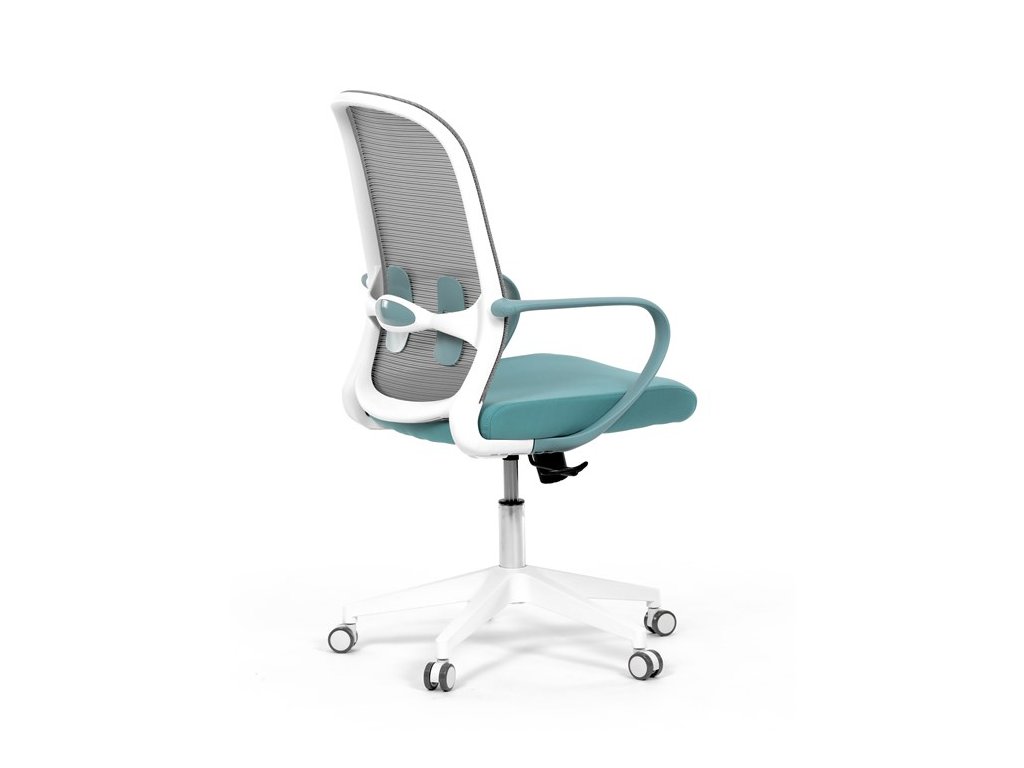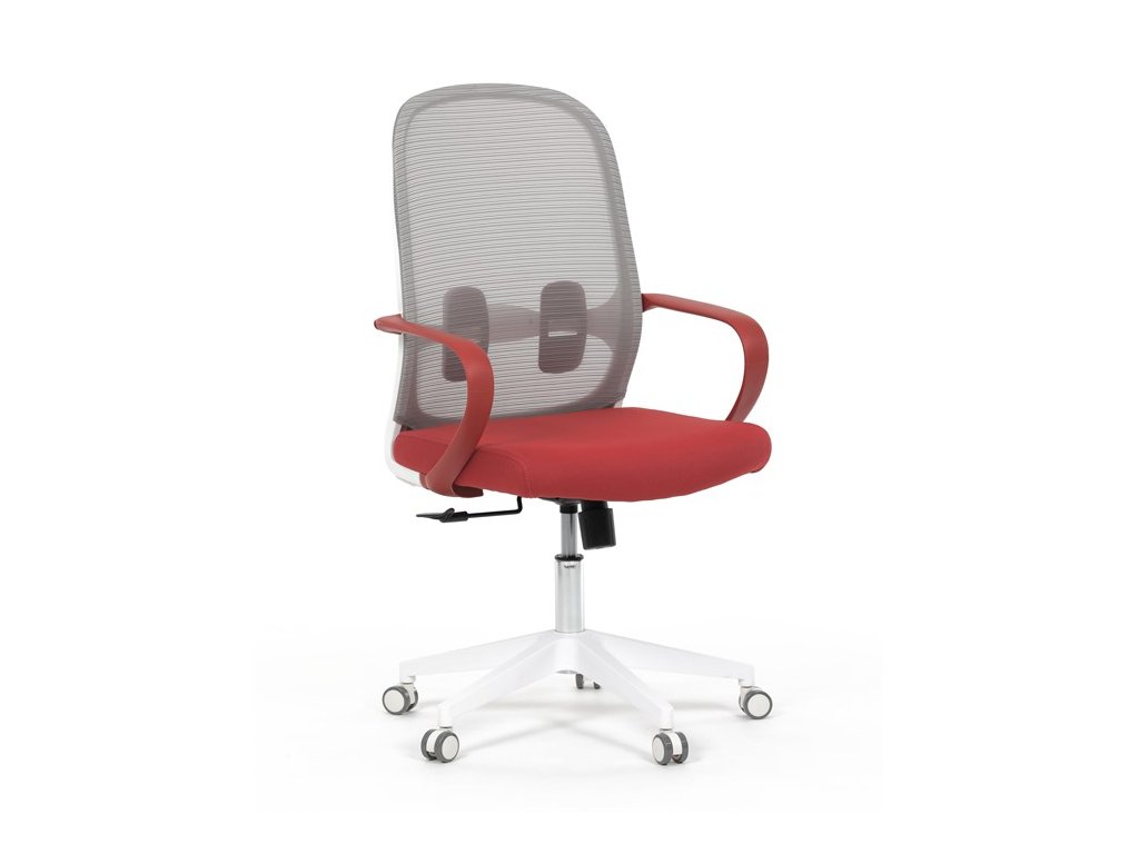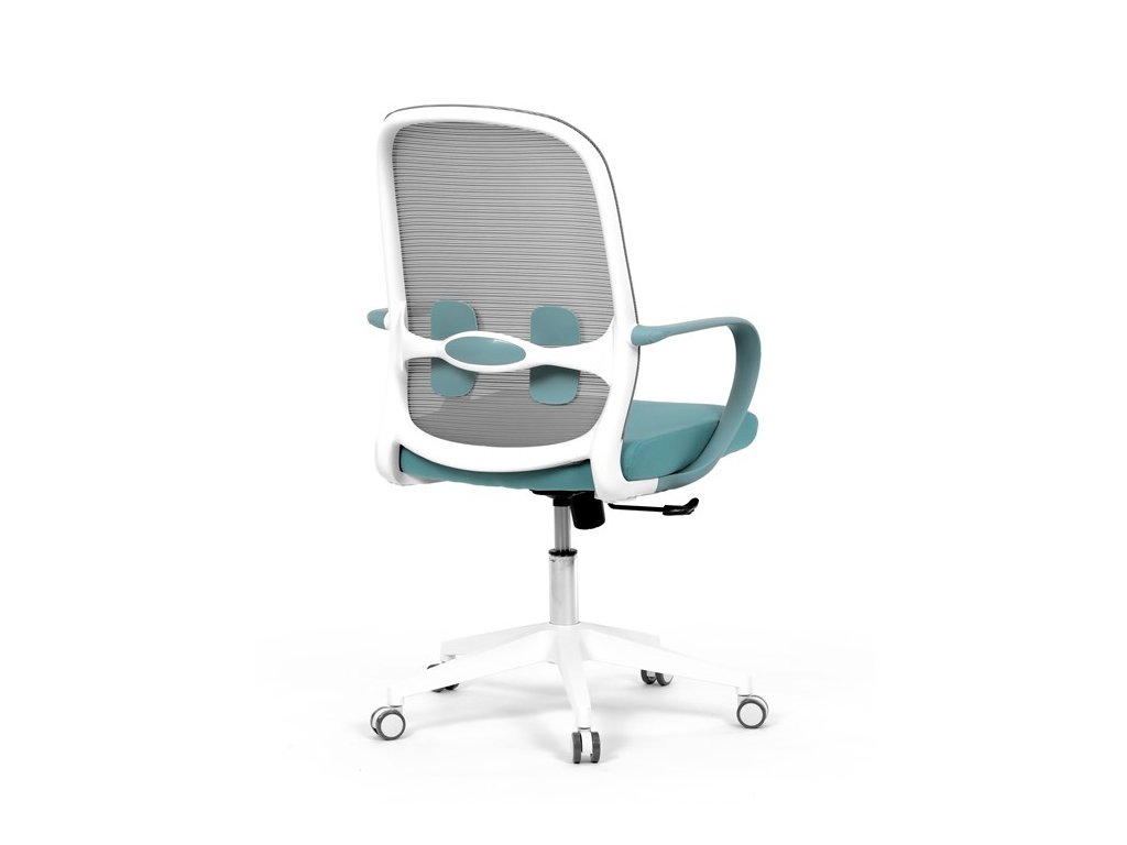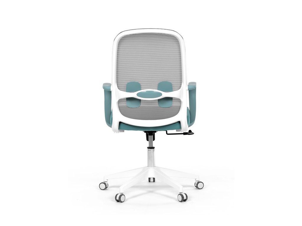 Moderná kancelárska stolička, ktorá kombinuje elegantný a zároveň jednoduchý dizajn s maximálnym komfortom. Ergonomicky tvarované a vďaka použitej pevnej sieťovine priedušné operadlo s bedrovou opierkou poskytuje potrebnú podporu chrbta, zatiaľ čo pevné plastové podrúčky zaisťujú pohodlné sedenie počas celého pracovného dňa. Sedák s výplňou z PU peny je pohodlný, výškovo nastaviteľný, čo umožňuje individuálne prispôsobenie. Stolička je vybavená hojdacím mechanizmom s možnosťou nastavenia tuhosti pohupu, plynuté otáčanie a jednoduché výškové nastavenie je samozrejmosťou. Biely rám a podrúčky vo farbe čalúnenia sú zárukou zaujímavej farebnej kombinácie s čalúnením, ruka v ruke s moderným štýlom robia z tejto stoličky ideálnu voľbu pre každú kanceláriu ale aj prostredie domova.Dodatočné parametre