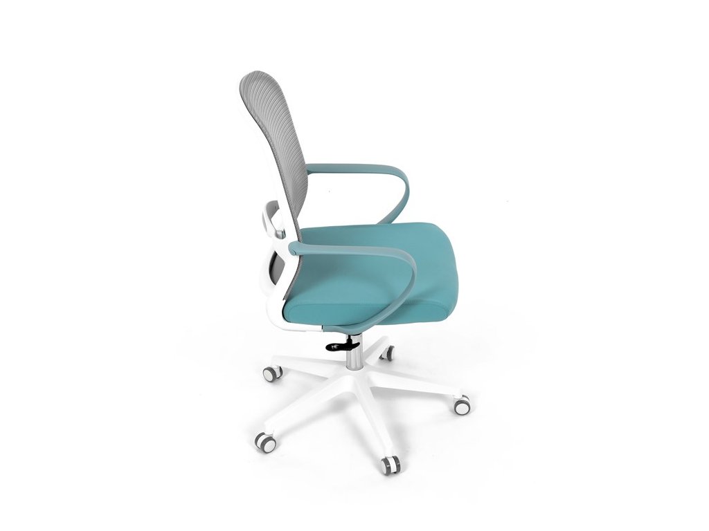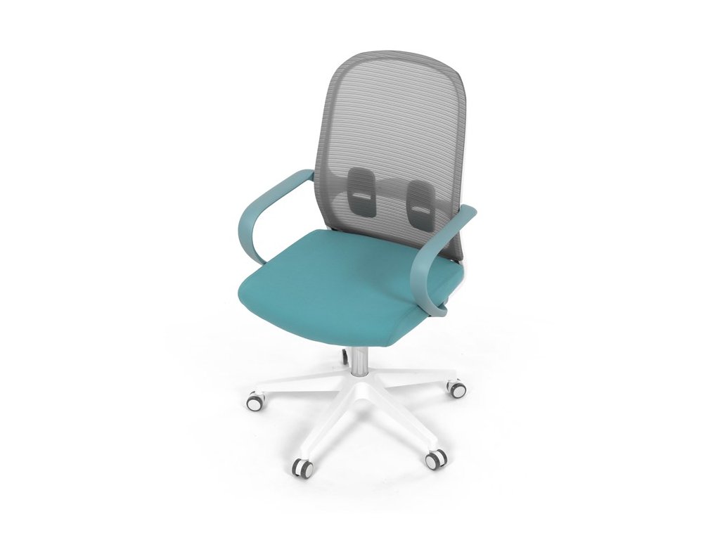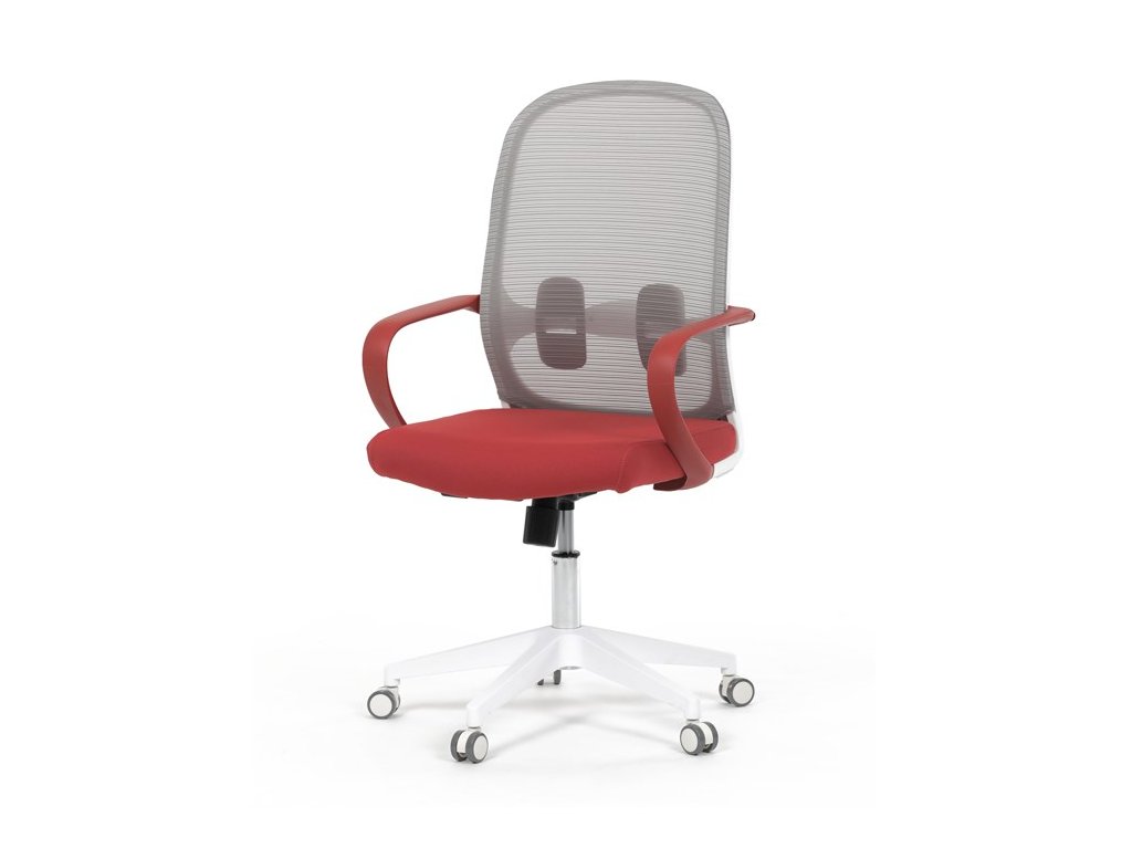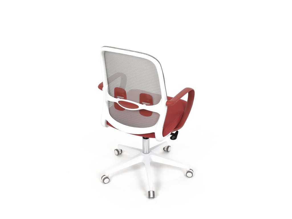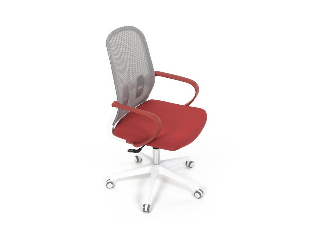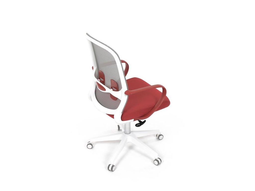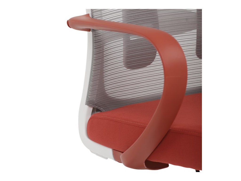 Moderná kancelárska stolička, ktorá kombinuje elegantný a zároveň jednoduchý dizajn s maximálnym komfortom. Ergonomicky tvarované a vďaka použitej pevnej sieťovine priedušné operadlo s bedrovou opierkou poskytuje potrebnú podporu chrbta, zatiaľ čo pevné plastové podrúčky zaisťujú pohodlné sedenie počas celého pracovného dňa. Sedák s výplňou z PU peny je pohodlný, výškovo nastaviteľný, čo umožňuje individuálne prispôsobenie. Stolička je vybavená hojdacím mechanizmom s možnosťou nastavenia tuhosti pohupu, plynuté otáčanie a jednoduché výškové nastavenie je samozrejmosťou. Biely rám a podrúčky vo farbe čalúnenia sú zárukou zaujímavej farebnej kombinácie s čalúnením, ruka v ruke s moderným štýlom robia z tejto stoličky ideálnu voľbu pre každú kanceláriu ale aj prostredie domova.Dodatočné parametre
