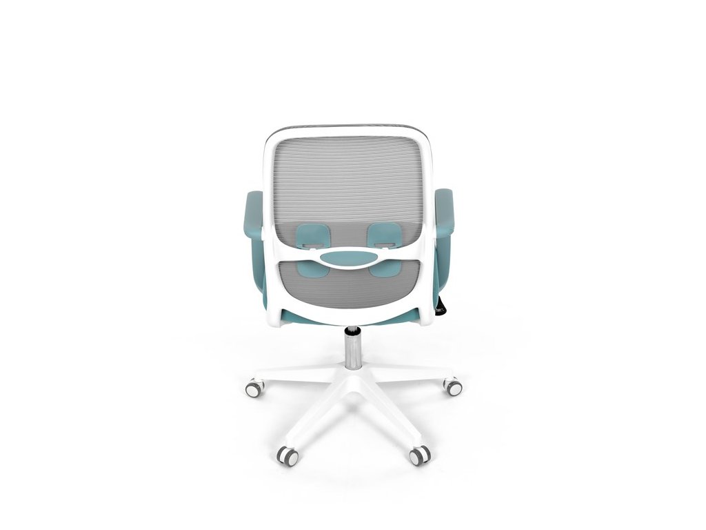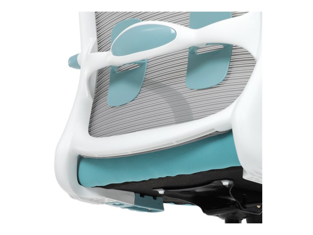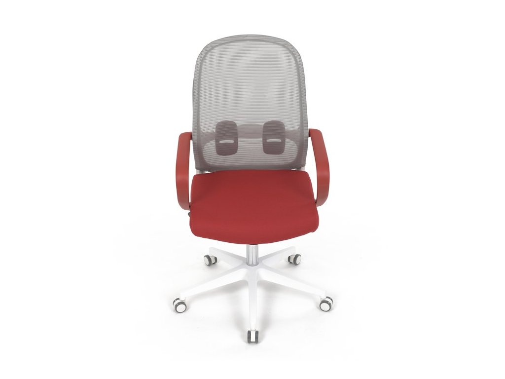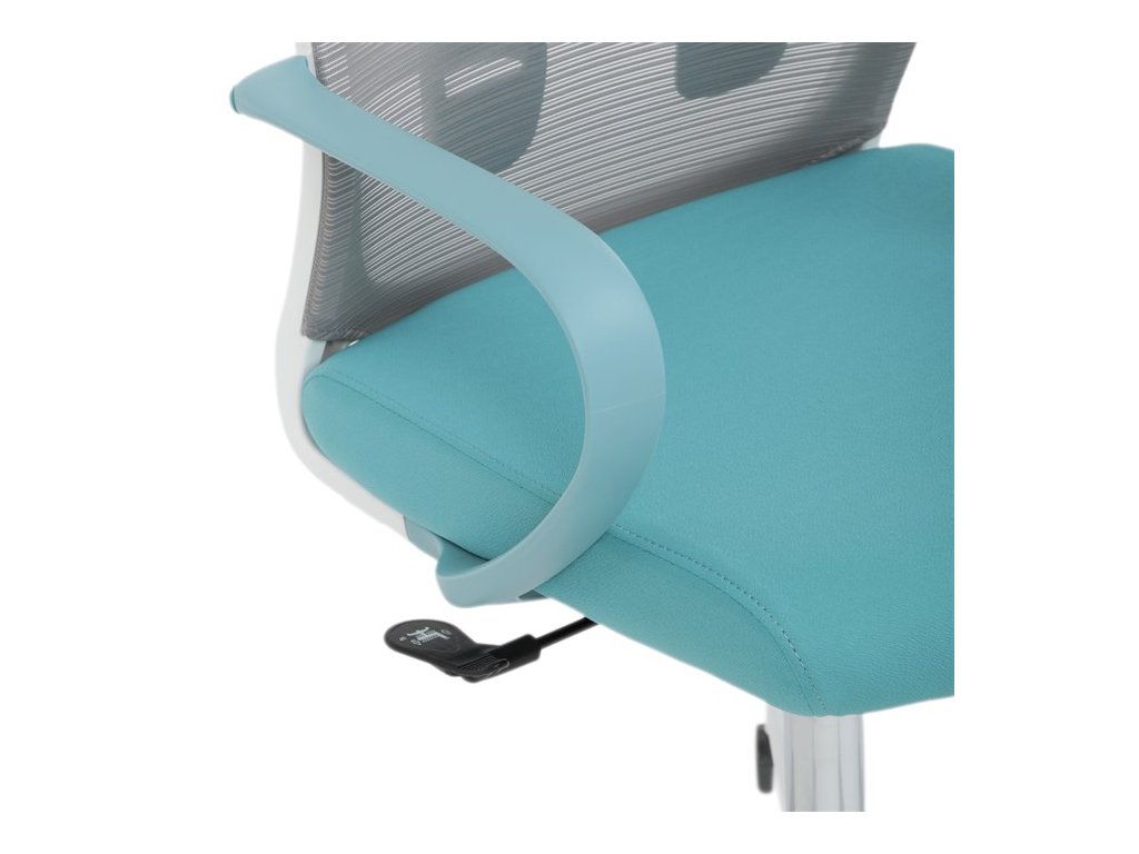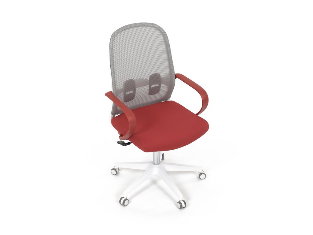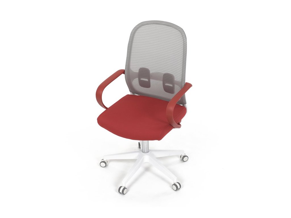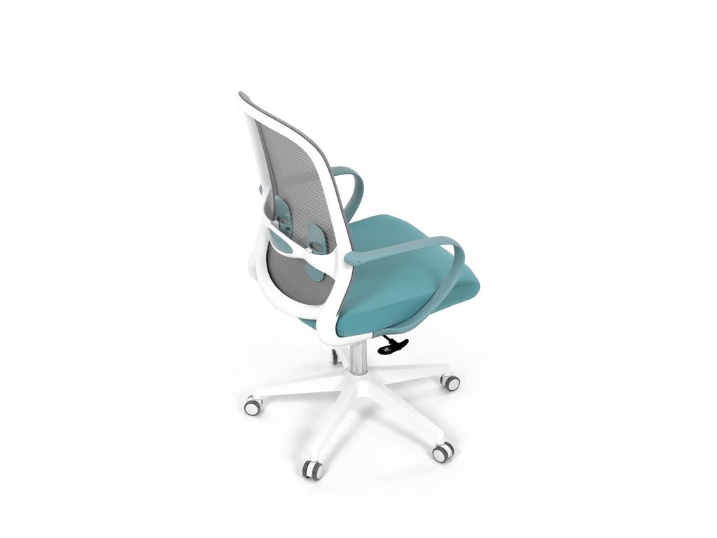 Moderná kancelárska stolička, ktorá kombinuje elegantný a zároveň jednoduchý dizajn s maximálnym komfortom. Ergonomicky tvarované a vďaka použitej pevnej sieťovine priedušné operadlo s bedrovou opierkou poskytuje potrebnú podporu chrbta, zatiaľ čo pevné plastové podrúčky zaisťujú pohodlné sedenie počas celého pracovného dňa. Sedák s výplňou z PU peny je pohodlný, výškovo nastaviteľný, čo umožňuje individuálne prispôsobenie. Stolička je vybavená hojdacím mechanizmom s možnosťou nastavenia tuhosti pohupu, plynuté otáčanie a jednoduché výškové nastavenie je samozrejmosťou. Biely rám a podrúčky vo farbe čalúnenia sú zárukou zaujímavej farebnej kombinácie s čalúnením, ruka v ruke s moderným štýlom robia z tejto stoličky ideálnu voľbu pre každú kanceláriu ale aj prostredie domova.Dodatočné parametre