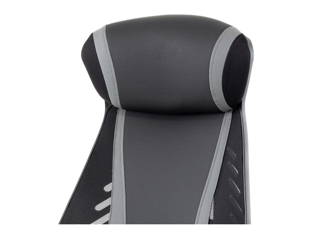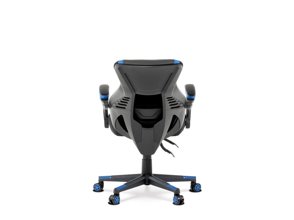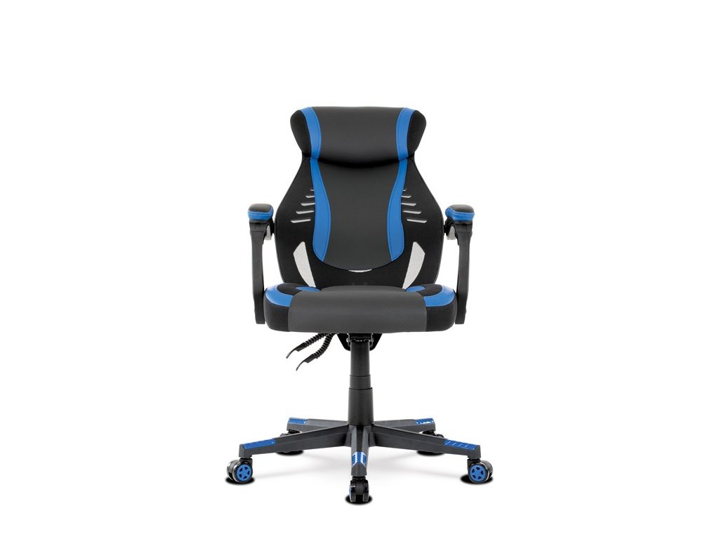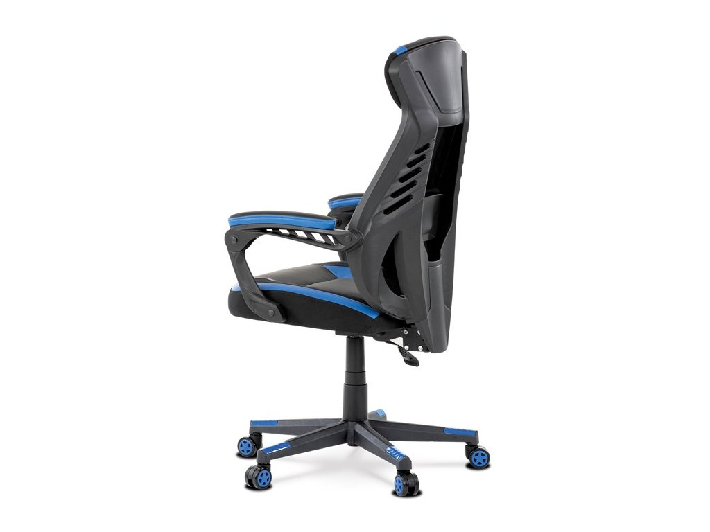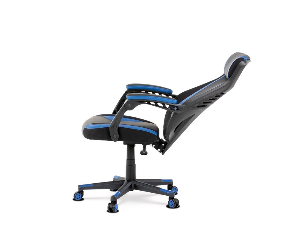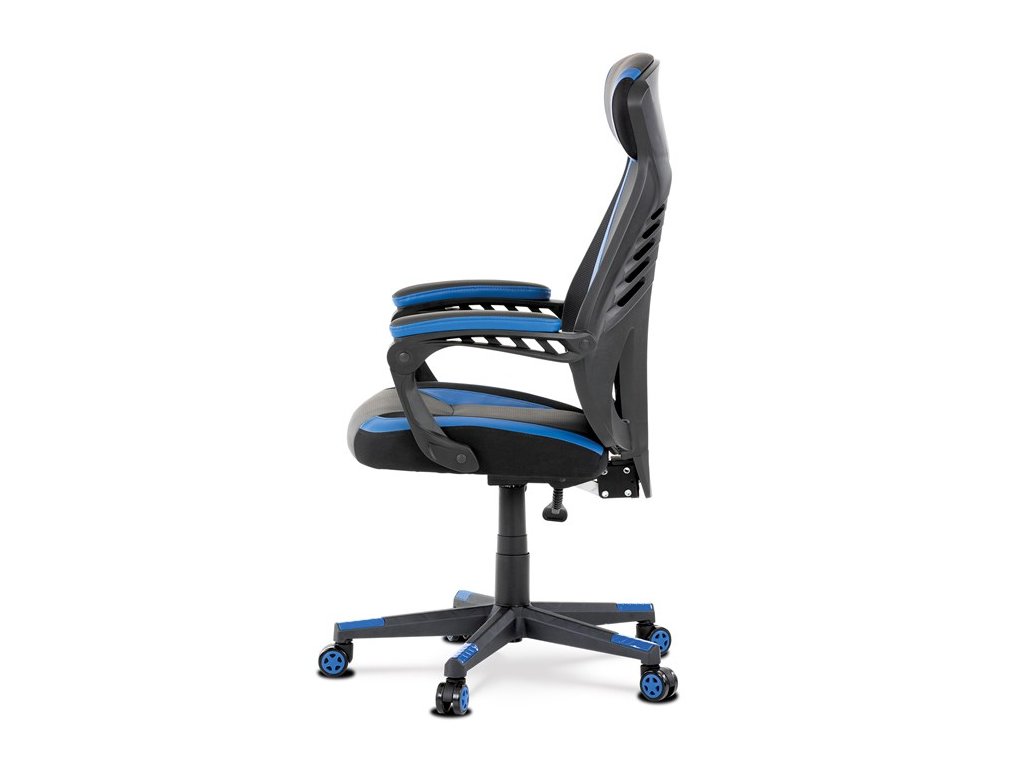 Moderné kancelárske kreslo v športovom dizajne, ktoré svojím výzorom a bohatou funkčnosťou zaujme náročného užívateľa. O maximálne pohodlie sa v prvom rade postará kvalitné spracovanie použitých materiálov, modrej a čiernej perforovanej ekokože v kombinácii s príjemnou čiernou látkou a vzdušnou sieťovinou MESH, všetko kvalitne a ergonomicky tvarované pre komfortné sedenie. Kreslo je vybavené permanent contact mechanizmom s plynulou aretáciou, čo oceníte hlavne pri používani kresla v dobe, kedy je hlavnou náplňou relax. Ovládanie je zabezpečené cez páčky umiestnené pod sedákom, jedna ovláda aretáciu opierky, druhá sa postará o výškové nastavenie stoličky. Masívny čierny nylonový kríž dáva spoľahlivú záruku stability, je doplnený o dizajnové modré protišmykové doplnky a čierne kolieska a modrým štýlovým stredom. Masívna opierka hlavy a nastaviteľná bedrová opierka sa postará o správne držanie tela pri sedení. Podrúčky čalúnené v dizajne kresla pri sklápaní opierky kopírujú jej pohyb a vždy ostanú v pozícii, ktorú práve potrebujete na pohodlné opretie rúk. Toto štýlové kreslo nebude mať žiadny problém stať sa Vašim partnerom v práci, s ktorým strávite celý deň, a taktiež nikdy nesklame, keď ho umiestnite doma na pohodlné strávenie času pri surfovaní na internete alebo hraní obľubených PC hier. V každom prípade ale zaujme všetky oči svojim neprehliadnuteľným dizajnom.Dodatočné parametre