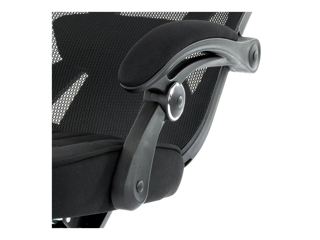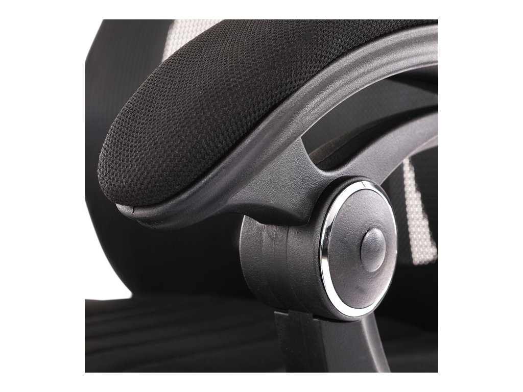 Elegantná a praktická kancelárska stolička z kolekcie TOP MANAGER, ktorá vďaka použitým materiálom predstavuje vynikajúco zladený výrobok. Masívny, ergonomicky tvarovaný sedák čalúnený v čiernej látke MESH tvorí pevný základ stoličky, ktorý dizajnovo a prakticky dopĺňa opierka z odolnej čiernej sieťoviny. Na pohodlí jednoznačne pridáva dizajnová opierka hlavy spolu s masívnymi čalúnenými podrúčkami. Stolička vďaka použitému synchrónnemu mechanizmu v kombinácii s polohovaním Vám zaručí vždy potrebnú polohu kresla, či už k práci alebo aj potrebnému relaxu.Dodatočné parametre