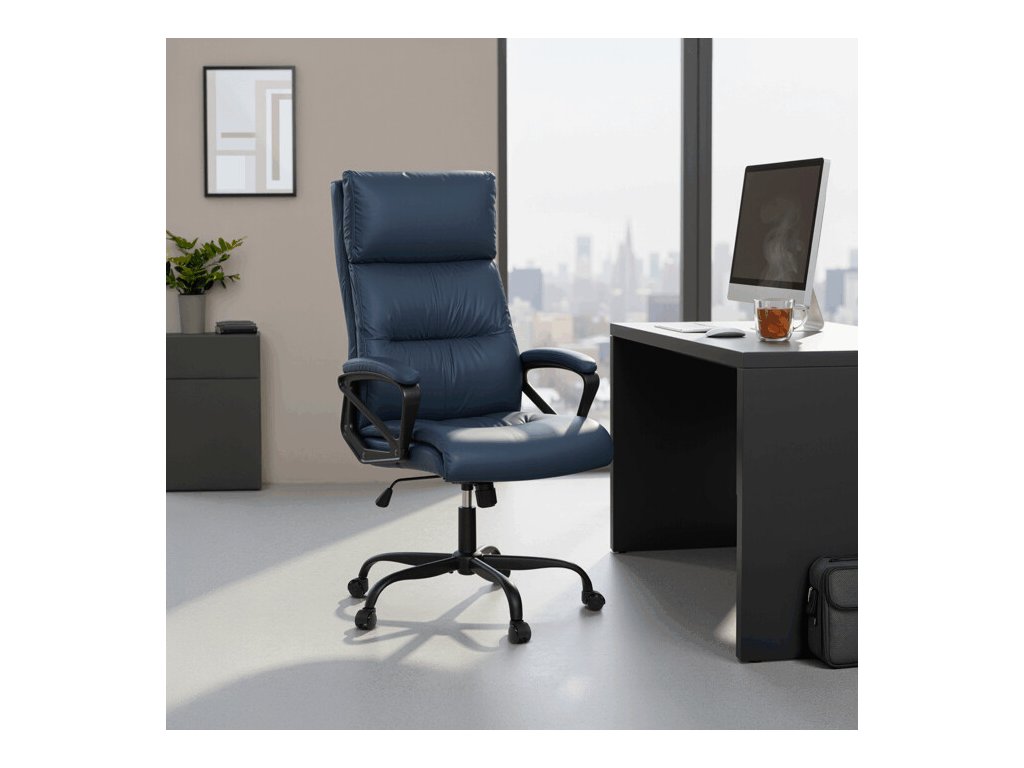 Pohodlné kancelárske kreslo v elegantnom čiernom prevedení, ktorá ponúka maximálny komfort počas pracovného dňa. Kreslo je čalúnené kvalitnou ekokožou, ktorá je jednoduchá na údržbu a príjemná na dotyk, dizajn je umocnený výrazným prešitím. Robustná konštrukcia a mäkké PU penové výplne zaisťujú dlhodobú odolnosť a pohodlie. Pevné podrúčky s čalúnením v dizajne kresla samozrejme pridávajú na komforte a poskytujú potrebnú podporu. Stabilitu a pevnosť kresla zabezpečuje kovový nosný kríž v čiernej farbe. Toto moderné manažérske kreslo je ideálnou voľbou pre každú kanceláriu, kde sa kladie dôraz na štýl a pohodlie.