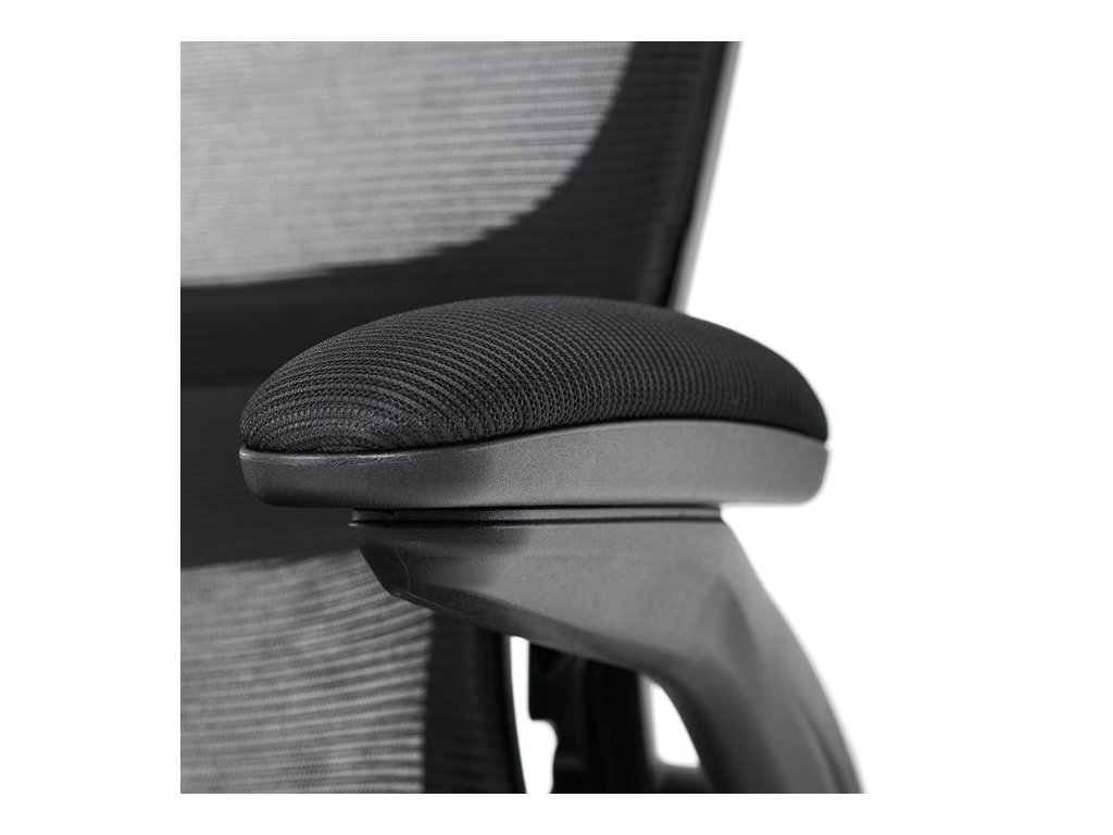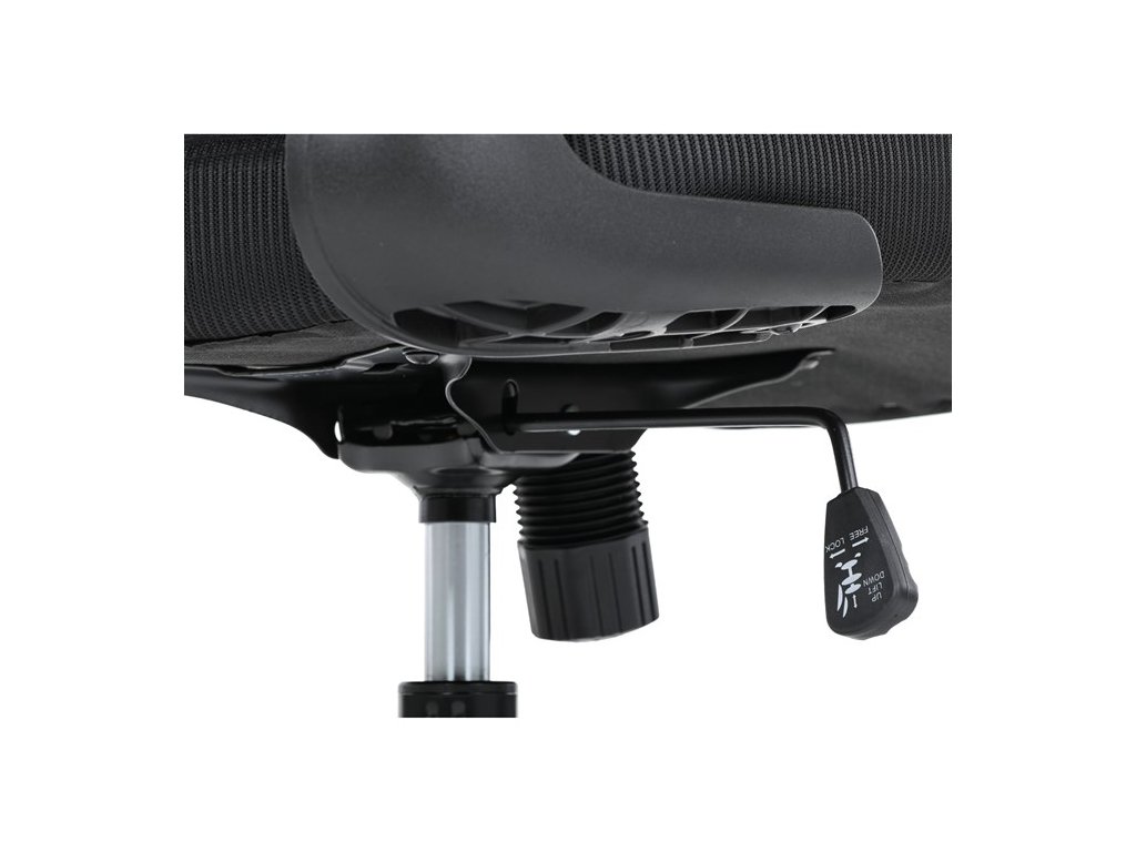 Moderná kancelárska stolička čalúnená v top kombinácii materiálov a farieb. Sedacia časť je z odolnej MESH látky, ktorá je ako stvorená pre dlhodobé sedenie, bonusom je jednoduchá údržba. Operadlo je z veľmi pevnej sieťoviny, čo okrem skvelého výzoru dodáva stoličke veľmi príjemné vzdušné sedenie. Pohodlie je umocnené praktickými výklopnými podrúčkami čalúnenými v dizajne kresla a rafinovanou opierkou hlavy, ktoré je tvorená vlastne iba ergonomicky dotvarovaným operadlom a neprehliadnuteľou a veľmi pohodlnou bedrovou opierkou. Kostra a nosný kríž sú z tvrdeného plastu, ktorý nielen stoličku odľahčí, ale dodáva jej potrebnú pevnosť a stabilitu. Základné funkcie stoličky sú obohatené synchrónnym mechanizmom, vďaka ktorému si môžete stoličku zaaretovať v ktorejkoľvek polohe podľa svojich potrieb.