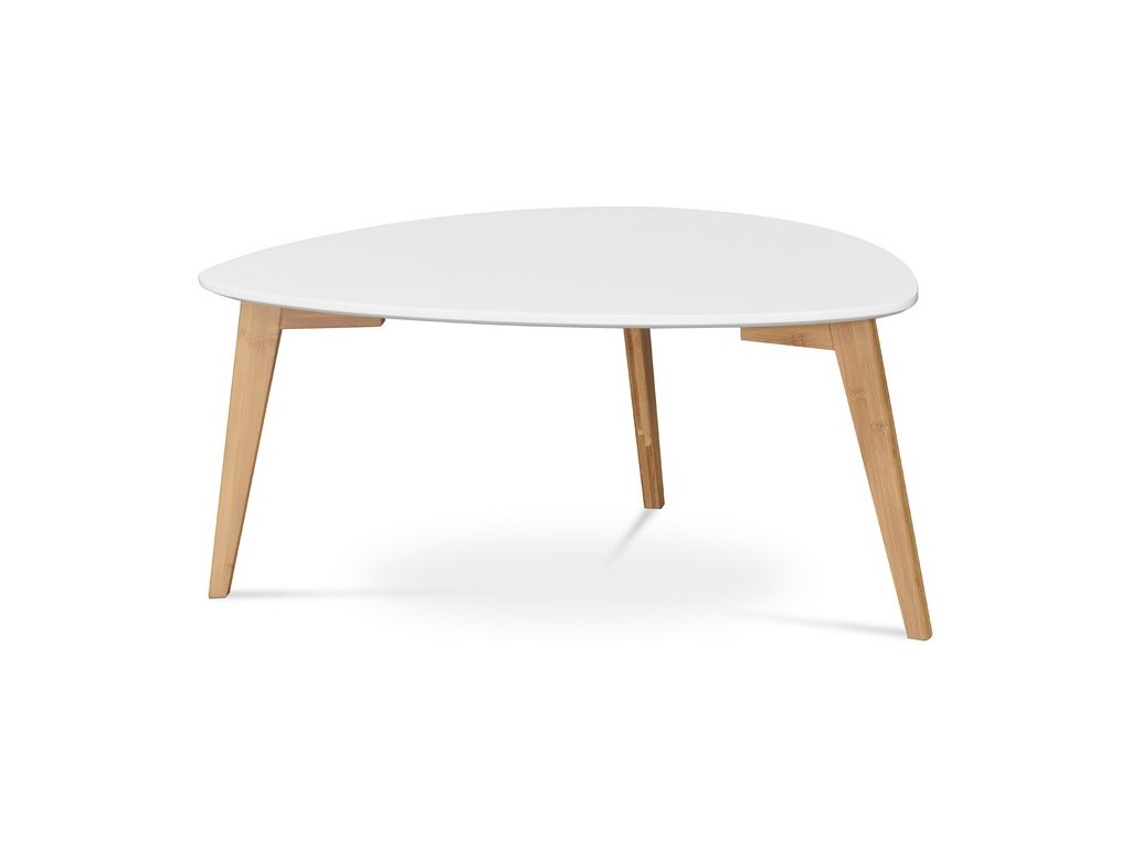 Konferenčný stolík je vyrobený s citom pre detail a je stelesnením harmónie medzi formou a funkciou. Jeho škandinávsky štýl, ktorý sa vyznačuje minimalistickými líniami a čisto bielym prevedením, vnesie do každého priestoru závan čerstvého vzduchu. Či už sa stane ústredným prvkom rušného kancelárskeho salónika alebo okúzľujúcim doplnkom obývacej izby, vďaka svojmu jedinečnému atypickému tvaru a príjemnej estetike sa hodí prakticky do akéhokoľvek prostredia. Robustná konštrukcia konferenčného stolíka má odolnú dosku z MDF, ktorú podopierajú tri pevné bambusové nohy v teplom hnedom odtieni. Táto kombinácia materiálov zaisťuje nielen stabilitu a dlhú životnosť, ale taktiež dodáva celkovému modernému vzhľadu organický nádych. Vďaka prirodzenej odolnosti bambusu je tento stolík investíciou pre tých, ktorí popri štýle oceňujú aj udržateľnosť.Dodatočné parametre