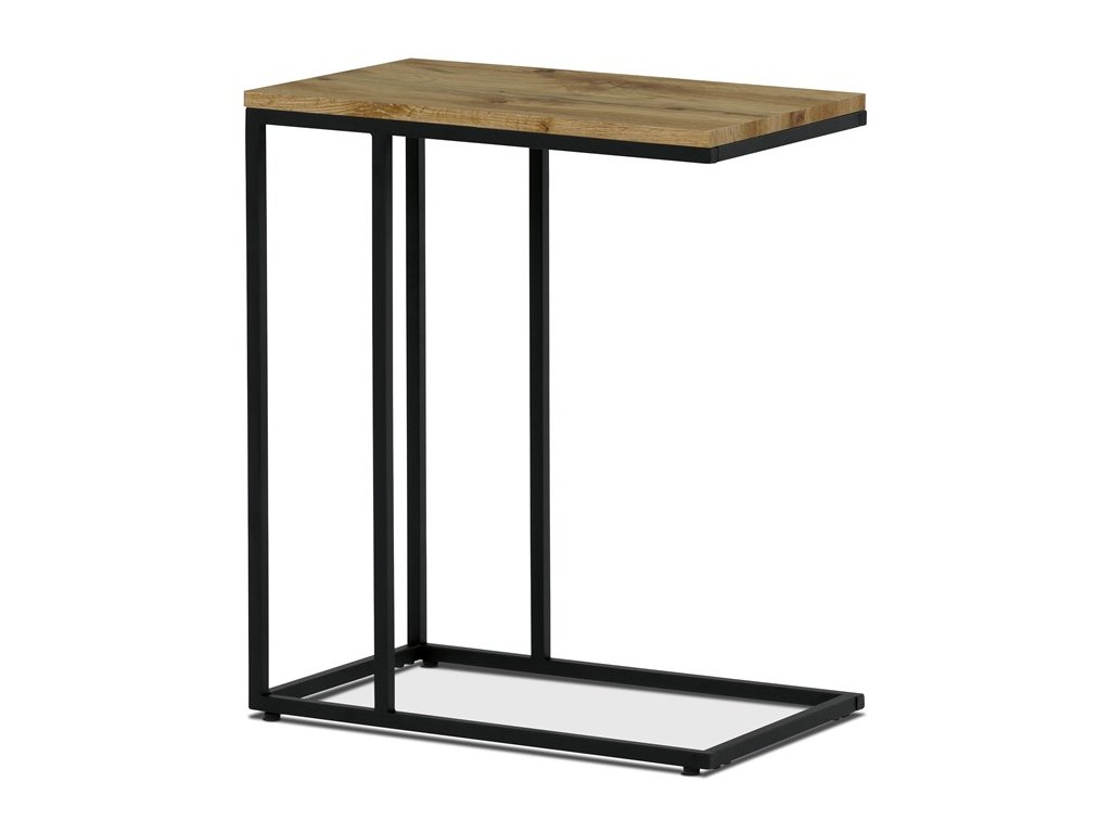 Odkladací stôl, 50x30x60 cm, MDF doska, dekor divoký dub, čierny kov.
