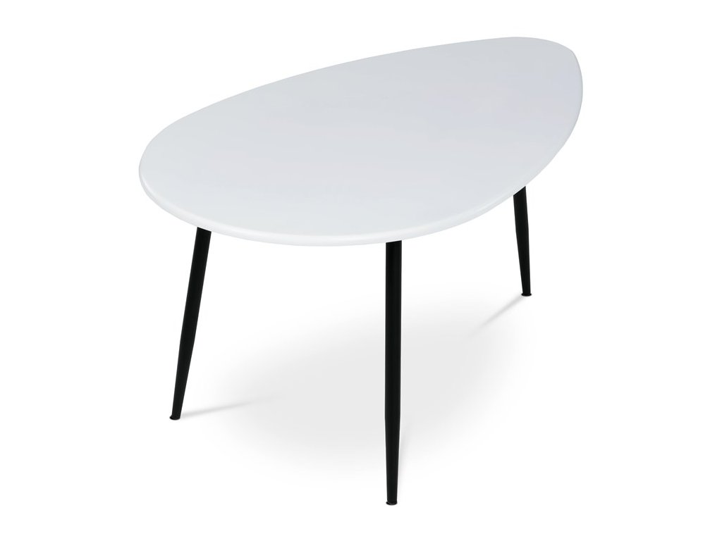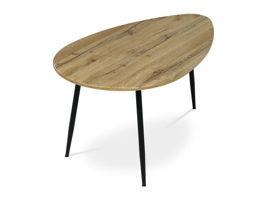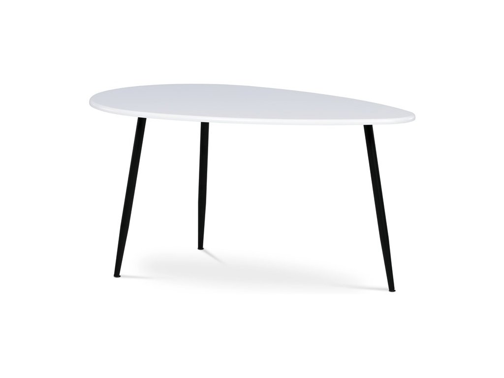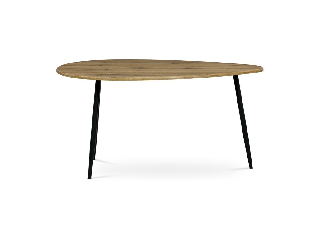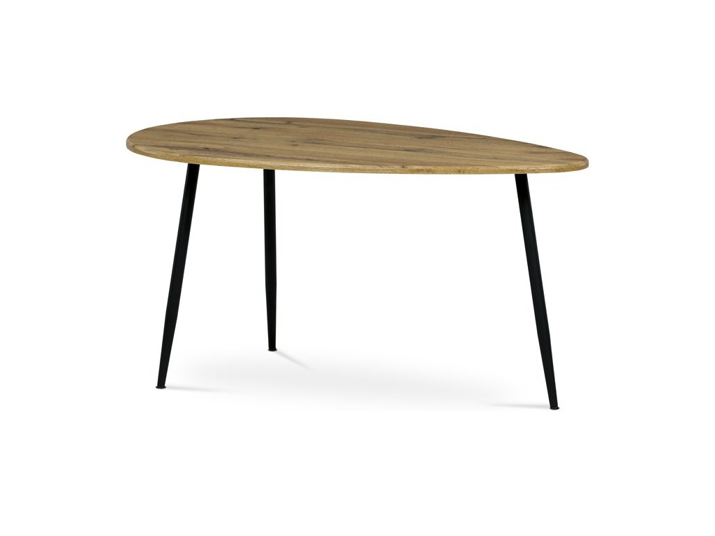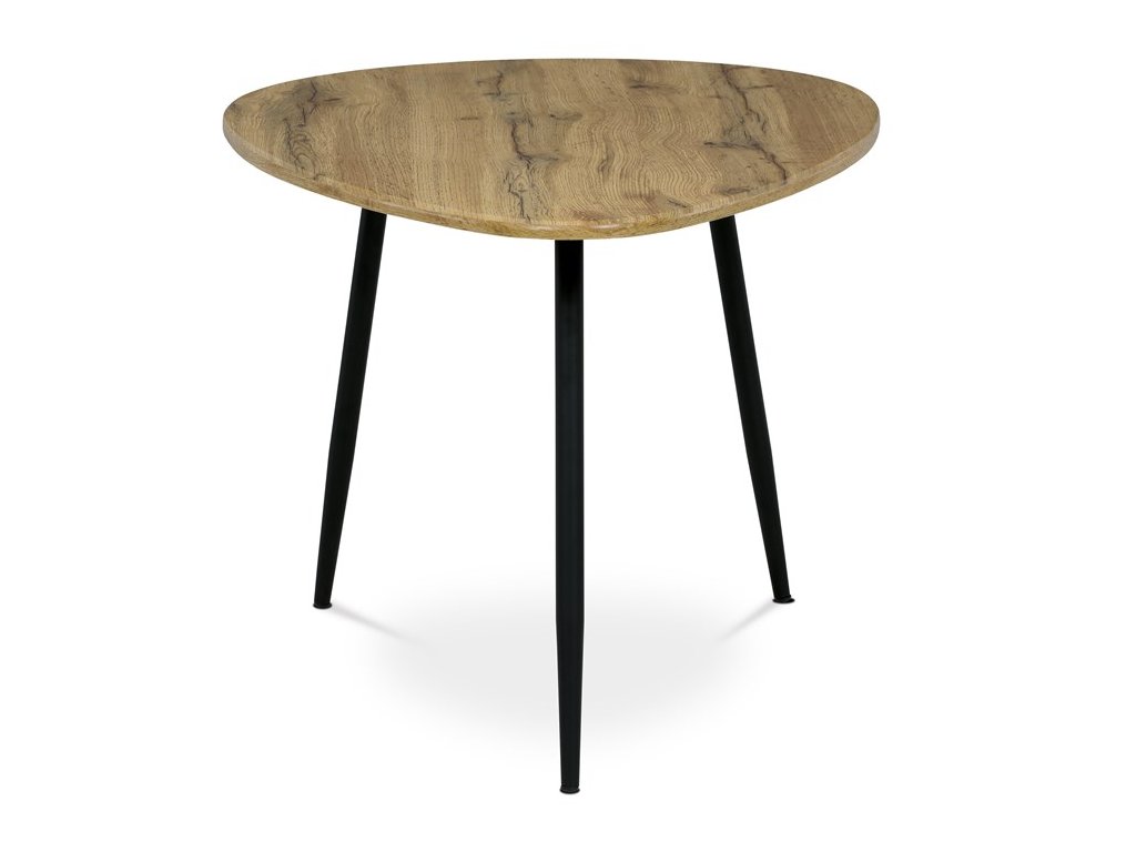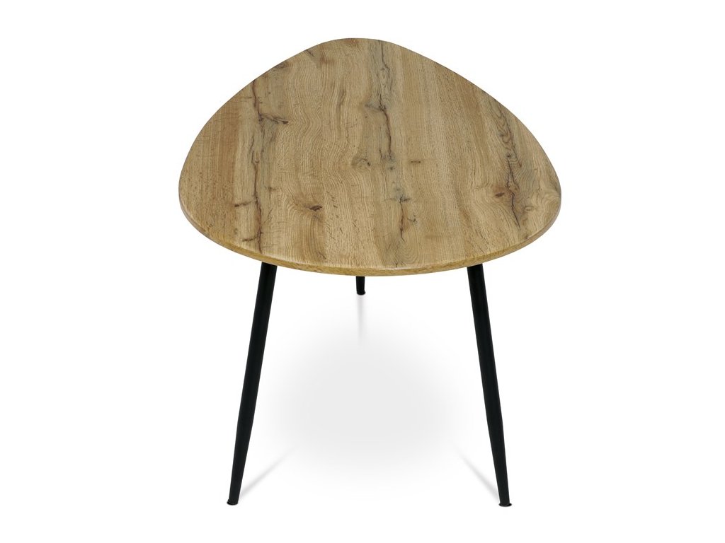Stolík, ktorý pôsobí výrazným dojmom a zároveň prináša industriálnu estetiku. Atypický tvar hornej dosky v kombinácii s materiálom MDF ponúka odolnosť s nádychom umeleckého vkusu. Stôl spočíva na kovových nohách vo výraznej čiernej farbe, ktoré dodávajú kontrast a zároveň sľubuje stabilitu. Jedinečná podnož s tromi nohami nielenže dodáva stolu atmosféru netradičného dizajnu, ale zaisťuje aj dostatok priestoru pre nohy pre maximálne pohodlie.Dodatočné parametre