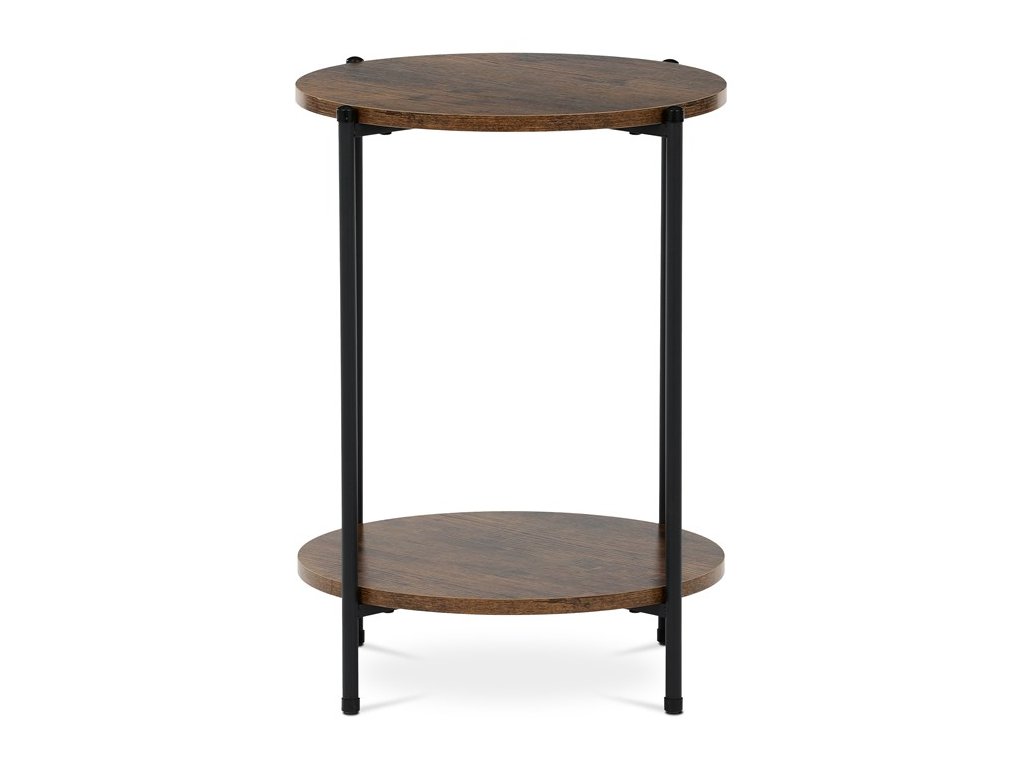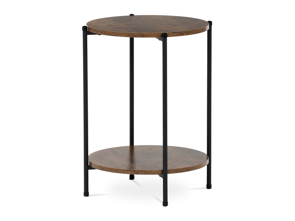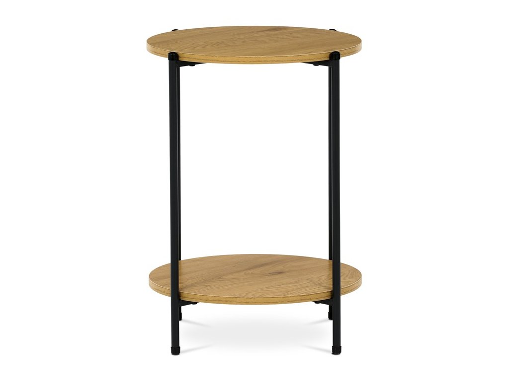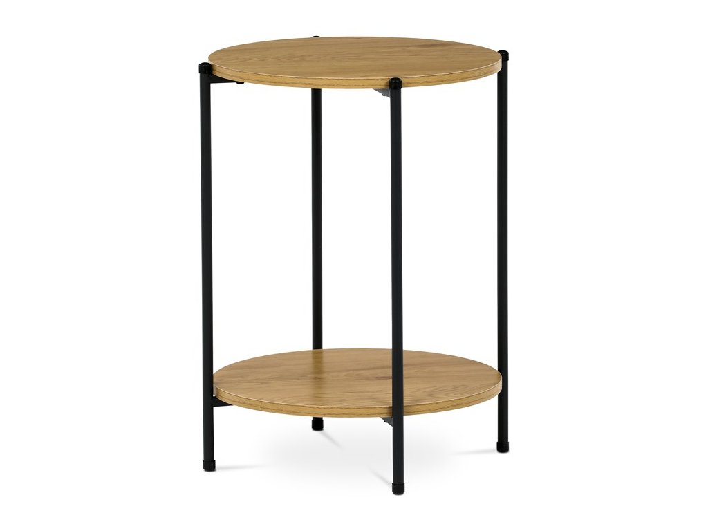 Moderný prístavný stolík značky Autronic spája minimalistický design a funkčnosť. Okrúhle dosky v dekore divokého duba dodávajú stolíku prírodnú eleganciu, zatiaľ čo čierno lakovaný kovový rám zaisťuje stabilitu a odolnosť. Dve praktické police ponúkajú dostatok priestoru na uloženie dekorácií, kníh alebo šálky kávy. Vďaka svojmu univerzálnemu vzhľadu je tento stolík ideálnou voľbou do obývacej izby, spálne alebo kancelárie. Vneste do svojho interiéru štýl a praktickosť s týmto nadčasovým kúskom!