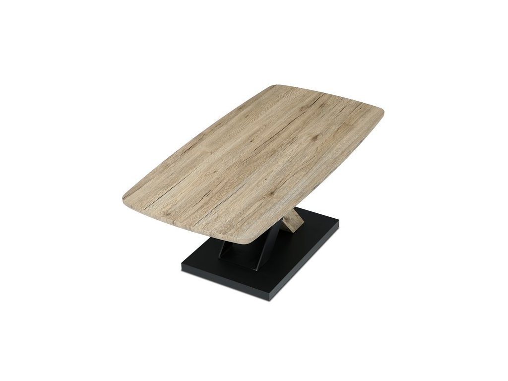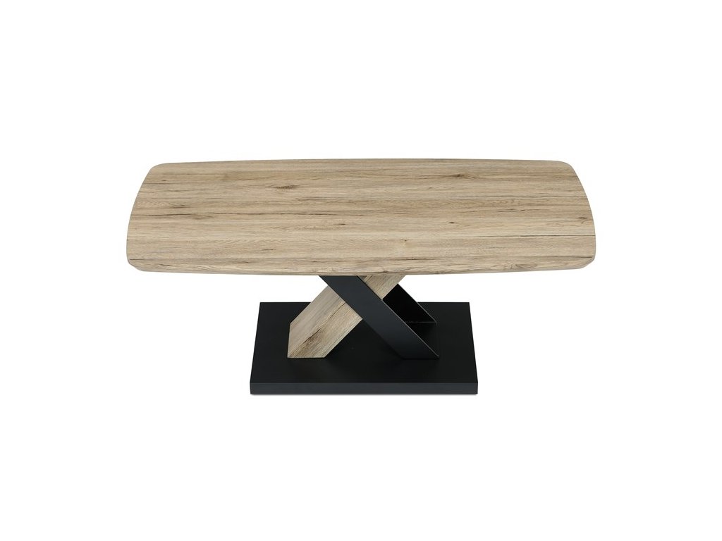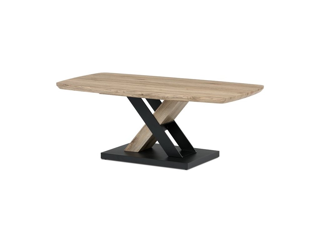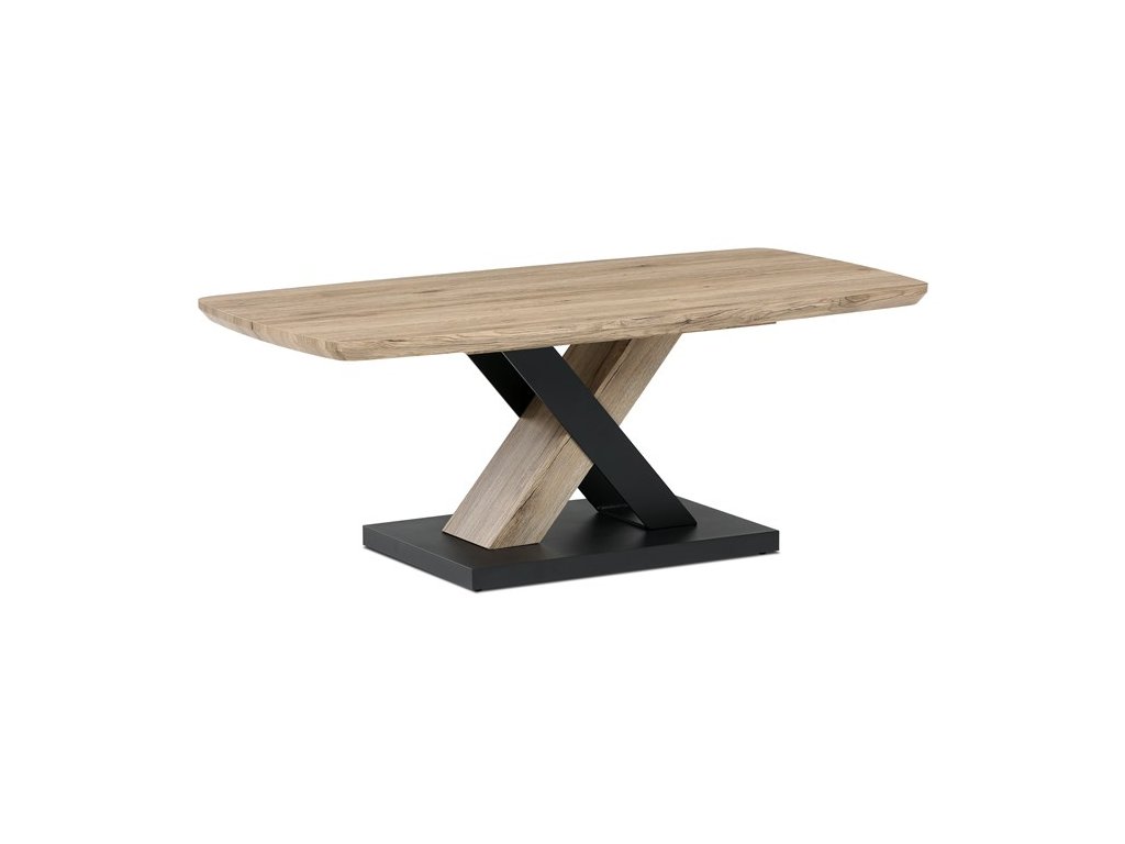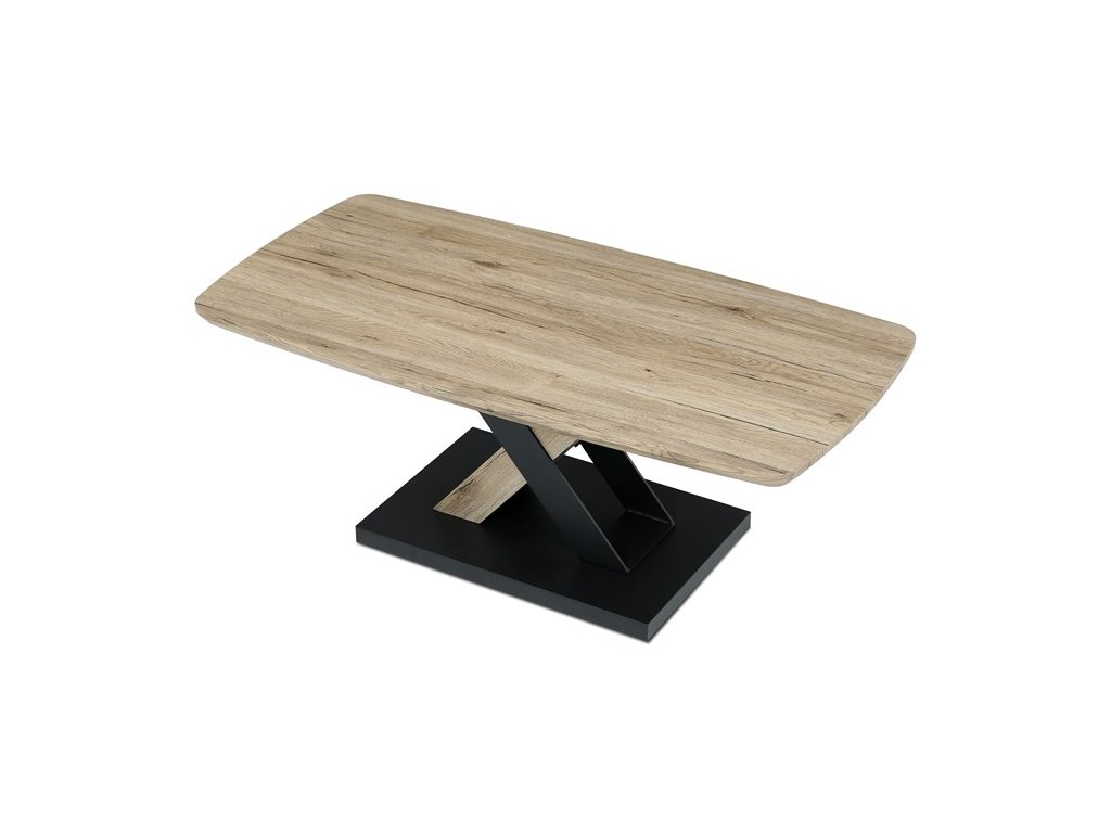 Konferenčný stolík, ktorý zaujme moderným dizajnom s dekorom dub San Remo, vnesie do vašej obývačky praktickosť, štýl a príjemnú atmosféru. Atypická doska z MDF s matnou povrchovou úpravou upevnená na centrálnej konštrukcii kombinuje prírodné a kovové prvky. Stabilná podnož zaisťuje pevnosť a odolnosť, vďaka čomu je stolík nielen štýlovým, ale aj praktickým doplnkom. Ideálny na každodenné využitie aj ako reprezentatívny prvok vášho interiéru. Kombinovateľný s jedálenský stolom HT-W1570 SRE.Dodatočné parametre