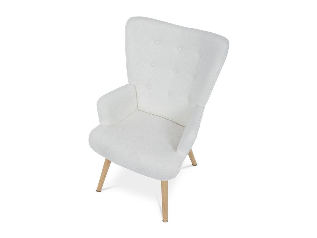 Ušiak v obľúbenom škandinávskom štýle predstavuje ideálnu voľbu pre každého, kto hľadá pohodlné kreslo s mäkkým povrchom a moderným dizajnom. Bouclé štruktúra vytvára príjemný, trendový vzhľad, vďaka ktorému sa tento typ kresla stáva výrazným prvkom v obývačke, pracovni alebo čitárni. Ergonomický tvar podporuje celodenný komfort, zatiaľ čo pevná penová výplň poskytuje stabilné a pohodlné sedenie.Masívne drevené nohy zaručujú dlhodobú stabilitu, ľahkú údržbu a prirodzený vizuálny efekt, ktorý sa hodí k modernému, minimalistickému aj škandinávskemu interiéru. Kompaktné rozmery umožňujú umiestnenie do menších miestností, pričom ušiak poskytuje plnohodnotné pohodlie aj pri dlhšom relaxe. Nosnosť až 130 kg z neho robí spoľahlivý doplnok do domácnosti, kancelárie či izby pre hostí.