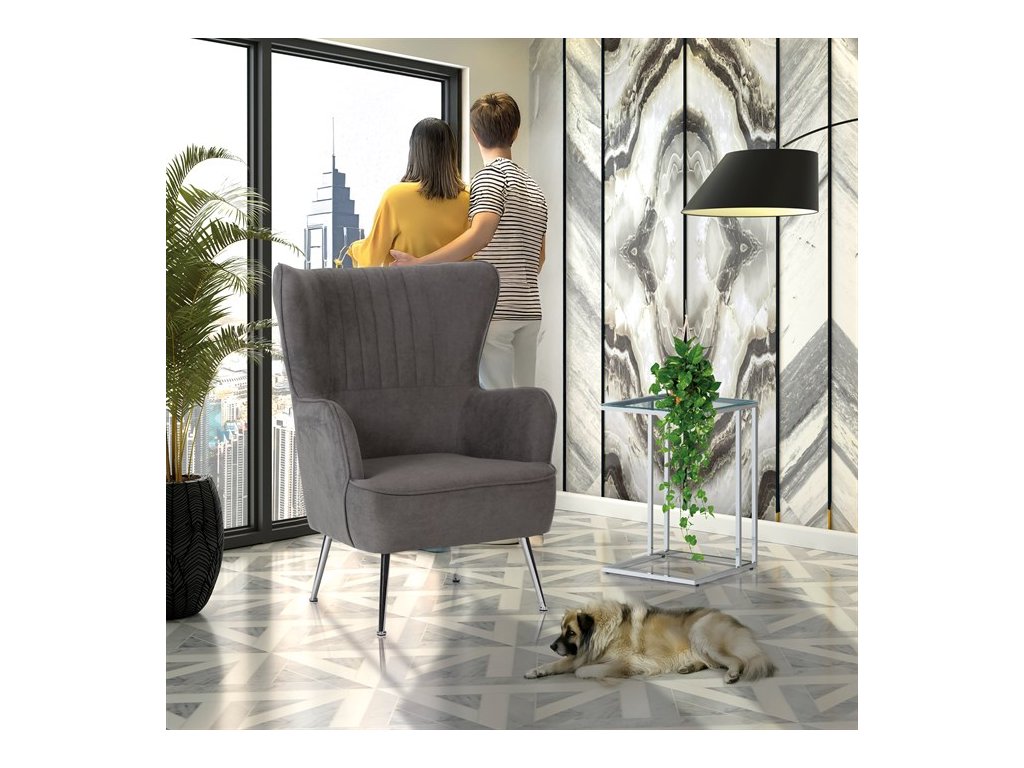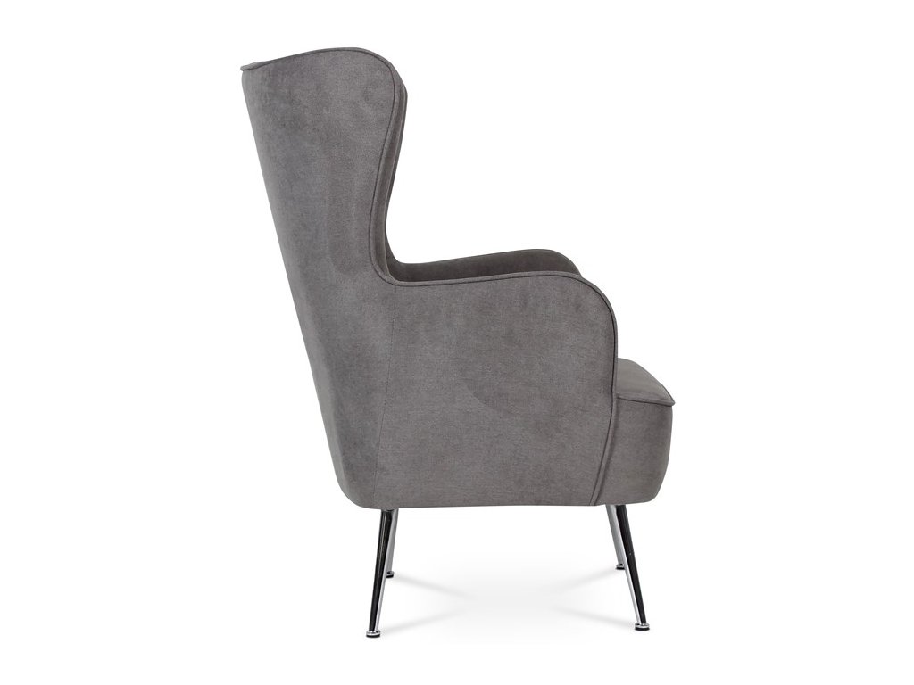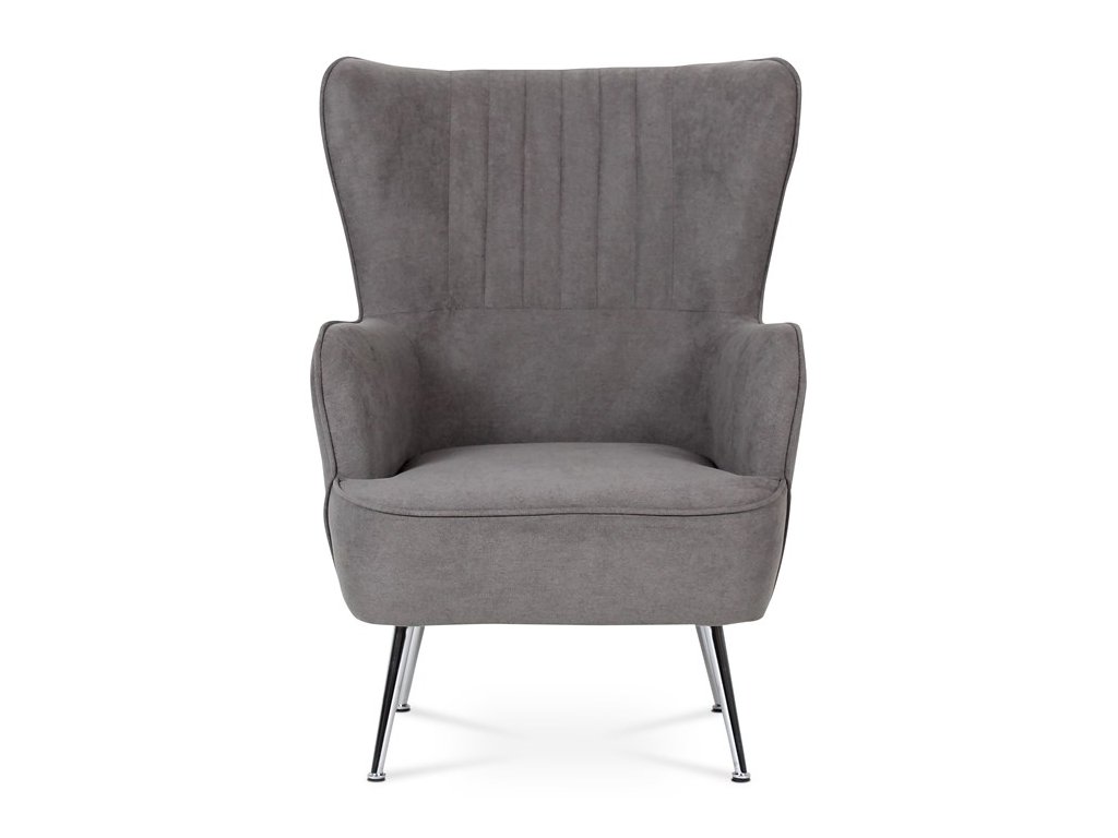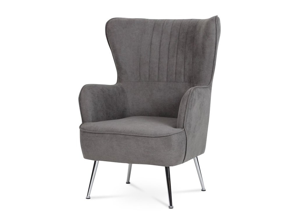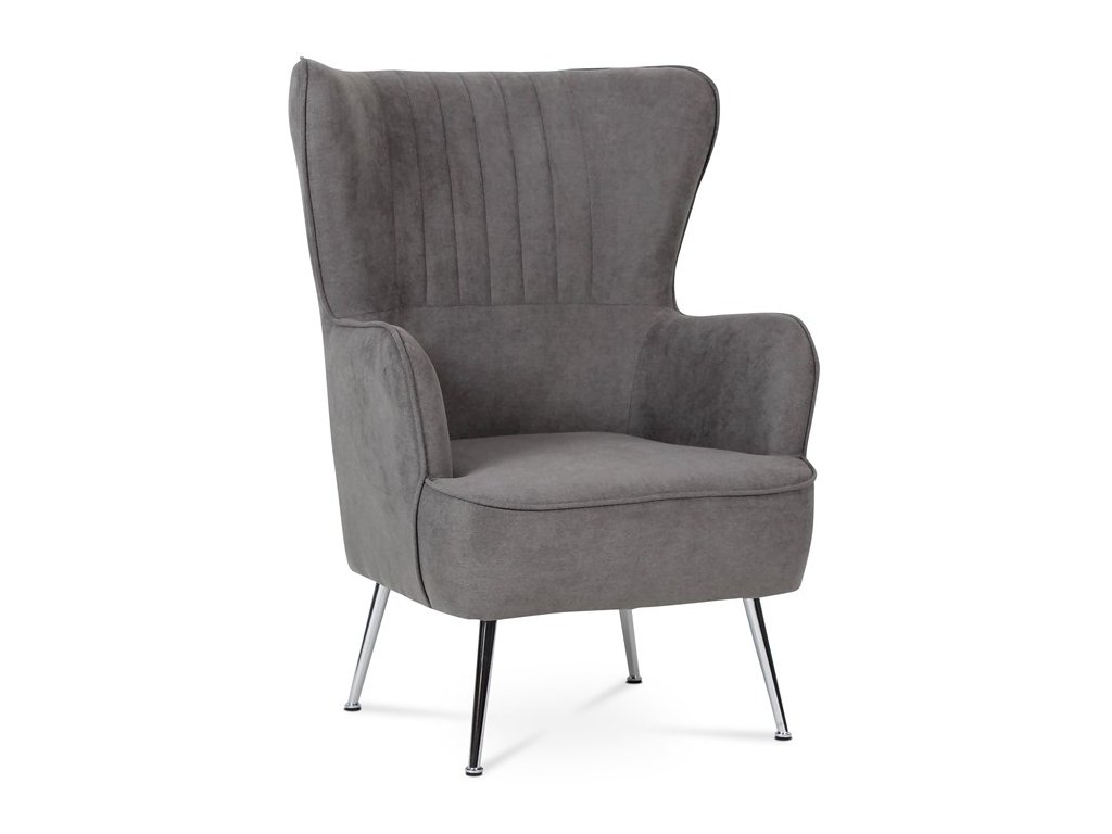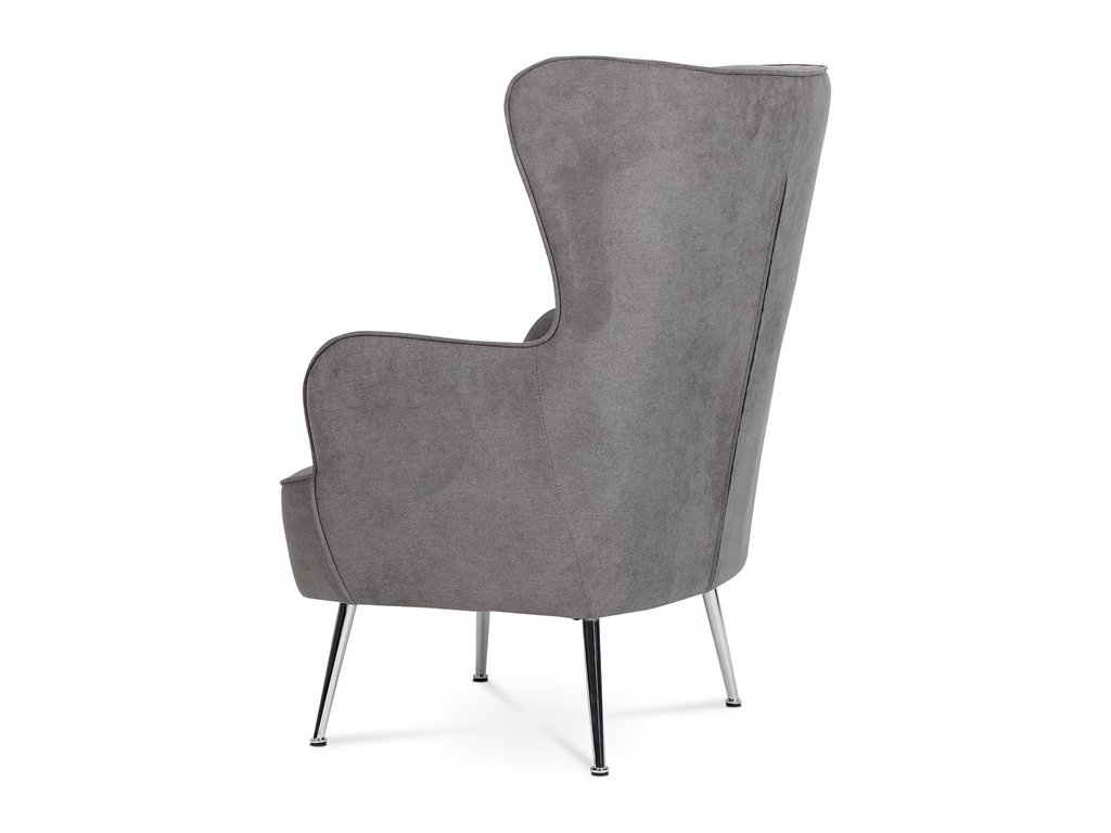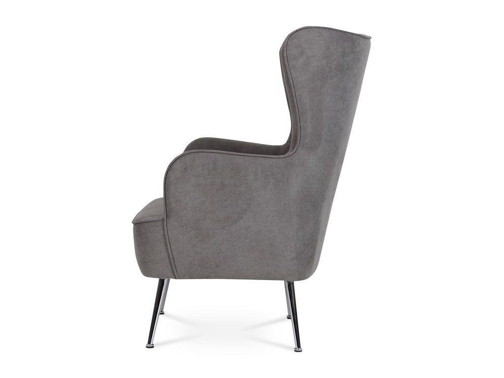 Retro kreslo „ušiak“ s vysokým pohodlným sedákom, vysokými podrúčkami a prešívaným zaobleným operadlom. To všetko je doplnené úzkymi kovovými kónickými nohami v chrómovom prevedení. Tým dostávame nielen nádych ľahkosti, ale aj príjemný kontrast k objemnejšej sedacej časti. Stačí len zasadnúť a vychutnávať pohodlie, ktoré toto kreslo prináša. Poťah je zo šedej látky, kostra kresla z masívu. Výplň z kvalitnej PU peny, sedák vystužený elastickými popruhmi. Svetlá výška kresla je 23 cm, výška podrúčiek úctyhodných 66 cm a šírka 8 cm. Nosnosť je 130 kg. Svojím štýlom si toto kreslo nájde dôstojné miesto v každom interiéri, kde bude neprehliadnuteľným prvkom.Dodatočné parametre