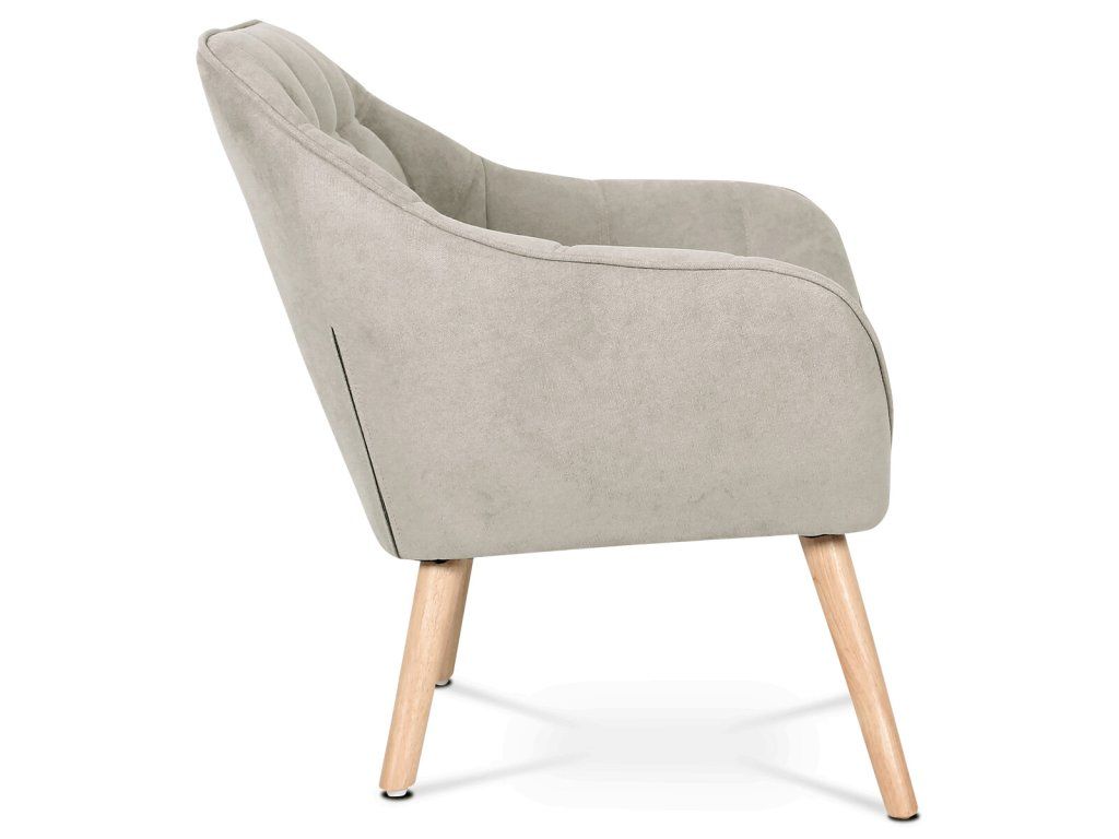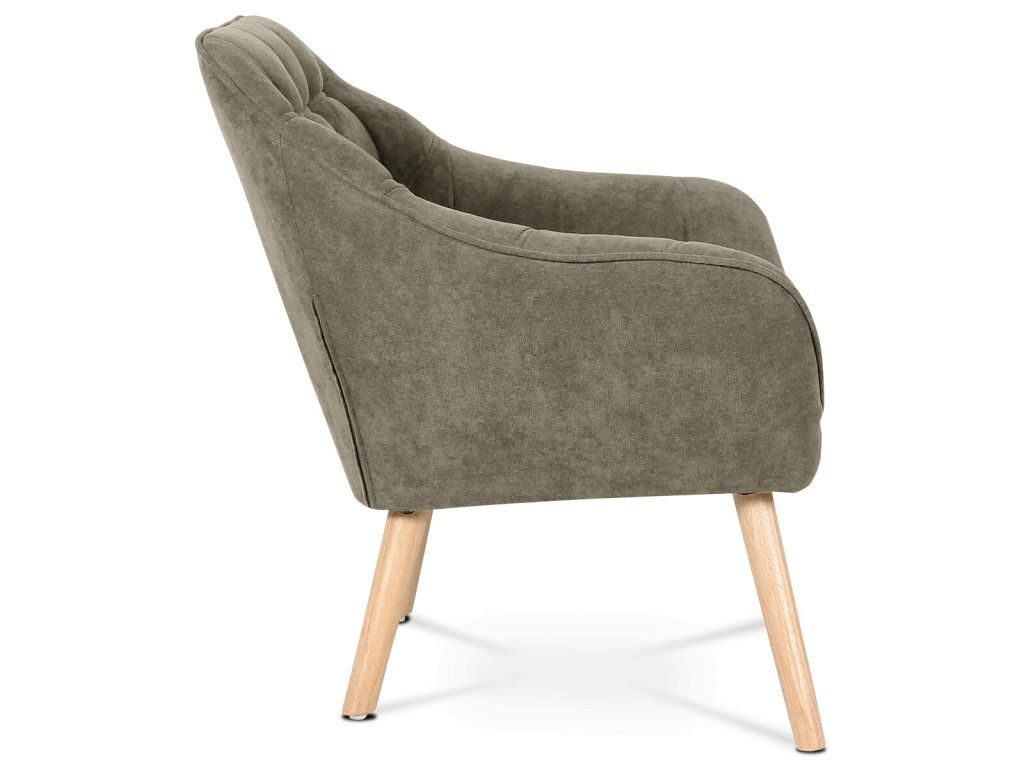 Kreslo v škandinávskom štýle s kubistickými prvkami. Charakteristickými prvkami tohto kresla je výrazné štvorcové prešitie sedadla i operadla, masívny sedací korpus s ostrými líniami v kontraste s vysokými štíhlymi nohami. Kreslo je celočalúnené, vrátane chrbta. Možno ho použiť ako na prisadenie k stene, tak aj v strede miestnosti. Môže slúžiť ako výrazný solitér aj ako doplňujúce kreslá k sedačke. Svoje uplatnenie nájde v chodbe, hale, obývačke i spálni. Poťah je z látky v tmavo šedom odtieni, kostra z masívneho dreva, vyplnené je kvalitnou PU penou. Sedáky sú ešte spevnené elastickými popruhmi na zvýšenie komfortu pohodlia. Štíhle kónické nohy sú z masívneho kaučukovníka v prírodnom odtieni a lakované transparentným lakom. Poškodenie podlahových krytín je eliminované plastovými klzákmi, pri zadných nohách sú rektifikovateľné (výškovo nastaviteľné). Svetlá výška kresla je 30 cm, výška podrúčiek je 59 cm a šírka 10 cm. Nosnosť je 130 kg. Pohodlie a vnútornú priestrannosť tohto kresla ocení určite každý. A ak si ešte opriete ruky o zvýšené podrúčky, budete dlho otáľať, kým kreslo opustíte. Kreslo sa typovo hodí k dvojsedačke AK-322.Dodatočné parametre