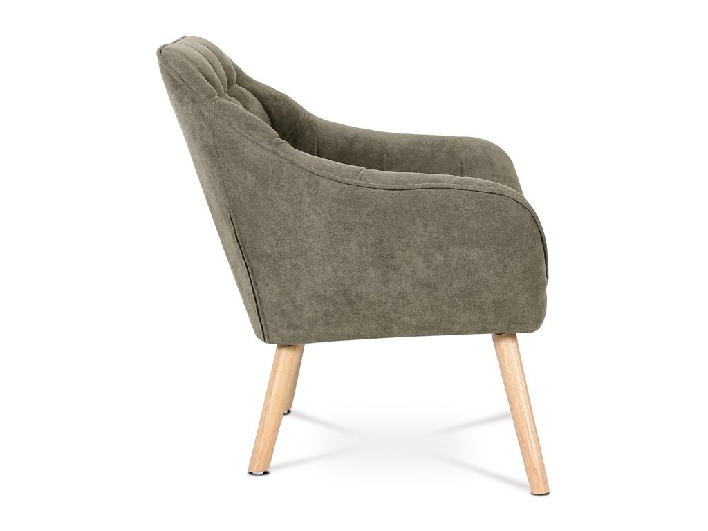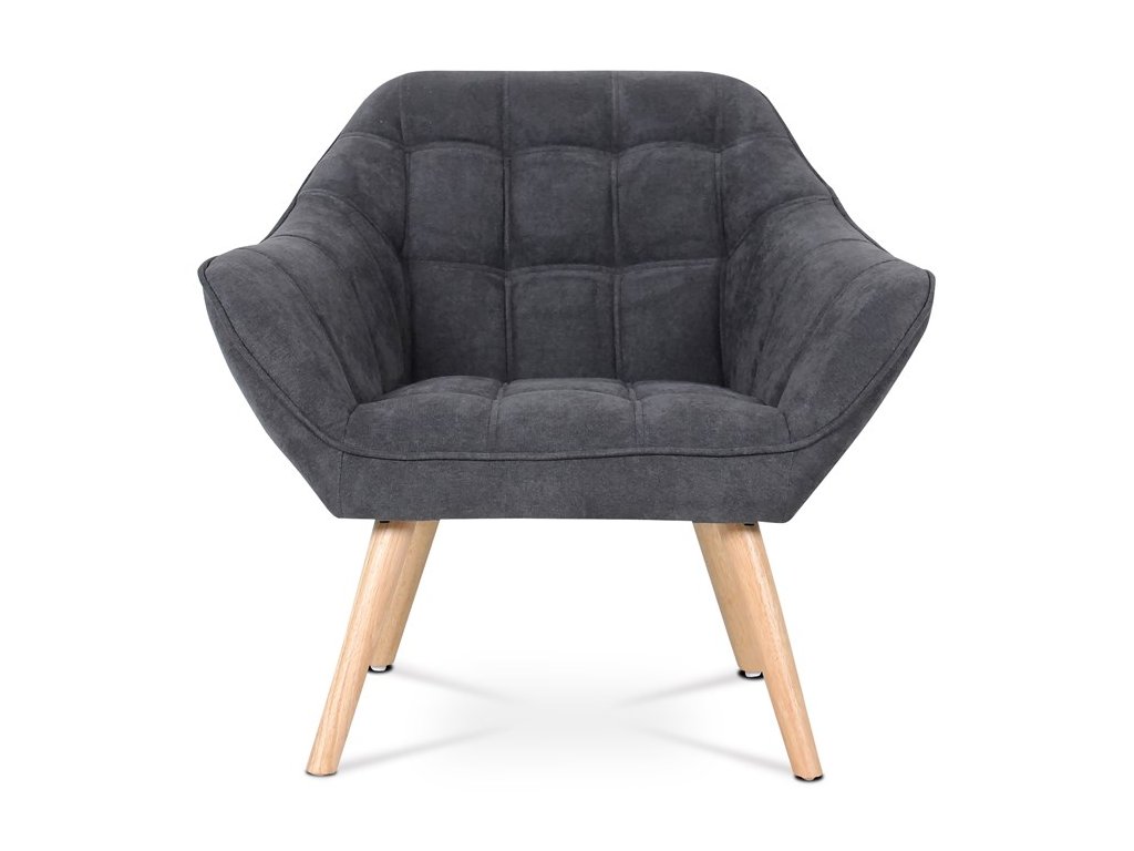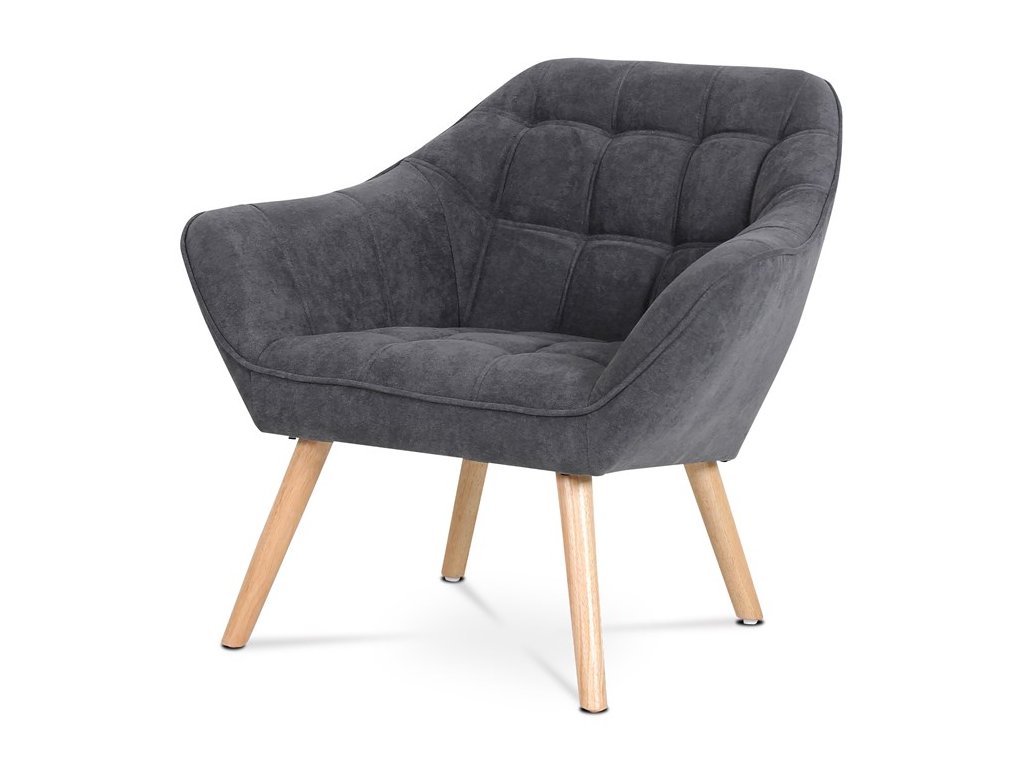 Kreslo v škandinávskom štýle s kubistickými prvkami. Charakteristickými prvkami tohto kresla je výrazné štvorcové prešitie sedadla i operadla, masívny sedací korpus s ostrými líniami v kontraste s vysokými štíhlymi nohami. Kreslo je celočalúnené, vrátane chrbta. Možno ho použiť ako na prisadenie k stene, tak aj v strede miestnosti. Môže slúžiť ako výrazný solitér aj ako doplňujúce kreslá k sedačke. Svoje uplatnenie nájde v chodbe, hale, obývačke i spálni. Poťah je z látky v tmavo šedom odtieni, kostra z masívneho dreva, vyplnené je kvalitnou PU penou. Sedáky sú ešte spevnené elastickými popruhmi na zvýšenie komfortu pohodlia. Štíhle kónické nohy sú z masívneho kaučukovníka v prírodnom odtieni a lakované transparentným lakom. Poškodenie podlahových krytín je eliminované plastovými klzákmi, pri zadných nohách sú rektifikovateľné (výškovo nastaviteľné). Svetlá výška kresla je 30 cm, výška podrúčiek je 59 cm a šírka 10 cm. Nosnosť je 130 kg. Pohodlie a vnútornú priestrannosť tohto kresla ocení určite každý. A ak si ešte opriete ruky o zvýšené podrúčky, budete dlho otáľať, kým kreslo opustíte. Kreslo sa typovo hodí k dvojsedačke AK-322.Dodatočné parametre