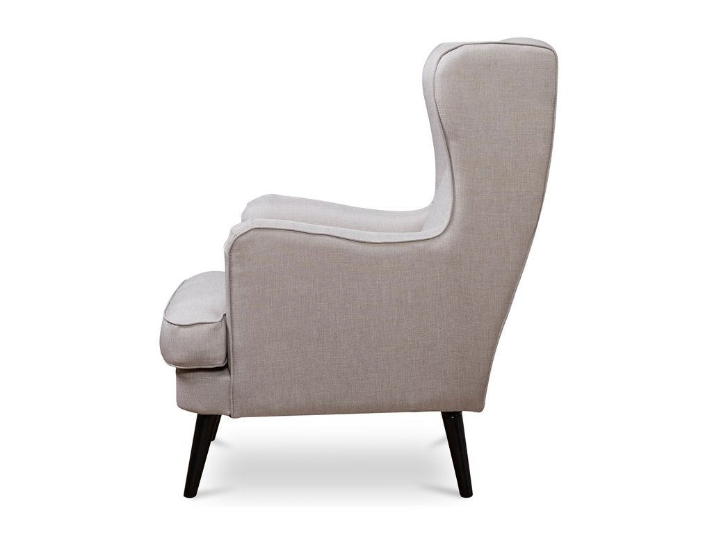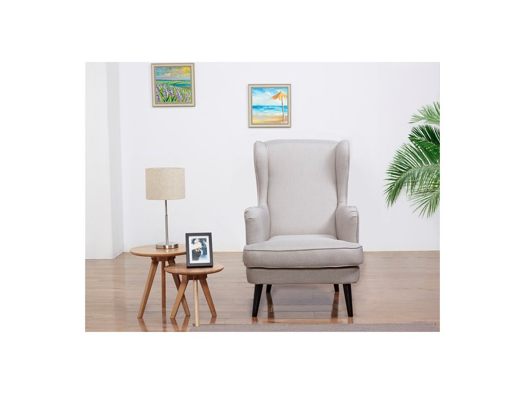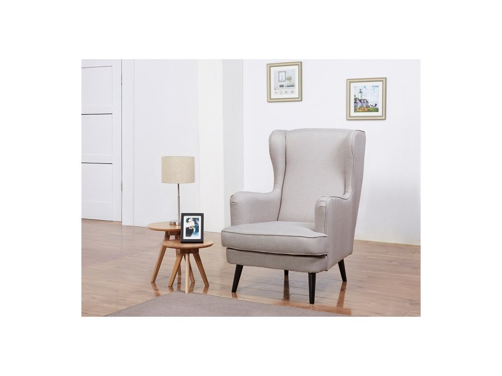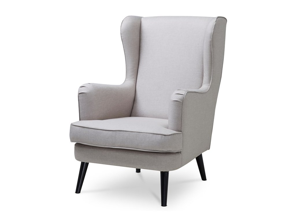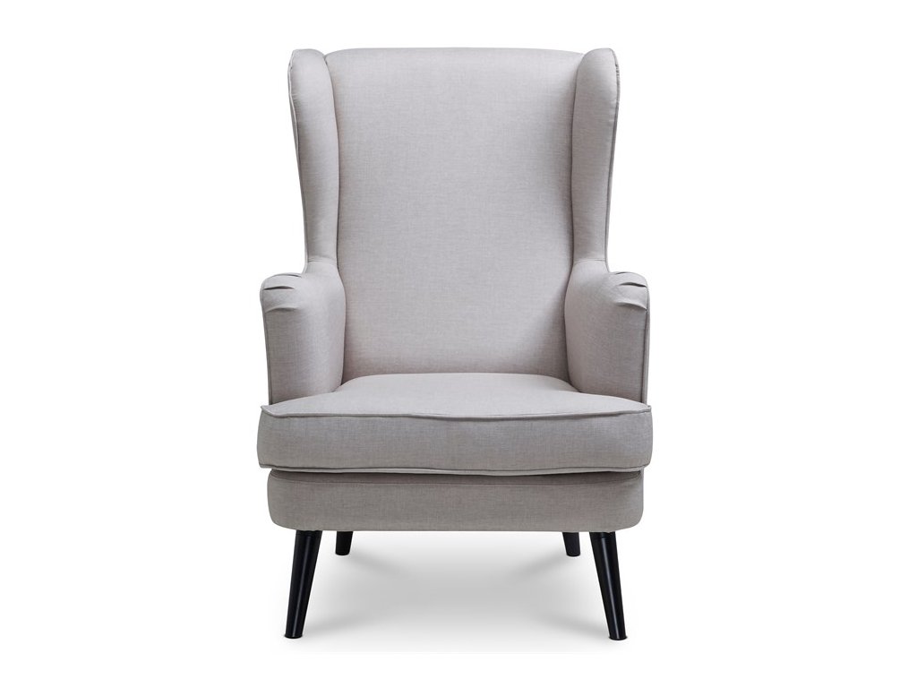 Elegantné kreslo typu ušiak predstavuje nadčasový doplnok do každého interiéru, ktorý spája klasický dizajn s moderným spracovaním. Charakteristickým znakom tohto modelu je vysoké operadlo s bočnými opierkami – tzv. „uši“, ktoré poskytujú maximálnu oporu chrbta a hlavy a zároveň vytvárajú pocit súkromia pri oddychu. V kombinácii so širokým a pohodlným sedákom a ergonomicky tvarovanými podrúčkami sa stáva ideálnym miestom na dlhé chvíle relaxu, či už pri čítaní knihy, sledovaní obľúbeného filmu alebo vychutnávaní šálky kávy.Čalúnenie z kvalitnej látky s jemnou štruktúrou dodáva kreslu elegantný a zároveň príjemne útulný vzhľad, ktorý zapadne do moderných, škandinávskych aj klasických interiérov. Masívne drevené nohy v čiernom prevedení zaručujú vysokú stabilitu a nosnosť, pričom svojím kontrastom podčiarkujú celkový dizajn kresla. Spojenie jemného odtieňa poťahu a tmavých nôh vytvára harmonický vizuálny prvok, ktorý dokáže oživiť obývačku, spálňu či pracovný kútik.