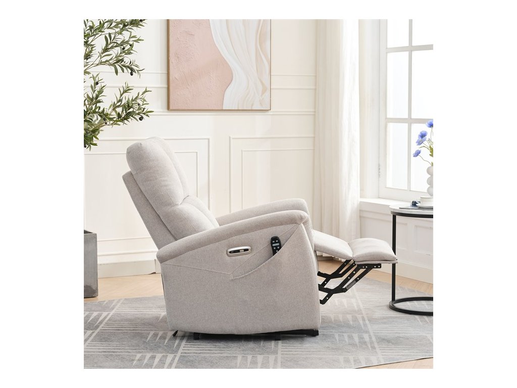 Masážne relaxačné kreslo v modernom štýle prináša kombináciu pohodlia a funkčnosti, ktorá sa stane prirodzenou súčasťou domácnosti. Čalúnenie z príjemnej látky s dekoratívnym prešitím pôsobí elegantne a zároveň poskytuje komfort pri každodennom používaní.Elektrické polohovanie umožňuje jednoducho nastaviť ideálnu polohu na čítanie, sledovanie televízie alebo oddych. V krajných polohách ponúka kreslo aj funkciu asistovaného vstávania, ktorú ocenia seniori a osoby s obmedzenou pohyblivosťou.