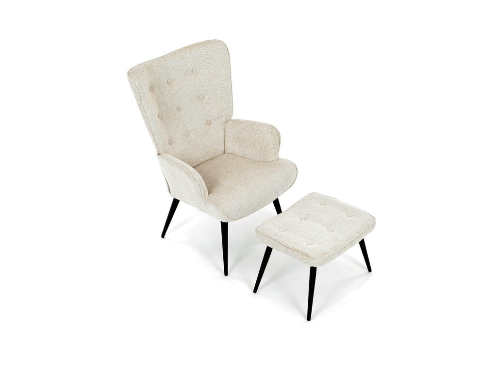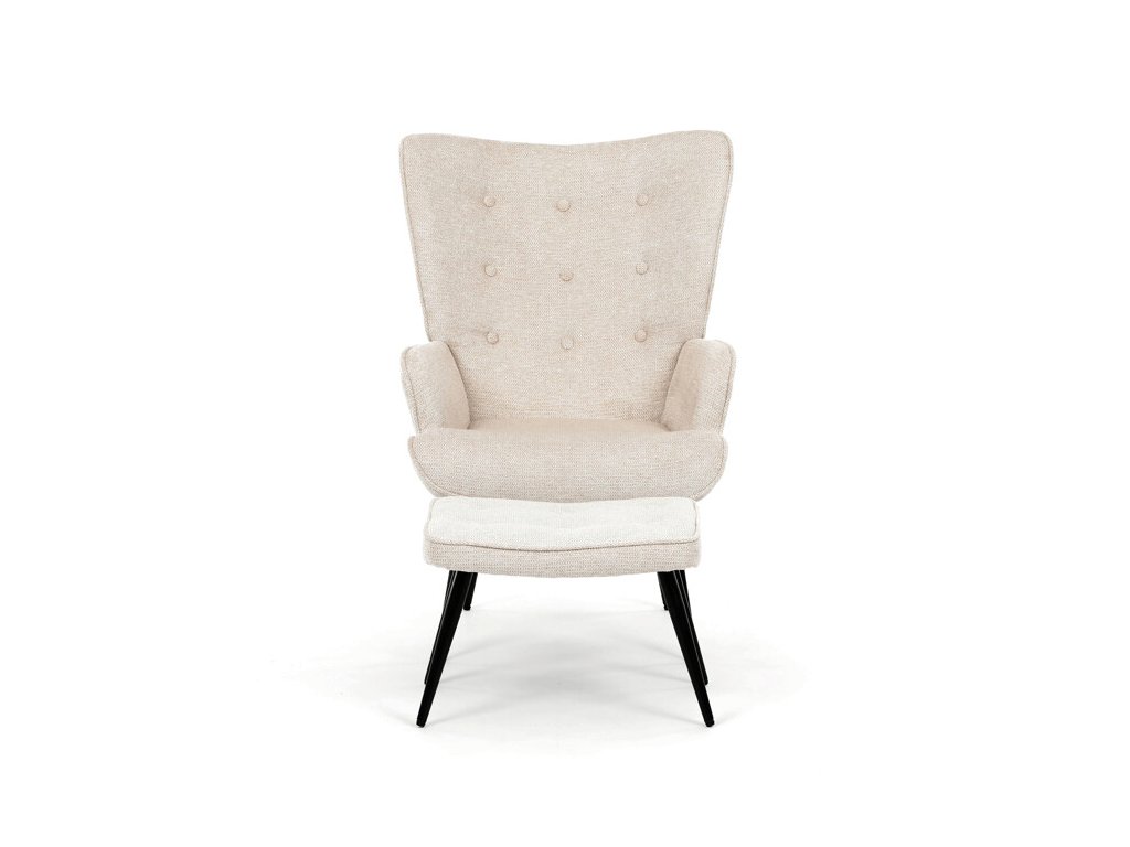 Súčasťou zostavy je praktická podnož, ktorá umožňuje pohodlné vyloženie nôh a výrazne zvyšuje úroveň oddychu. Stabilitu zabezpečujú pevné kovové nôžky v elegantnej čiernej farbe, ktoré sú opatrené nastaviteľnými plastovými koncovkami. Tie chránia podlahu pred poškriabaním a umožňujú presné vyrovnanie na nerovnom povrchu – vďaka čomu sa kreslo nikdy nebude hojdať.