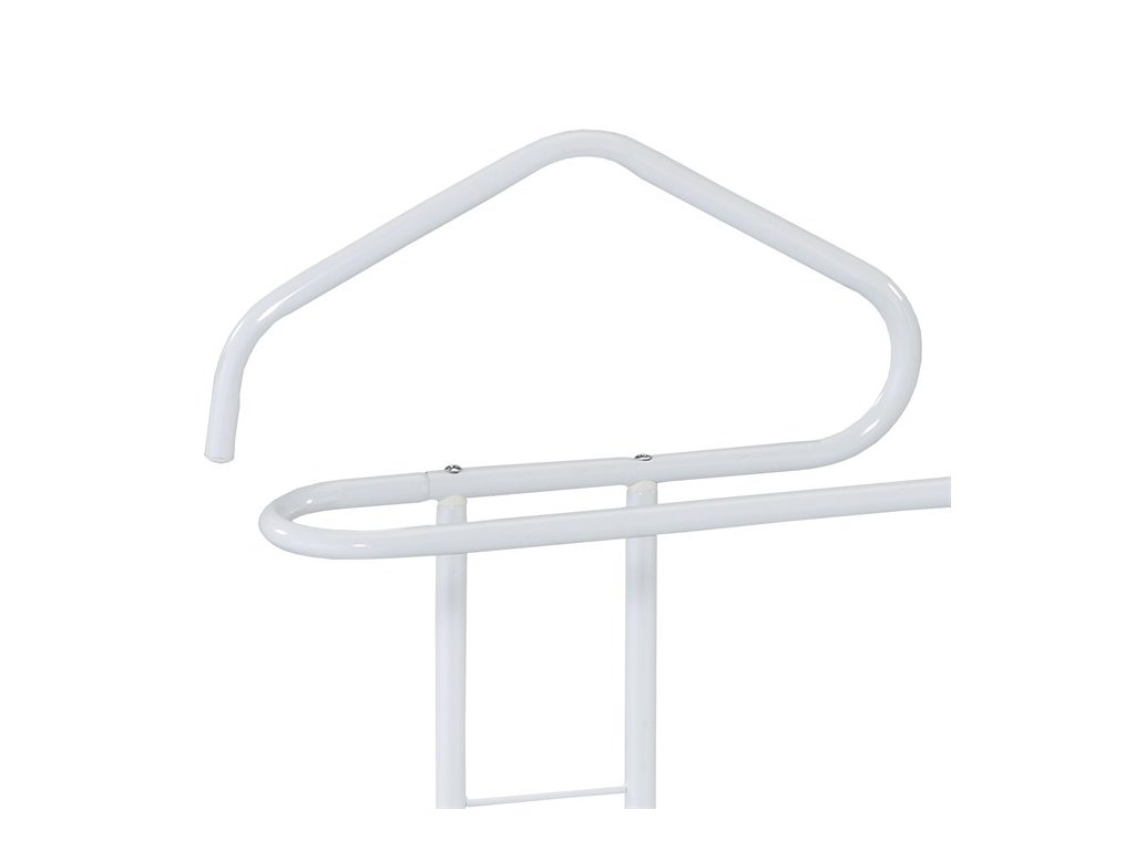 Nemý sluha v minimalistickom dizajne ponúka praktické riešenie pre odkladanie oblečenia a doplnkov. Konštrukcia je vyrobená z pevných kovových trubiek s priemerom 19 mm, čo zabezpečuje stabilitu a dlhú životnosť. Povrchová úprava v matnom laku dodáva moderný vzhľad a chráni materiál pred opotrebovaním.Výška 108 cm umožňuje pohodlné zavesenie košieľ, nohavíc či doplnkov bez zbytočného pokrčenia. Trojuholníková základňa poskytuje stabilitu a zároveň šetrí miesto, vďaka čomu je nemý sluha vhodný aj do menších interiérov.