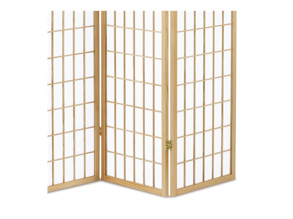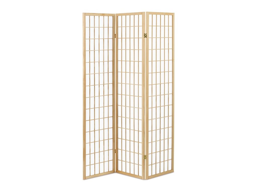 Dizajnový paraván v japonskom štýle – štýlové oddelenie priestoruPraktický a elegantný paraván v japonskom štýle je ideálnym riešením na oddelenie časti interiéru alebo vytvorenie súkromia. Ľahká drevená konštrukcia v prírodnom odtieni doplnená o jemnú mriežkovanú výplň pôsobí vzdušne a esteticky, pričom zachováva dostatok svetla v miestnosti.