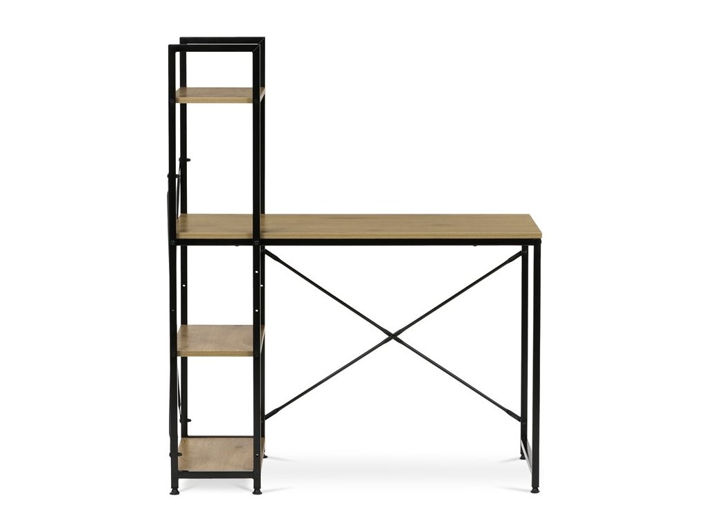 Pracovný stôl značky Autronic v industriálnom štýle je skvelou voľbou pre moderné kancelárie aj domáce pracovne. Kombinácia hnedého dekoru duba a čiernej kovovej konštrukcie vytvára atraktívny a odolný dizajn. Stôl ponúka praktický úložný priestor vďaka štyrom prídavným policam, ktoré poskytujú dostatok miesta pre knihy, dokumenty alebo dekorácie. Matná povrchová úprava dosky z MDF zaistí ľahkú údržbu a elegantný vzhľad. Tento funkčný a štýlový kus nábytku sa skvele hodí do interiéru, kde oceníte praktickosť a moderný vzhľad. Rozmer police: 48 x 24,5 cm.