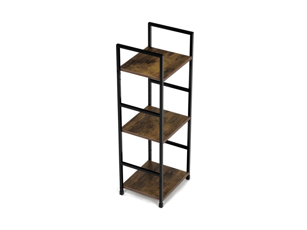Praktický a štýlový regál s troma policami. Kostra je vyrobená z kovového profilu v elegantnom čiernom nástreku, police sú z MDF dosky s povrchovou úpravou v dizajne 3D DUB. Regál je primárne určený na postavenie do interiéru, v prípade potreby je ale možné ho bez problémov zavesiť na stenu pomocou priloženej sady.Dodatočné parametre