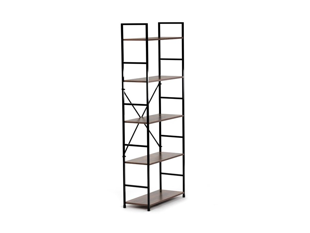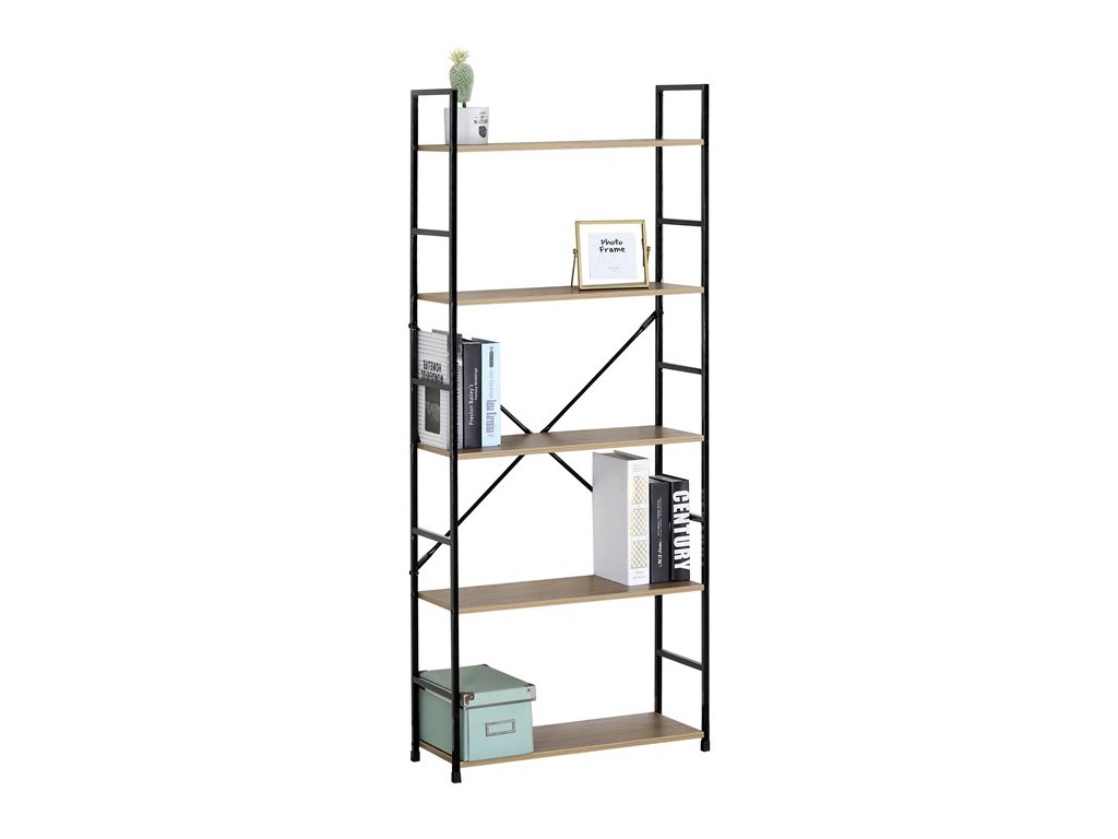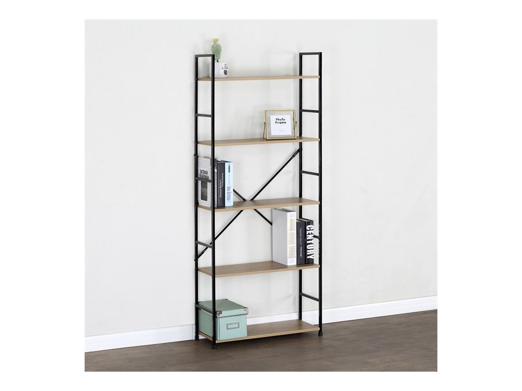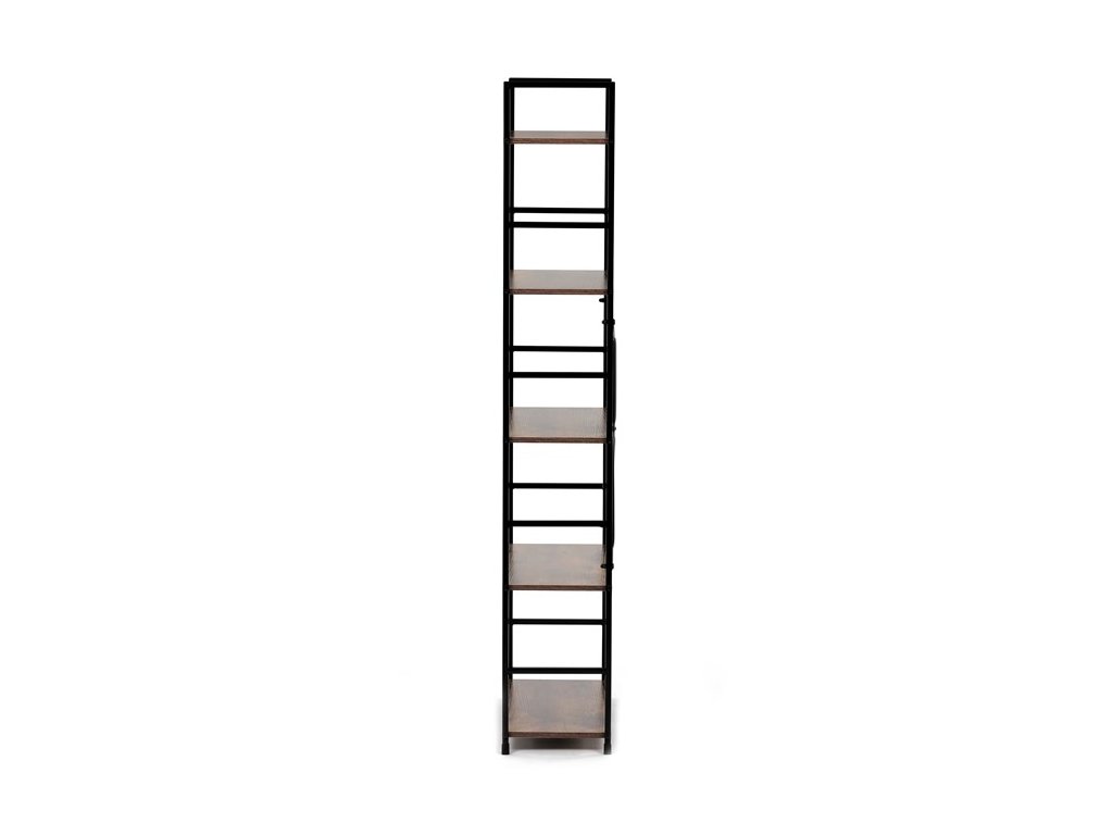 Praktický a štýlový regál s piatimi policami. Kostra je vyrobená z kovového profilu v elegantnom čiernom nástreku, police sú z MDF dosky s povrchovou úpravou v dizajne 3D DUB. Regál je primárne určený na postavenie do interiéru, v prípade potreby je ale možné ho bez problémov zavesiť na stenu pomocou priloženej sady.Dodatočné parametre