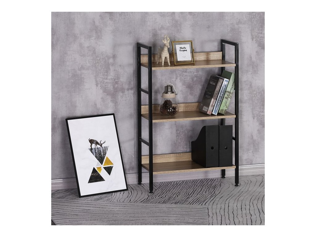 Praktický a štýlový regál s troma policami. Kostra je vyrobená z kovového profilu v elegantnom čiernom nástreku, police sú z MDF dosky s povrchovou úpravou v dizajne 3D DUB s praktickým zadným čielkom.Dodatočné parametre