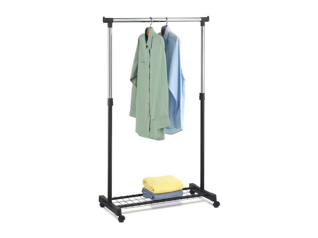 • Nastaviteľné Zavesenie: Stojan disponuje jedným nosným ramenom v lesklom prevedení, ktoré je výškovo nastaviteľné. To umožňuje zavesiť odevy rôznej dĺžky, čím efektívne využijete priestor bez pokrčenia dlhých šiat či kabátov.