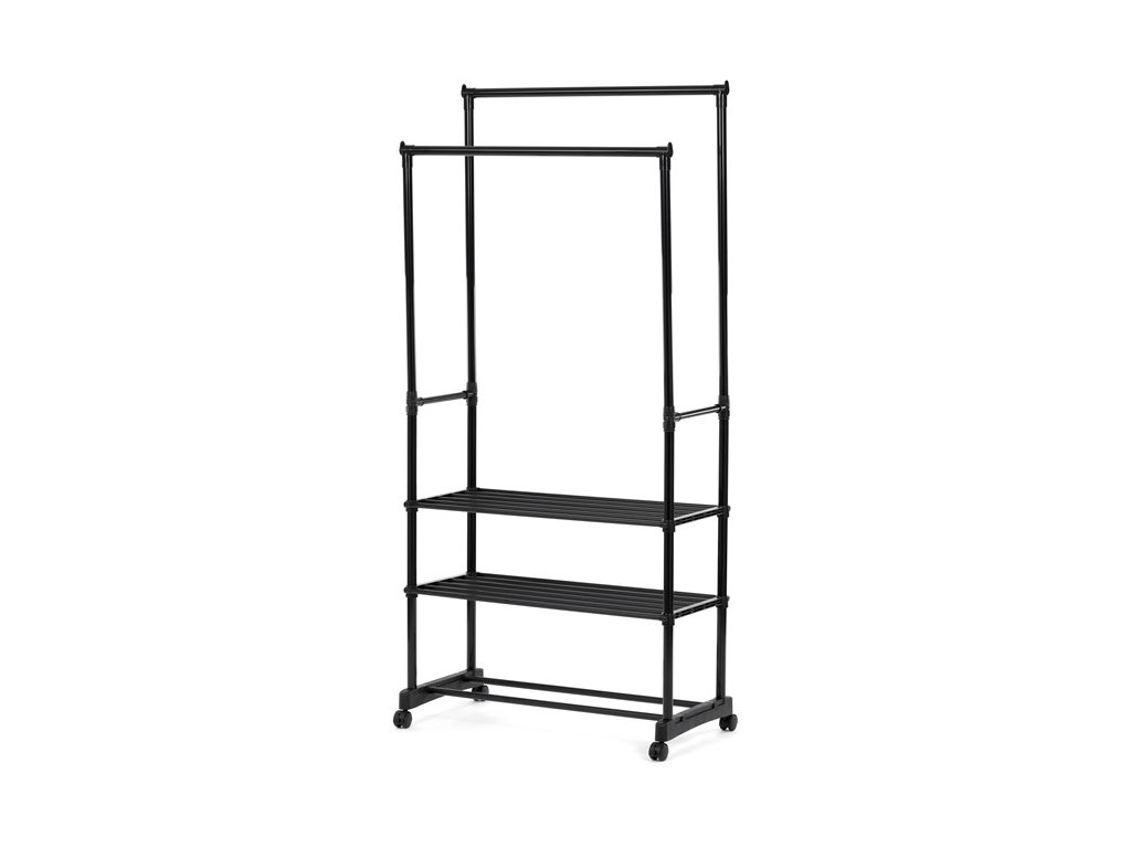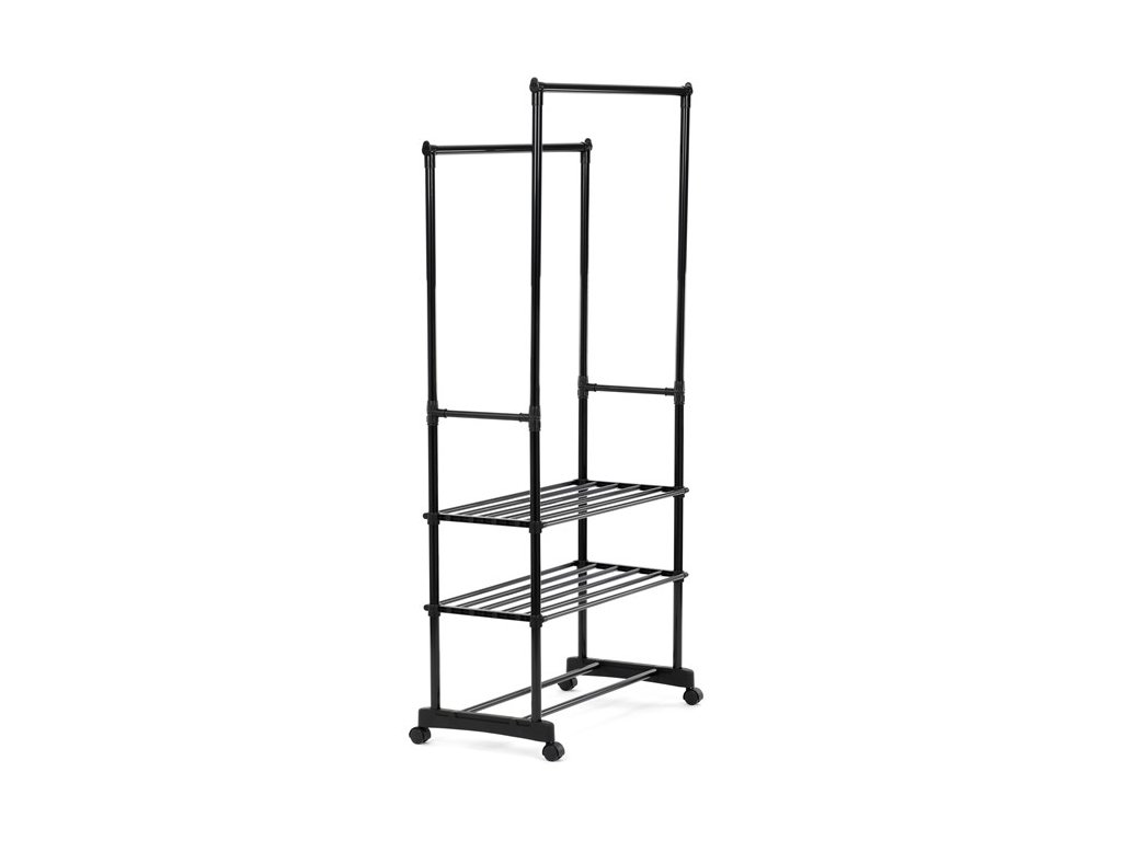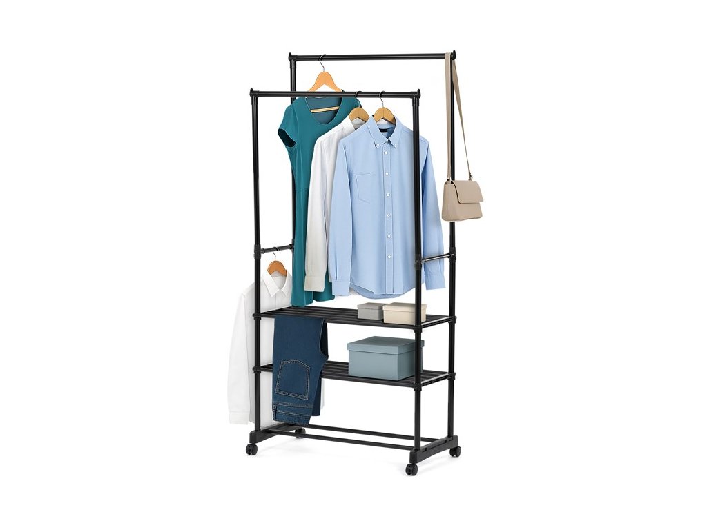 Získajte elegantný poriadok a okamžité zväčšenie úložného priestoru. Tento priestranný stojan je ideálnym pomocníkom pre organizáciu vášho oblečenia, kombinuje veľkú kapacitu zavesenia s rozsiahlymi možnosťami odkladania. Robustná kovová konštrukcia poskytuje stabilitu a moderný vzhľad, čím z neho robí perfektnú voľbu pre prehľadnú a funkčnú organizáciu v šatni, spálni alebo predsieni.