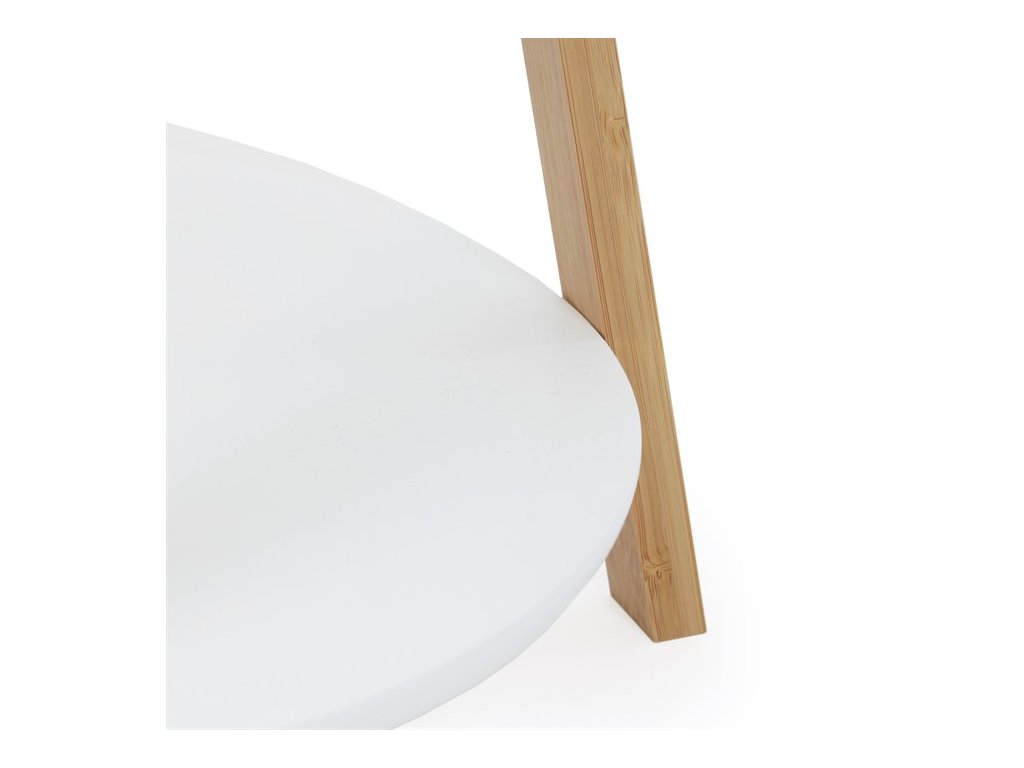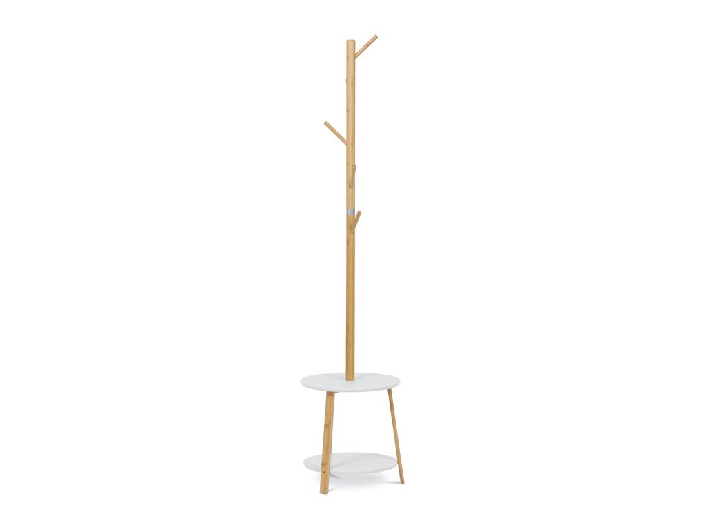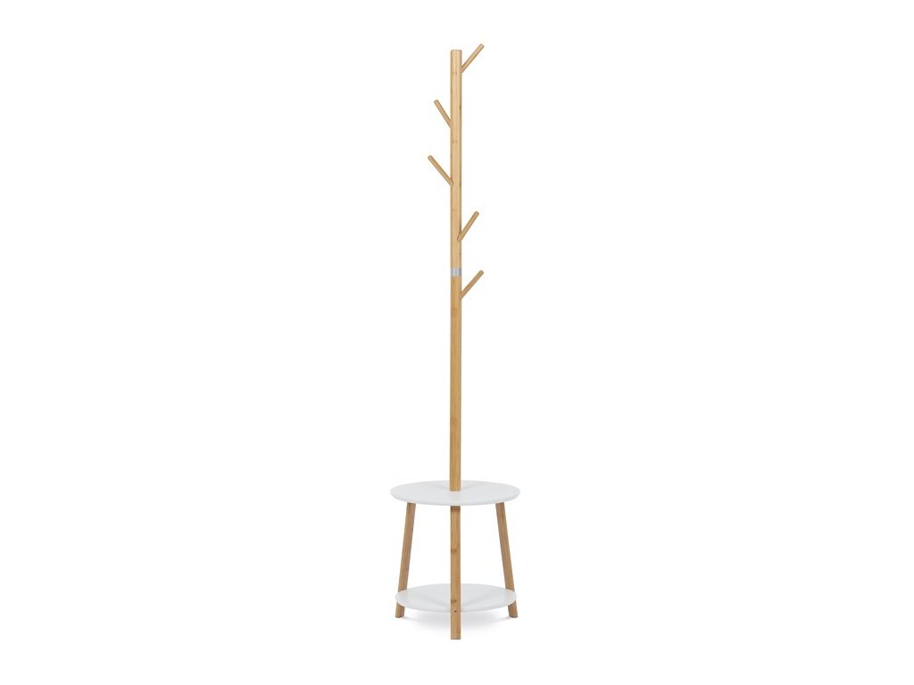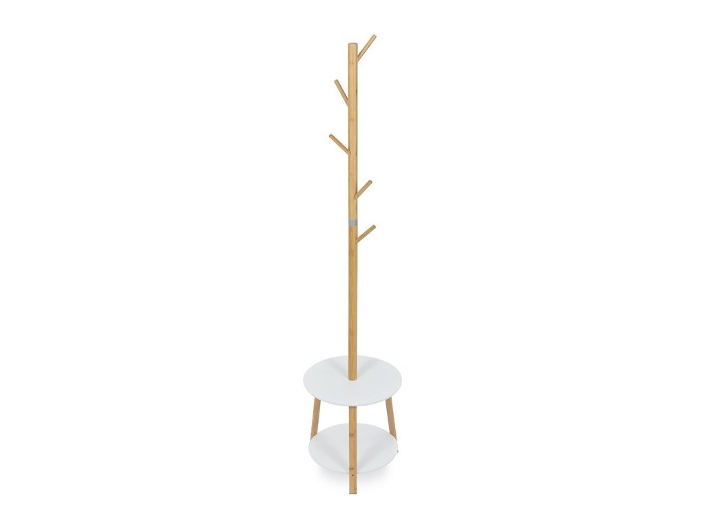 Elegantný stojanový vešiak značky Autronic kombinuje škandinávsky štýl s praktickým dizajnom. Vyrobený z kvalitného bambusu v prírodnej farbe, ponúka stabilnú konštrukciu a moderný vzhľad. Tento vešiak disponuje dvoma odkladacími policami v bielej farbe, ktoré poskytujú dodatočný úložný priestor pre vaše topánky, tašky alebo dekorácie.