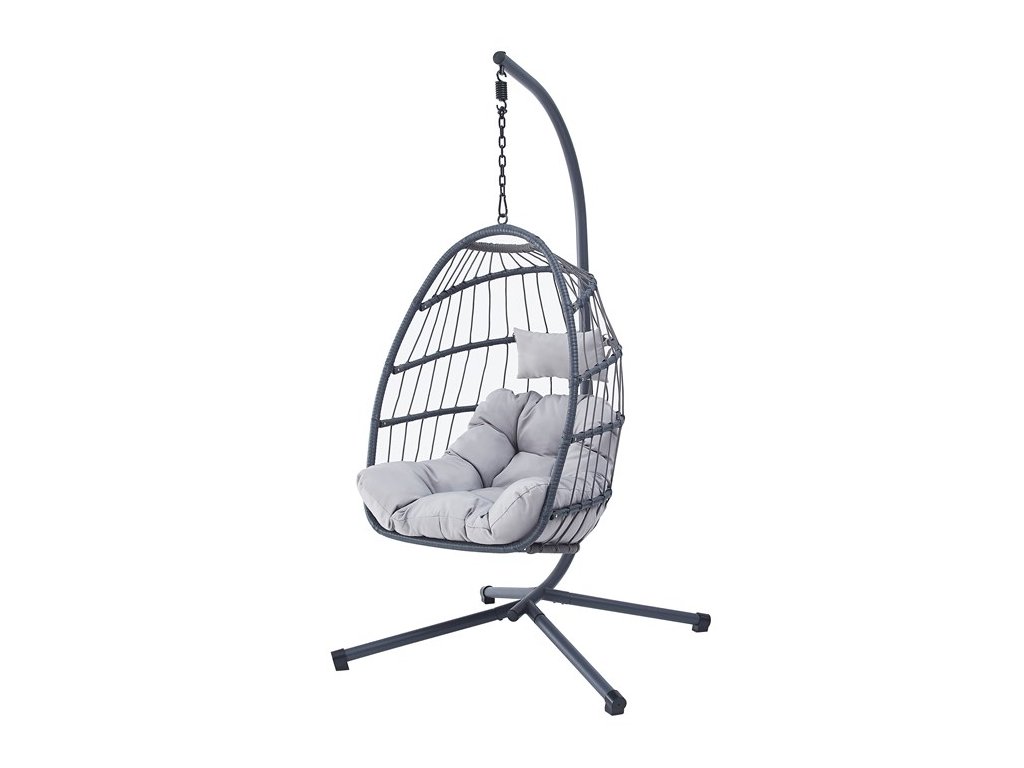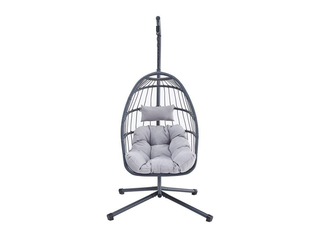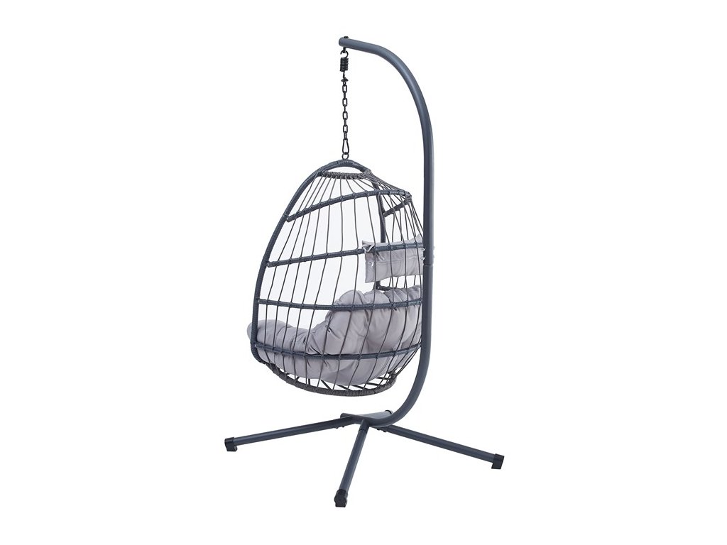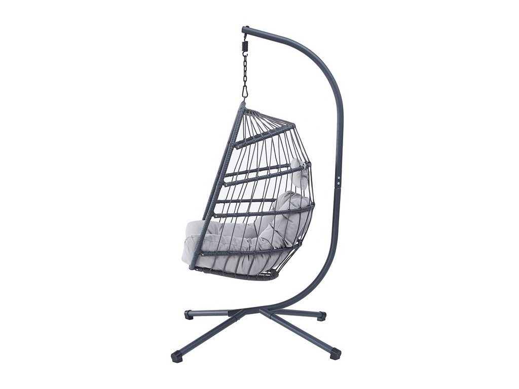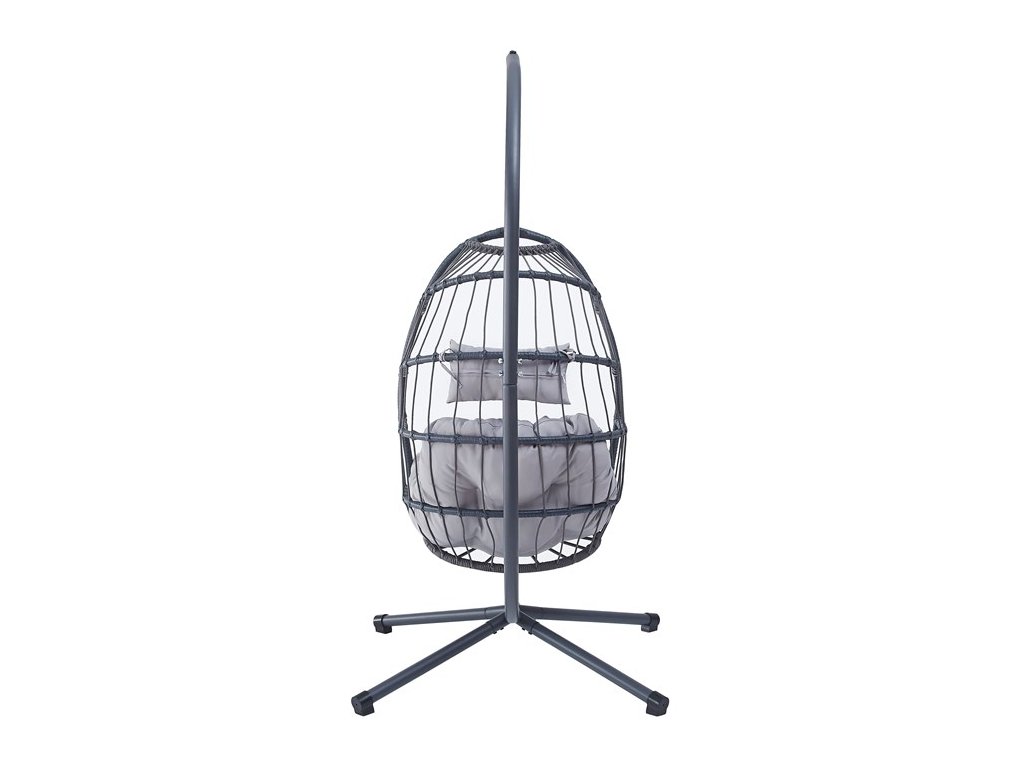 Štýlové závesné kreslo, ktoré prináša pohodlie do vašej záhrady alebo terasy. Kombinácia kovového rámu a elegantného polyratanového výpletu odolného voči vplyvom počasia. Antracitový dizajn s elegantným sivým látkovým čalúnením poskytuje maximálnu relaxáciu a komfort. Centrálne podnož zabezpečuje výbornú stabilitu kresla, zatiaľ čo závesné prevedenie ponúka príjemný hojdavý pohyb. Kreslo je skvelým doplnkom pre chvíle odpočinku v pokojnom vonkajšom prostredí, svoje miesto si nájde v modernom exteriéry ale aj klasickej záhrade.